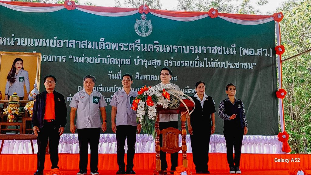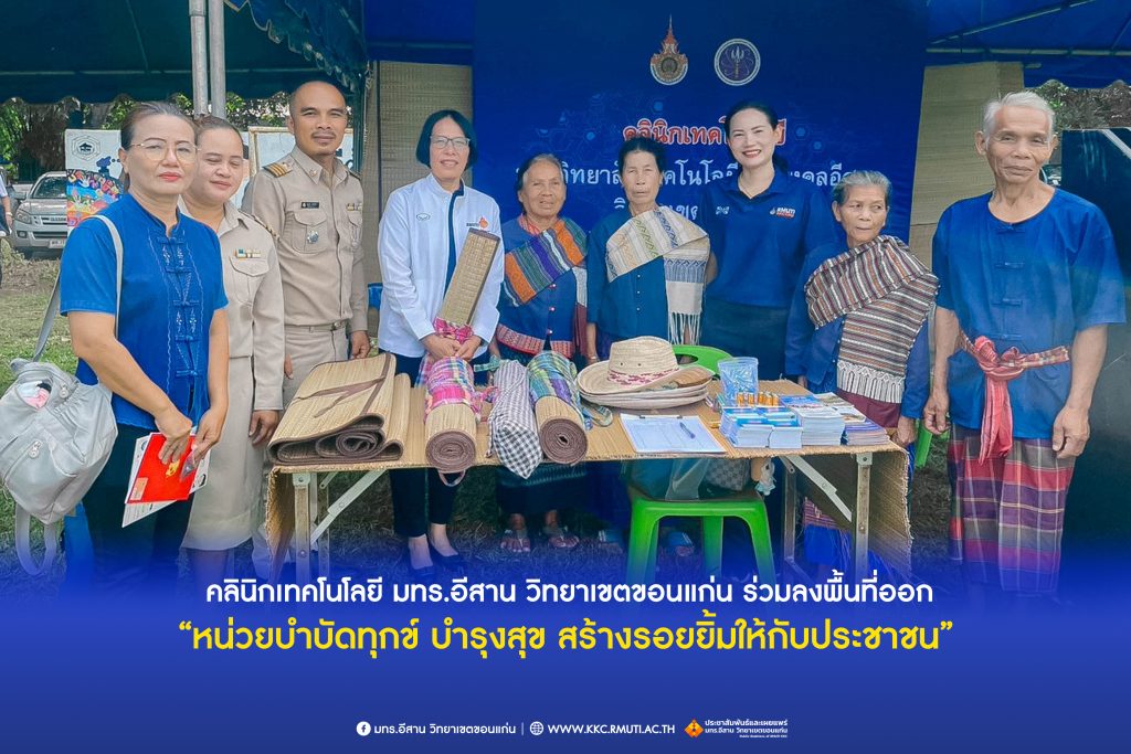 วันพุธที่ 27 สิงหาคม พ.ศ. 2568 มหาวิทยาลัยเทคโนโลยีราชมงคลอีสาน วิทยาเขตขอนแก่น โดย ผศ.ประพันธ์ ยาวระ รองอธิการบดีประจำวิทยาเขตขอนแก่น มอบ ผศ.ดร.นทยา กัมพลานนท์ ผู้ช่วยอธิการบดี นำคลินิกเทคโนโลยี มทร.อีสาน วิทยาเขตขอนแก่น ร่วมลงพื้นที่ออกหน่วยแพทย์อาสาสมเด็จพระศรีนครินทราบรมราชชนนี (พอ.สว.) และโครงการ “หน่วยบำบัดทุกข์ บำรุงสุข สร้างรอยยิ้มให้กับประชาชน” ประจำเดือน สิงหาคม 2568 ณ โรงเรียนบ้านเมืองเก่า ตำบลเมืองเก่าพัฒนา อำเภอเวียงเก่า จังหวัดขอนแก่น โดยมี นายยุทธพร พิรุณสาร รองผู้ว่าราชการจังหวัดขอนแก่น เป็นประธาน พร้อมด้วยหัวหน้าส่วนราชการ รัฐวิสาหกิจ องค์กรปกครองส่วนท้องถิ่น องค์กรเอกชน กลุ่มพลังมวลชน จังหวัดขอนแก่น เข้าร่วมโครงการฯ ณ โรงเรียนบ้านเมืองเก่า ตำบลเมืองเก่าพัฒนา อำเภอเวียงเก่า จังหวัดขอนแก่น