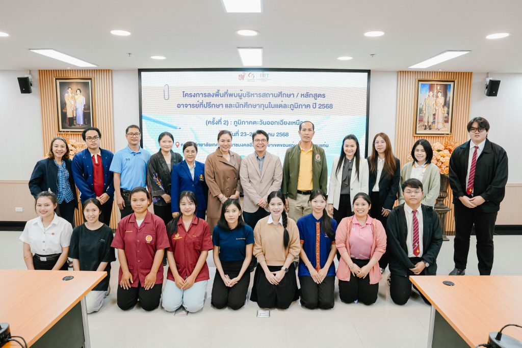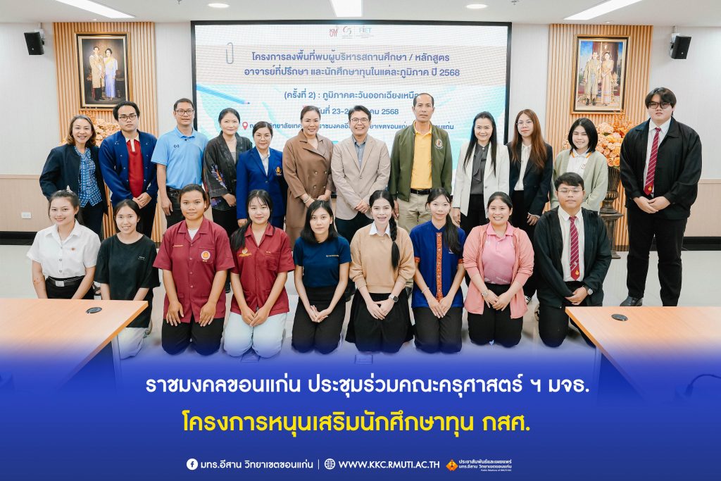 โดยการประชุมครั้งนี้ มหาวิทยาลัยเทคโนโลยีพระจอมเกล้าธนบุรี คณะครุศาสตร์อุตสาหกรรมและเทคโนโลยีได้รับมอบหมายจากกองทุนเพื่อความเสมอภาคทางการศึกษา (กสศ.)ให้ดำเนิน “โครงการหนุนเสริมนักศึกษาทุนโครงการทุนพระกนิษฐาสัมมาชีพ ผ่านความร่วมมือมหาวิทยาลัย ปี 2568” ซึ่งเป็นโครงการสร้างกิจกรรมการดูแลช่วยเหลือและหนุนเสริมนักศึกษาทุนใน มหาวิทยาลัยเครือข่าย คณะทำงาน มจธ. จึงลงพื้นที่จัดกิจกรรมการประชุมในครั้งนี้ เพื่อสานต่อความร่วมมือและการสื่อสารเป้าหมายการพัฒนานักศึกษาทุน ตลอดจนการแลกเปลี่ยนแนวทางการหนุนเสริมนักศึกษาทุนให้เกิดประสิทธิภาพและยั่งยืน โอกาสนี้ รศ.ดร.ธเนศ ธนิตย์ธีรพันธ์ คณบดีคณะครุศาสตร์อุตสาหกรรมและเทคโนโลยี (มจธ.) ได้นำเสนอแผนการดำเนินงานหนุนเสริมนักศึกษาทุนพระกนิษฐาสัมมาชีพ ปี 2568 อาจารย์อินทร์ธิรา คำภีระ อาจารย์ประจำสาขาวิชาครุศาสตร์โยธา ได้แนะนำคู่มือนักศึกษาทุน และคู่มือการหนุนเสริมสำหรับอาจารย์ที่ปรึกษานักศึกษาทุน และจัดกิจกรรมการแลกเปลี่ยนหารือ แนวทางการดูแล สนับสนุน พัฒนานักศึกษาทุน ร่วมกับอาจารย์ที่ปรึกษา กิจกรรมพบปะนักศึกษาทุน เพื่อสร้างความสัมพันธ์ การติดตามดูแล การสรุปผลการจัดประชุม รวบรวมข้อเสนอแนะเพื่อนำไปใช้เป็นแนวทางการพัมนาการดำเนินงานหนุนเสริมนักศึกษาทุนพระกนิษฐาสัมมาชีพต่อไป โดยมีคณาจารย์และนักศึกษาทุน ในพื้นที่ภาคตะวันออกเฉียงเหนือ เข้าร่วมการประชุม ดังนี้ มทร.อีสาน วิทยาเขตนครราชสีมา มทร.อีสาน .วิทยาเขตขอนแก่น มทร.อีสาน วิทยาเขตสุรินทร์ มหาวิทยาลัยเกษตรศาสตร์ วิทยาเขตเฉลิมพระเกียรติสกลนคร มหาวิทยาลัยราชภัฏร้อยเอ็ด สถาบันการอาชีวศึกษาเกษตรภาคตะวันออกเฉียงเหนือ (วิทยาลัยเกษตรและเทคโนโลยีมหาสารคาม) มหาวิทยาลัยมหิดล โครงการจัดตั้งวิทยาเขตอำนาจเจริญ มหาวิทยาลัยขอนแก่น การประชุมครั้งนี้ มทร.อีสาน วิทยาเขตขอนแก่นได้รับความไว้วางใจในการใช้สถานที่ที่มีความเหมาะสม ทำให้การประชุมดำเนินการตามแผนและสำเร็จตามวัตถุประสงค์