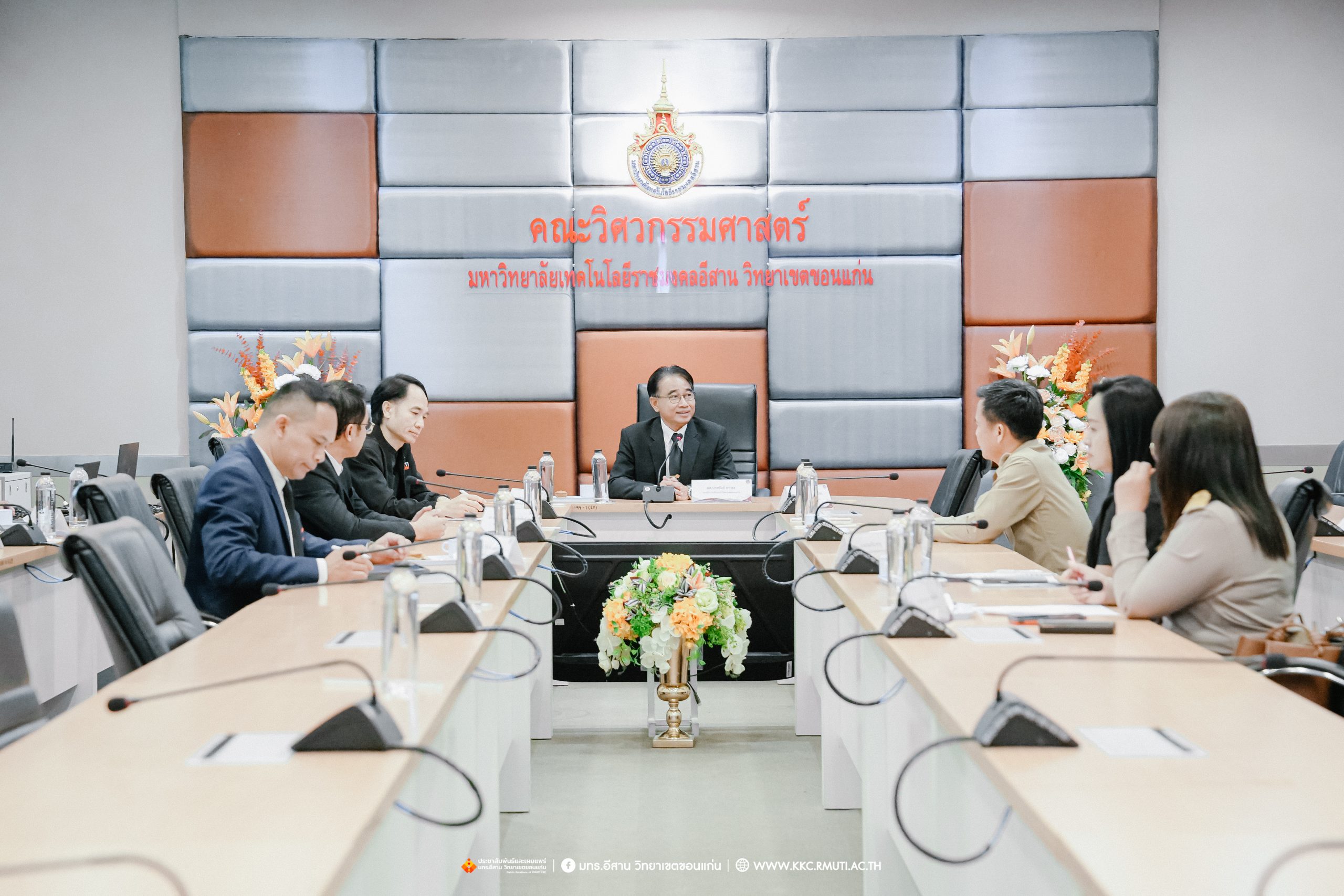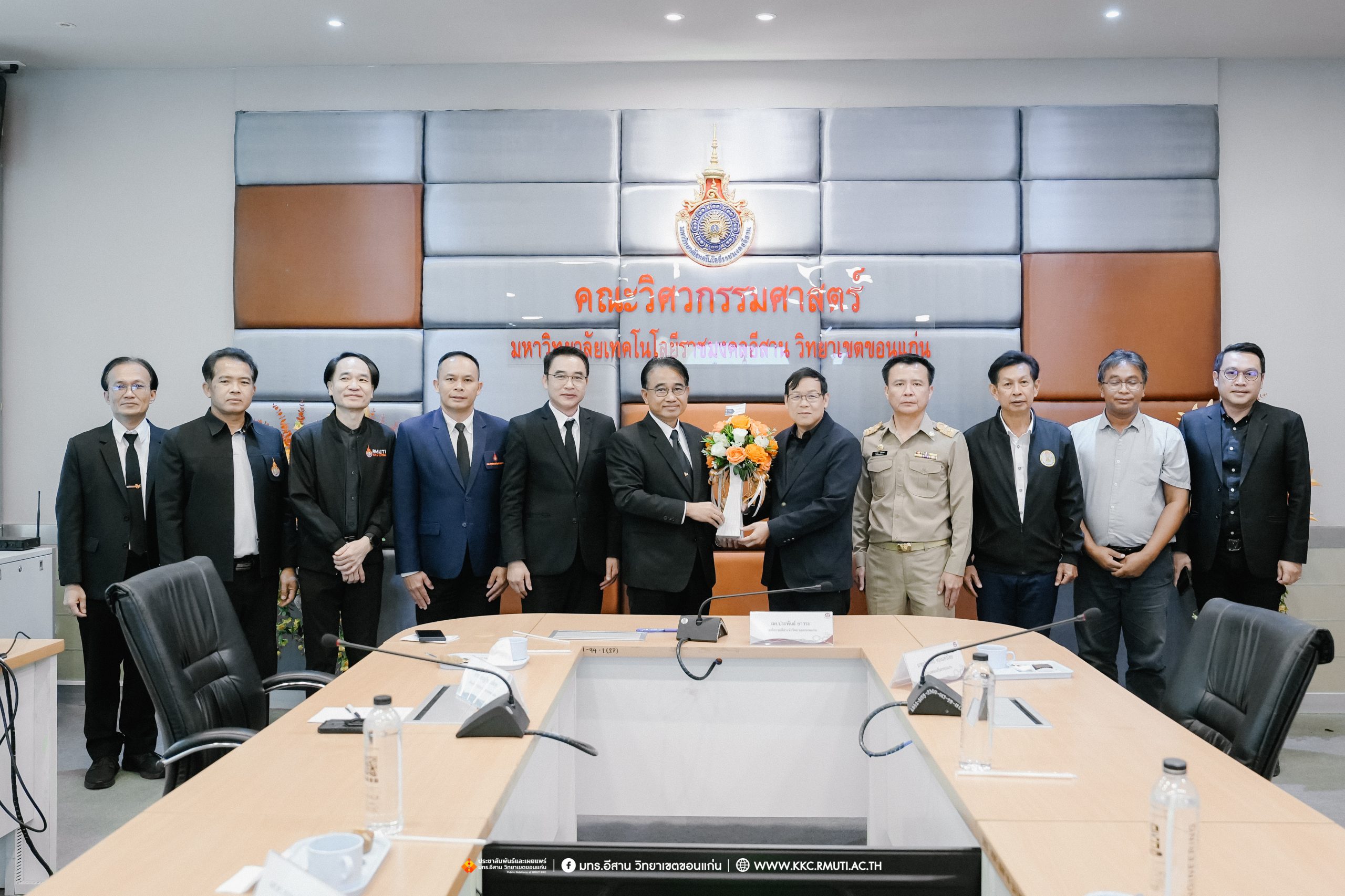 วันจันทร์ที่ 27 ตุลาคม พ.ศ. 2568 เวลา 10.00 น. มหาวิทยาลัยเทคโนโลยีราชมงคลอีสาน วิทยาเขตขอนแก่น โดย ผศ.ประพันธ์ ยาวระ รองอธิการบดีประจำวิทยาเขตขอนแก่น ให้การต้อนรับ นายประสิทธิ์ ทองแท่งไทย นายกเทศมนตรีนครขอนแก่น ในโอกาสเข้าร่วมการประชุมติดตามความก้าวหน้าสำหรับบทสรุปผู้บริหารและพบปะแลกเปลี่ยนความคิดเห็นเพื่อการพัฒนาระบบขนส่งมวลชนรถไฟฟ้ารางเบา ขอนแก่นโมเดล และการขับเคลื่อนเมืองจากความร่วมมือทุกภาคส่วน โดยมี อาจารย์บุญกิจ อุ่นพิกุล ผู้ช่วยอธิการบดี พร้อมด้วย ผศ.ดร.ศุภฤกษ์ ชามงคลประดิษฐ์ คณบดีคณะวิศวกรรมศาสตร์ ผศ.ดร.วิรัช ชินพลอย คณบดีคณะครุศาสตร์อุตสาหกรรม ผศ.ดร.อดิเรก จันตะคุณ รองคณบดีฝ่ายบริหาร อาจารย์ปริญ นาชัยสิทธิ์ ที่ปรึกษาคณะวิศวกรรมศาสตร์ อาจารย์ ดร.ณรงค์ สีหาจ่อง ผู้อำนวยการศูนย์ฝึกอบรมระบบราง และ อาจารย์ ดร.ไพวรรณ เกิดตรวจ หัวหน้าโครงการวิจัย โครงการระบบรถไฟฟ้ารางเบาฯ เข้าร่วมประชุมเพื่อให้ข้อมูลรวมถึงแลกเปลี่ยนความคิดเห็นร่วมกัน ณ ห้องประชุมไพศาล ห์ลีละเมียร อาคาร 50 ปี เทคนิค ไทย – เยอรมัน ขอนแก่น