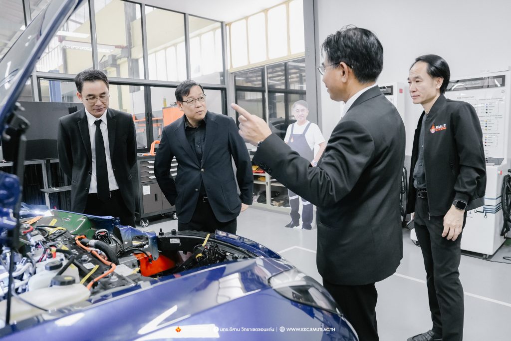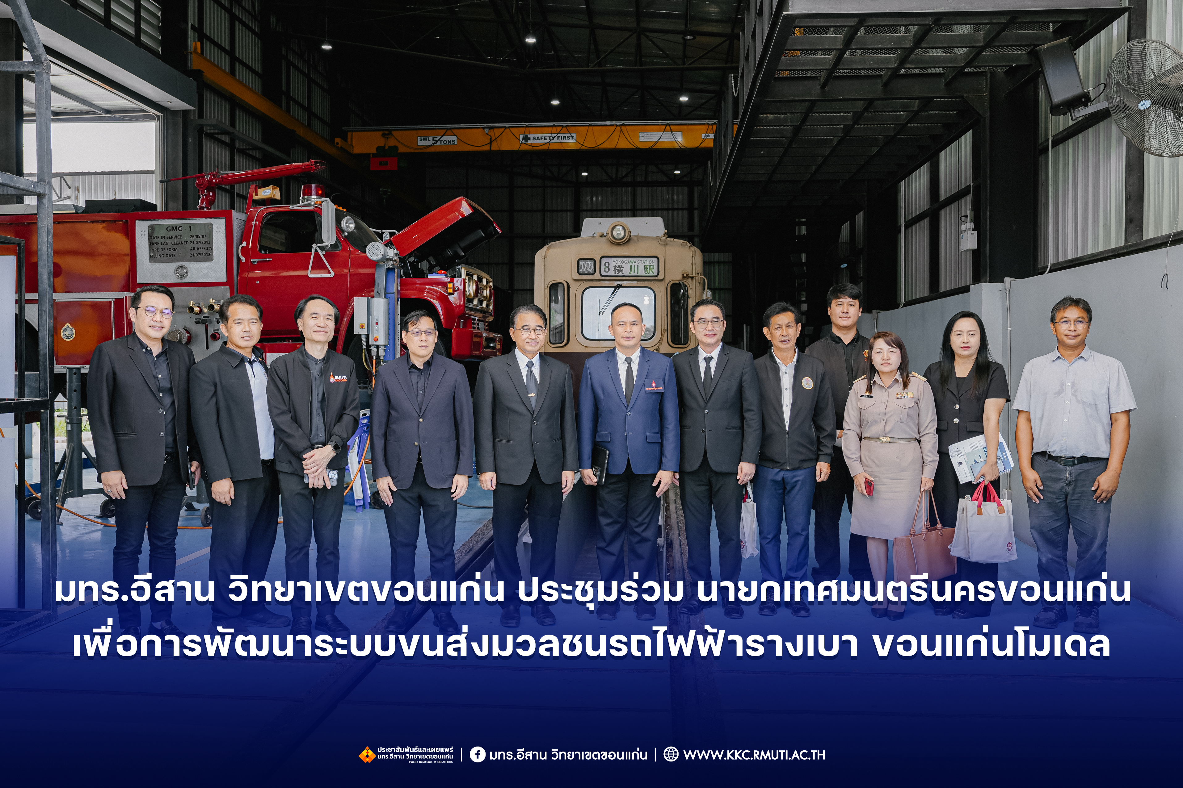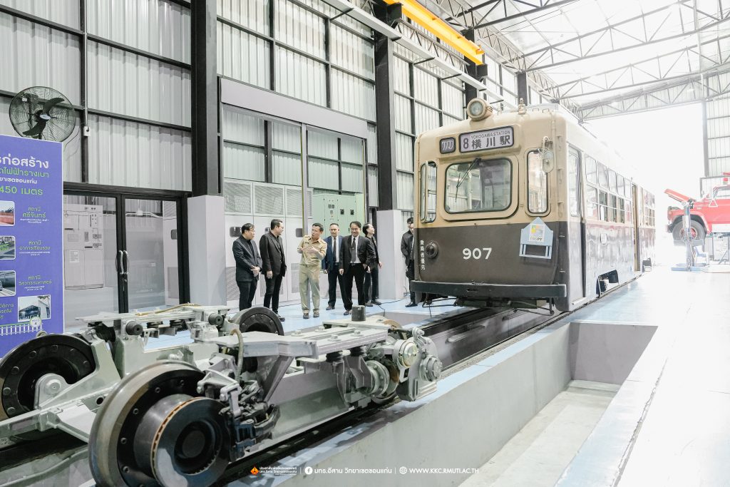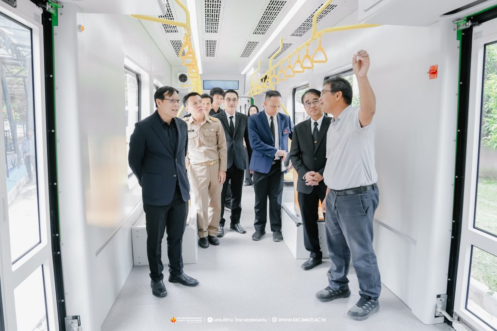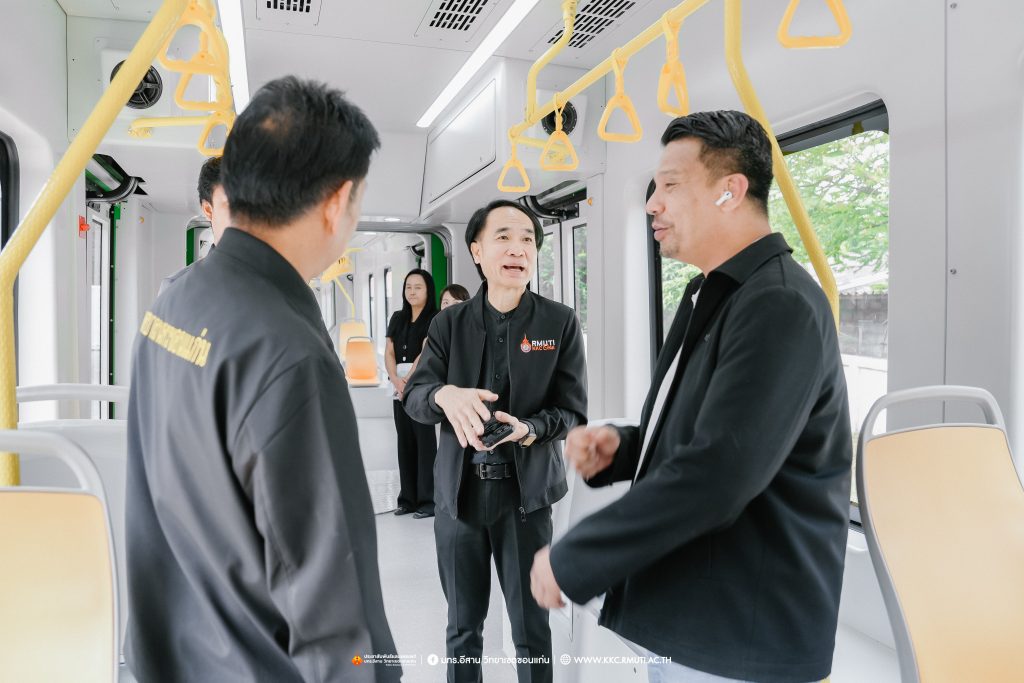 ในภาพรวมที่ประชุมได้รายงานผลการดำเนินว่า การพัฒนาระบบขนส่งมวลชนรถไฟฟ้ารางเบานับเป็นความท้าทายในการขับเคลื่อนขอนแก่นเมืองอัจฉริยะ ซึ่งขณะนี้ได้ดำเนินการคืบหน้าไปอีกขั้นโดยได้ทำการก่อสร้างระบบรางในพื้นที่ มทร.อีสาน วิทยาเขตขอนแก่น รวมระยะทางกว่า 450 เมตร พร้อมปรับผังการจราจรและพื้นที่ใช้งานชั่วคราว เพื่อรองรับการติดตั้งรางในระยะทดลอง ขับเคลื่อนขอนแก่นสู่ SMART CITY เนื่องจากจังหวัดขอนแก่นเป็นเมืองยุทธศาสตร์ที่อยู่ในเส้นทางรถไฟไทย – จีน และมีนโยบาย Smart City การพัฒนาระบบรางช่วยยกระดับเศรษฐกิจฐานราก สร้างงานในท้องถิ่น และลดความแออัดในเมืองใหญ่โดย มทร.อีสาน วิทยาเขตขอนแก่น มีบทบาทสำคัญในการวิจัยและออกแบบต้นแบบรถไฟฟ้ารางเบา เน้นการใช้อะไหล่ที่ผลิตในประเทศเป็นหลักลดต้นทุนจาก 90 ล้านบาท เหลือ 70 ล้านบาทต่อขบวน และสร้าง Supply Chain ภายในประเทศ ก่อให้เกิดการจ้างงานและหมุนเวียนรายได้ในท้องถิ่นส่งผลกระทบเชิงบวกต่อประเทศเพราะการผลิตรถไฟฟ้าในประเทศช่วยลดการนำเข้า สร้างงานในท้องถิ่น ประชากรไม่ต้องย้ายไปทำงานในเมืองใหญ่ เกิดการกระจายตัวของอุตสาหกรรม ลดความแออัดในกรุงเทพ และเสริมสร้างความสามารถในการแข่งขันของประเทศในระยะยาว คาดวิ่งจริงในปลายปีนี้ จากนั้น รองอธิการบดีประจำวิทยาเขตขอนแก่น ได้นำเยี่ยมชมผลงานวิจัยและนวัตกรรมด้านระบบราง Tram รุ่น Hiroden-907 ที่ได้รับมอบจากเทศบาลนครฮิโรชิมา ประเทศญี่ปุ่น รางตัวอย่างเพื่อใช้ทดสอบการวิ่งและการใช้งานขบวนรถไฟฟ้ารางเบา งานวิจัยต้นแบบรถไฟ LRT ของวิทยาเขตขอนแก่น โดยมี อาจารย์ ดร.ไพวรรณ เกิดตรวจ เป็นผู้บรรยายให้ข้อมูล เพื่อเน้นย้ำถึงศักยภาพและมาตรฐานความเข้มแข็งด้านวิชาการและงานวิจัย ของ มทร.อีสาน วิทยาเขตขอนแก่น ณ อาคารปฏิบัติการซ่อมบำรุงรถไฟ DEPOT โรงจอดและซ่อมบำรุงรถ Tram และ LRT คณะวิศวกรรมศาสตร์ และนำเยี่ยมชมผลงานวิจัยและหลักสูตรการเรียนการสอน ด้านยานยนต์ไฟฟ้า ณ ศูนย์การเรียนรู้ยานยนต์ไฟฟ้า คณะครุศาสตร์อุตสาหกรรม บรรยากาศการเยี่ยมชมเป็นไปด้วยความอบอุ่นมีการแลกเปลี่ยนเรียนรู้ การสอบถามข้อมูลงานวิจัย เทคโนโลยีที่เกี่ยวข้องในการจัดสร้างรถไฟฟ้ารางเบาและเทคโนโลยีด้านยานยนต์ไฟฟ้าพร้อมถ่ายภาพเป็นที่ระลึก