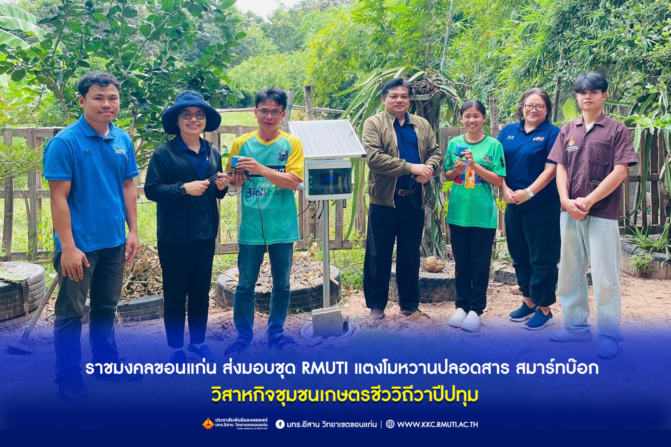 วันจันทร์ที่ 27 ตุลาคม พ.ศ.2568 มหาวิทยาลัยเทคโนโลยีราชมงคลอีสาน วิทยาเขตขอนแก่น โดย ผศ.ประพันธ์ ยาวระ รองอธิการบดีประจำวิทยาเขตขอนแก่น ผศ.ดร.ศุภฤกษ์ ชามงคลประดิษฐ์ คณบดีคณะวิศวกรรมศาสตร์ อาจารย์ ดร.อารีรัตน์ เชื้อบุญเกิด โนท คณบดีคณะบริหารธุรกิจและเทคโนโลยีสารสนเทศ มอบ ผศ.ดร.อังคณา เจริญมี ผู้ช่วยคณบดีฝ่ายบริการวิชาการเกษตรอัจฉริยะและกิจกรรมเพื่อความยั่งยืนของชุมชน อาจารย์ ดร.วิทยา ชำนาญไพร อาจารย์พรเทพินทร์ สุขแสงประสิทธิ์ ลงพื้นที่ส่งมอบชุด “RMUTI แตงโมหวานปลอดสาร สมาร์ทบ๊อก” พร้อมอบรมให้ความรู้การติดตั้งและใช้งานนวัตกรรม Smart IoT รวมถึงระบบการจัดการฟาร์มด้วย AI แก่กลุ่มวิสาหกิจชุมชนเกษตรชีววิถีวาปีปทุม จังหวัดมหาสารคาม