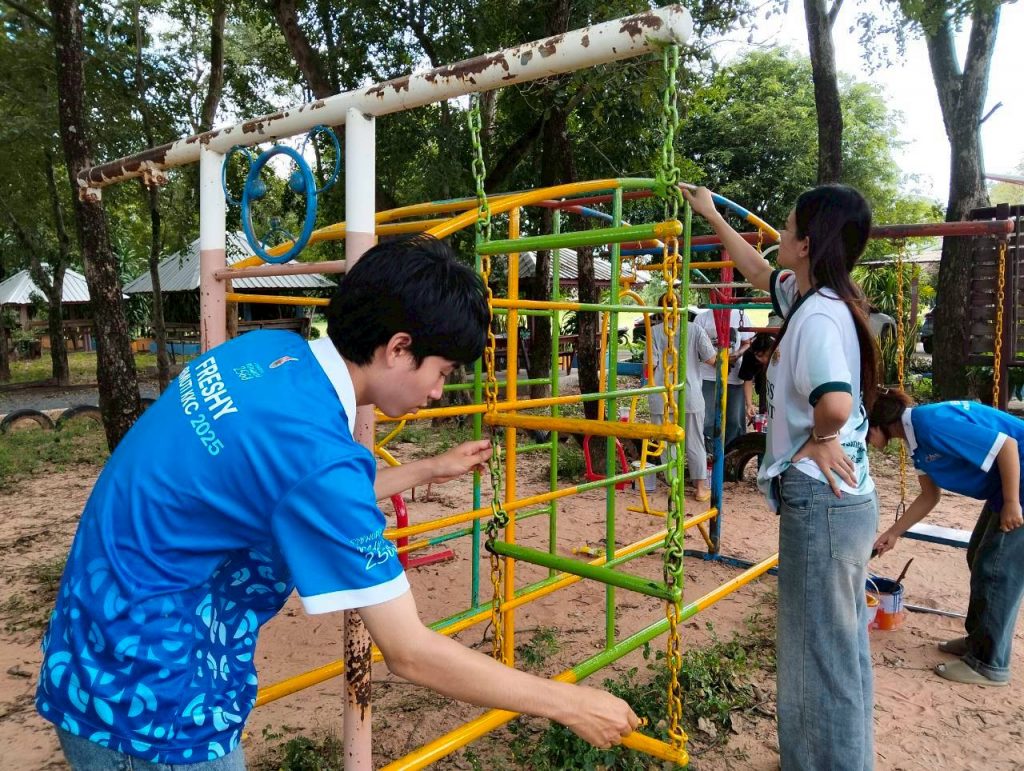 วันที่ 23 – 25 ตุลาคม 2568 ชมรม Kids อาสา มหาวิทยาลัยเทคโนโลยีราชมงคลอีสาน วิทยาเขตขอนแก่น จัดโครงการอาสาพาคิด ปันน้ำใจ รุ่นที่ 3 ประจำปีการศึกษา 2568 ณ ณ โรงเรียนบ้านปอแดง อ.หนองสองห้อง จ.ขอนแก่น การออกค่ายฯ ครั้งนี้ สมาชิกชมรมได้ร่วมกันปรับปรุงทัศนียภาพ สนามเด็กเล่น ทาสีกำแพง ตกแต่งอาคาร ซ่อมแซมรั้ว สนามตะกร้อ สนามวอลเลย์บอล เตาเผาขยะ จากเดิมที่มีสภาพทรุดโทรมให้สวยงามน่ามองและสามารถใช้งานได้ดังเดิม เพื่อปลูกฝังให้นักศึกษามีจิตสำนึกด้านการรับใช้สังคม และใช้ความรู้ความสามารถในการทำกิจกรรมบำเพ็ญประโยชน์ต่อสังคม สร้างเครือข่ายความสัมพันธ์ระหว่างชุมชนกับมหาวิทยาลัย ส่งเสริมให้นักศึกษามีทักษะในการทำงานร่วมกับสมาชิกและชุมชน บูรณาการความรู้จากการเรียนมาใช้ในกิจกรรมออกค่าย ทั้งด้านเทคโนโลยี ด้านสังคม อีกทั้งยังเป็นการเผยแพร่ชื่อเสียงของมหาวิทยาลัยฯ โดยใช้ระยะเวลาดำเนินงาน 3 วัน มีสมาชิกร่วมออกค่ายทั้งสิ้น จำนวน 60 คน ควบคุมดูแลการดำเนินกิจกรรมโดยอาจารย์ ดร.รัตนาพร วงษ์ทอง อาจารย์ประจำสาขาวิชาวิศวกรรมอุตสาหการ คณะวิศวกรรมศาสตร์ อาจารย์ที่ปรึกษาชมรม โดยได้รับเกียรติจากนางสาวจุรีรัตน์ ประทุมแบน ผู้อำนวยการโรงเรียนบ้านปอแดงและคุณครูให้การต้อนรับ