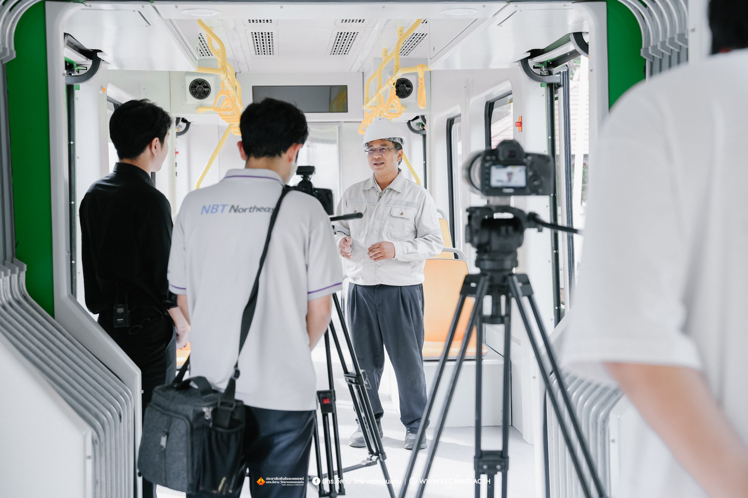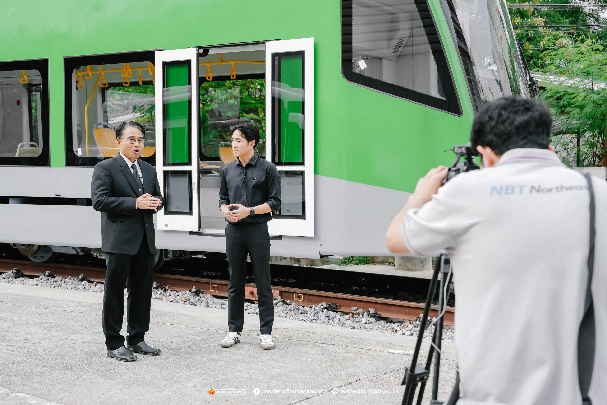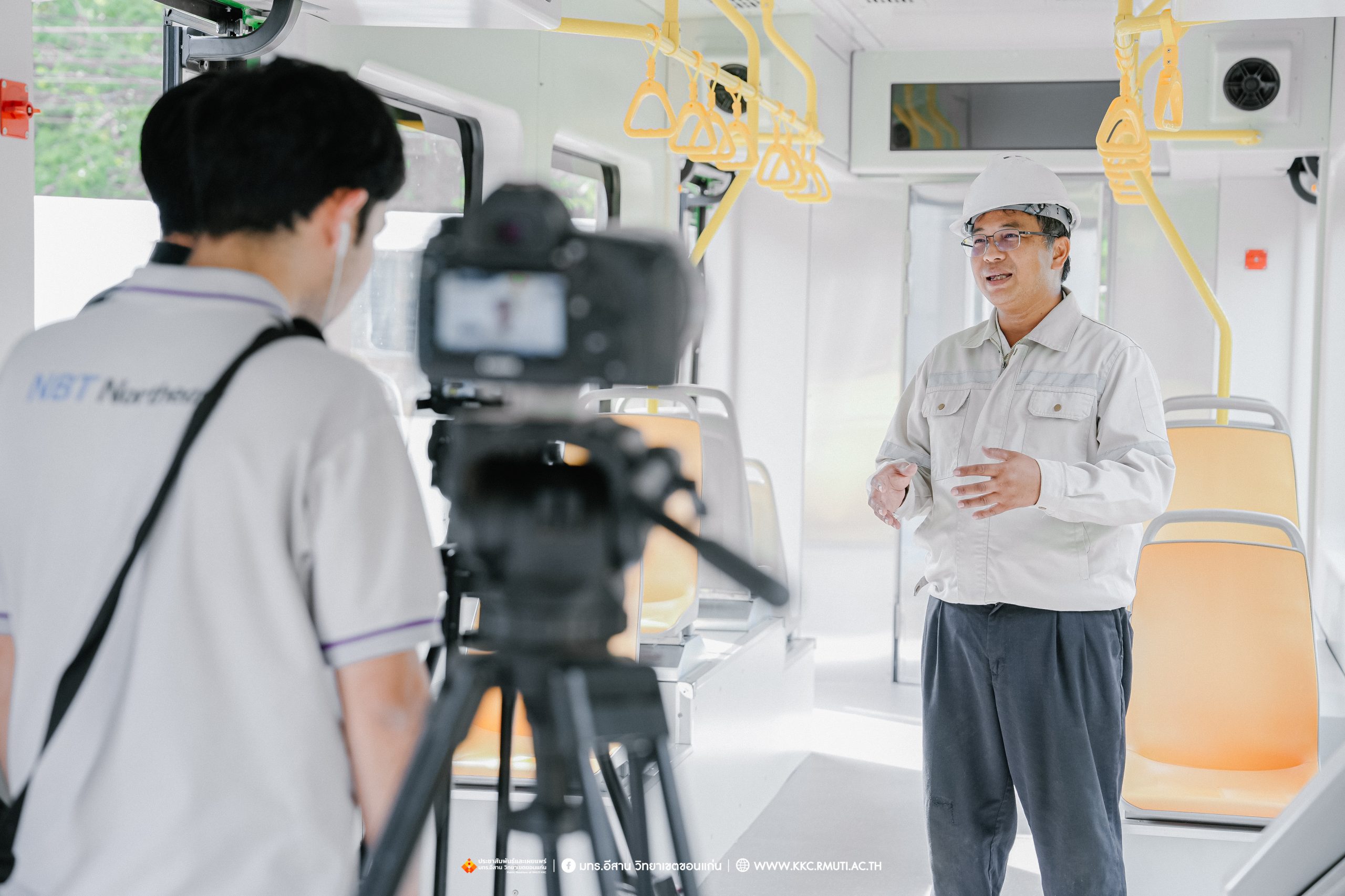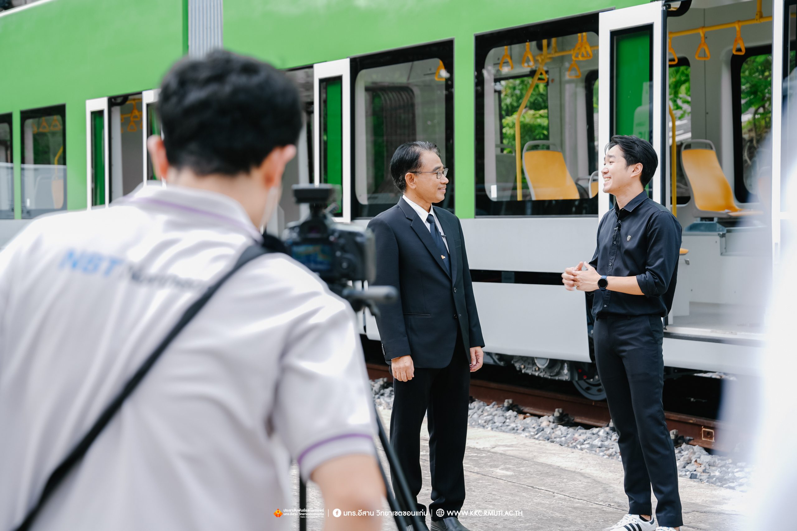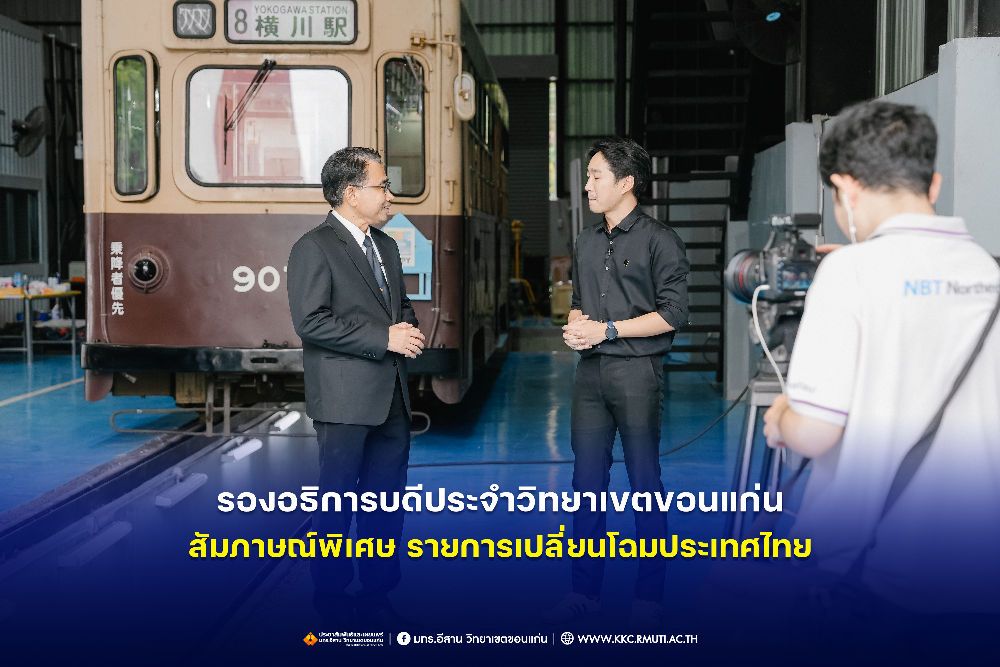 วันอังคารที่ 28 ตุลาคม 2568 มหาวิทยาลัยเทคโนโลยีราชมงคลอีสาน วิทยาเขตขอนแก่น โดย ผศ.ประพันธ์ ยาวระ รองอธิการบดีประจำวิทยาเขตขอนแก่น ให้สัมภาษณ์พิเศษทีมงานฝ่ายรายการ ส่วนบริหารกิจการโทรทัศน์ภาคตะวันออกเฉียงเหนือ จังหวัดขอนแก่น รายการเปลี่ยนโฉมประเทศไทย ออกอากาศทุกวันจันทร์ – วันศุกร์ เวลา 13.30 – 14.00 น.ทางช่อง NBT 11 ภาคอีสาน ประเด็นยุทธศาสตร์ด้านการศึกษาด้านระบบรางของมหาวิทยาลัยฯ พร้อมกันนี้ทีมงานได้สัมภาษณ์ ผศ.ดร.ไพรวรรณ เกิดตรวจ หัวหน้าโครงการวิจัยการพัฒนาระบบขนส่งทางราง อาจารย์ประจำสาขาวิชาวิศวกรรมไฟฟ้า คณะวิศวกรรมศาสตร์ ประเด็นการเรียนการสอน งานวิจัยด้านระบบราง ที่อาคารปฏิบัติการซ่อมบำรุงรถไฟฟ้า คณะวิศวกรรมศาสตร์ มหาวิทยาลัยเทคโนโลยีราชมงคลอีสาน วิทยาเขตขอนแก่น