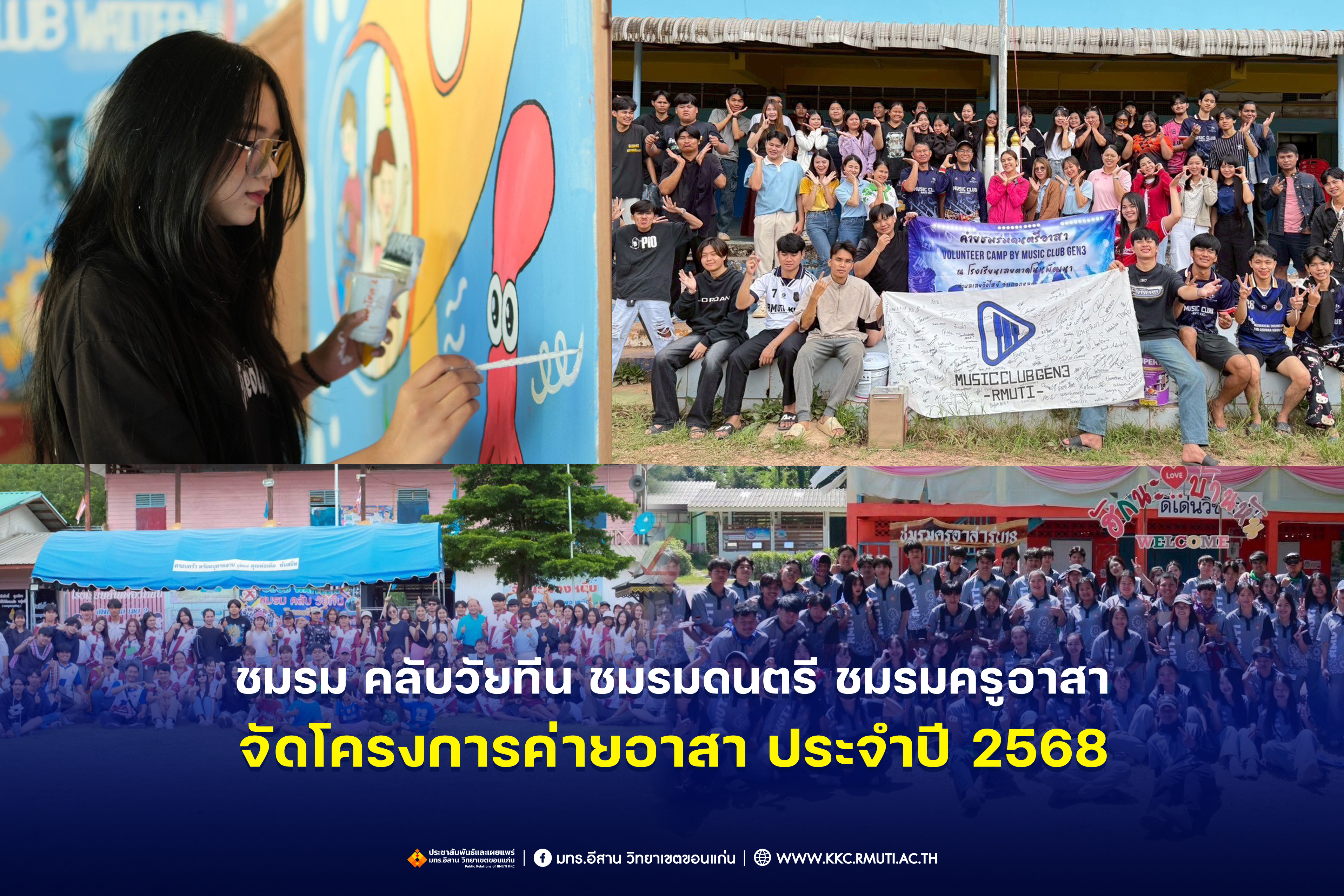 ในช่วงปิดภาคการศึกษา ภาคเรียนที่ 1/2568 ชมรมคลับวัยทีน ชมรมดนตรี และชมรมครูอาสา มหาวิทยาลัยเทคโนโลยีราชมงคลอีสาน วิทยาเขตขอนแก่น จัดโครงการค่ายอาสา ประจำปีการศึกษา 2568 ณ โรงเรียนบ้านพองหนีบ ตำบลศรีฐาน อำเภอภูกระดึง, โรงเรียนเลยตาดโนนพัฒนา ตำบลเลยวังไสย์ อำเภอภูหลวง จังหวัดเลย และโรงเรียนบ้านหัน ตำบลหนองกุงธนสาร อำเภอภูเวียง จังหวัดขอนแก่น การออกค่ายฯ