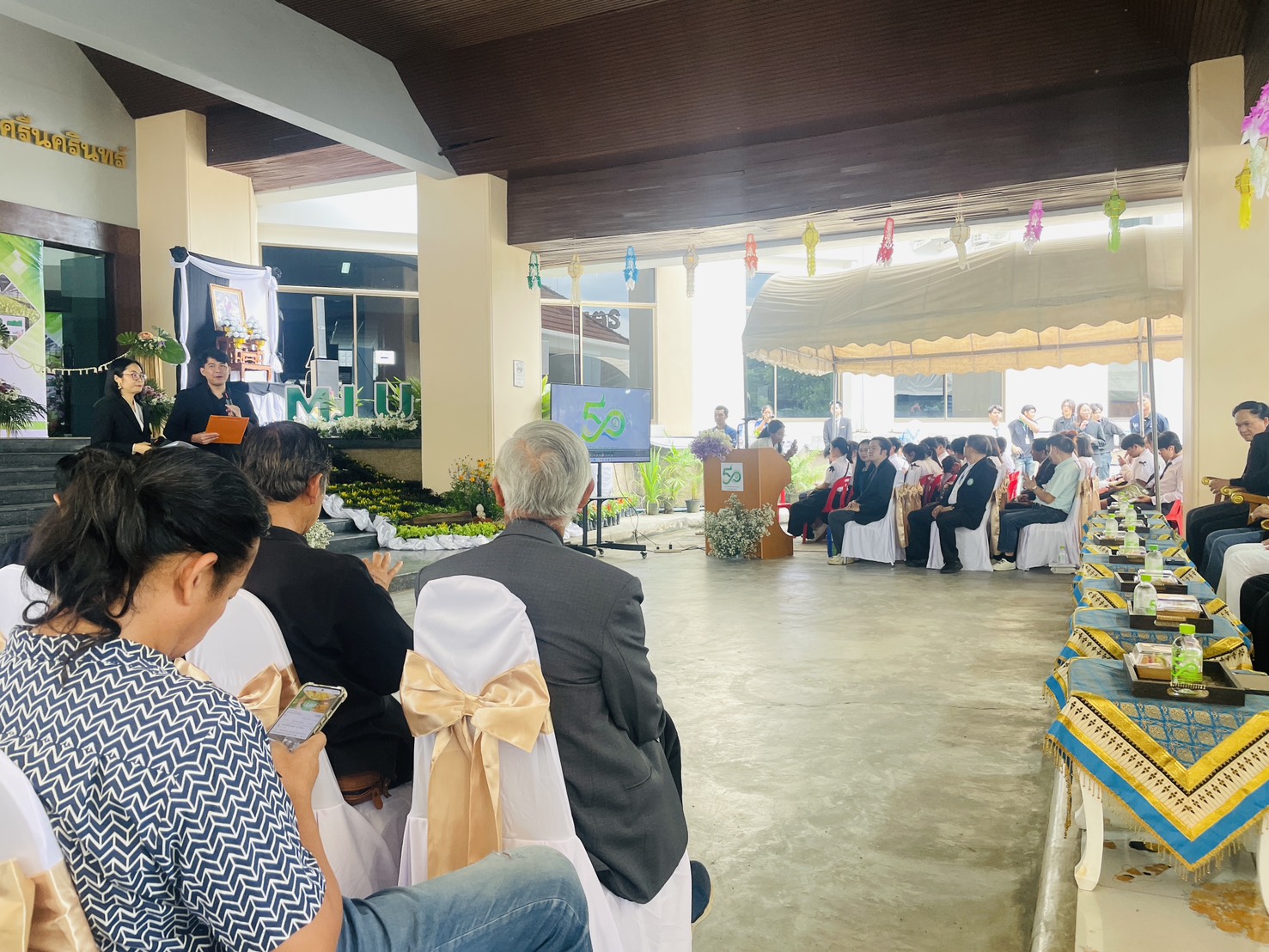 นอกจากนี้ ยังมีผู้บริหารจากคณะ สำนักต่าง ๆ ทั้งหน่วยงานภายในและหน่วยงานภายนอกมหาวิทยาลัยแม่โจ้ เข้าร่วมแสดงความยินดีในโอกาสครบรอบ 50 ปี เมื่อวันที่ 5 พฤศจิกายน 2568 ณ ชั้น 1 อาคารเฉลิมพระเกียรติสมเด็จพระศรีนครินทร์ คณะผลิตกรรมการเกษตร มหาวิทยาลัยแม่โจ้ พร้อมทั้งร่วมบรรยายพิเศษหัวข้อเรื่อง “บทบาทและความสำคัญในการประยุกต์ใช้ AI – Smart IoT ในฟาร์ม” ณ ห้องบรรยาย PT 106 อาคารพืชศาสตร์และเทคโนโลยี บรรยายพิเศษการใช้ระบบการจัดการน้ำระบบฟาร์มพืชไร่ แปลงสาธิตพืชไร่ คณะผลิตกรรมการเกษตร มหาวิทยาลัยแม่โจ้ มทร.อีสาน มหาวิทยาลัยที่พร้อมด้วยคณาจารย์นักวิจัย ผู้ทรงคุณวุฒิ มากด้วยประสบการณ์ ทางด้าน AI – Smart IoT พร้อมในการบูรณาการความร่วมมือทุกเครือข่ายทั้งภาครัฐและเอกชน เพื่อการพัฒนาประเทศอย่างยั่งยืน