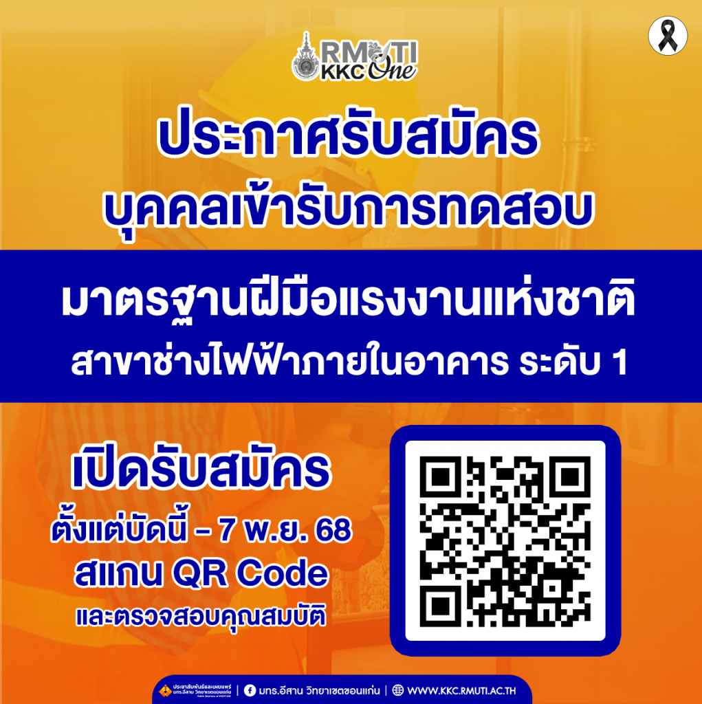 ประกาศรับสมัคร ผู้ทดสอบมาตรฐานฝีมือแรงงานแห่งชาติ สาขาช่างไฟฟ้าภายในอาคาร ระดับ 1 พฤศจิกายน 7, 2025พฤศจิกายน 7, 2025ประชาสัมพันธ์ประชาสัมพันธ์ Facebook iconFacebookTwitter iconTwitterLINE iconLine