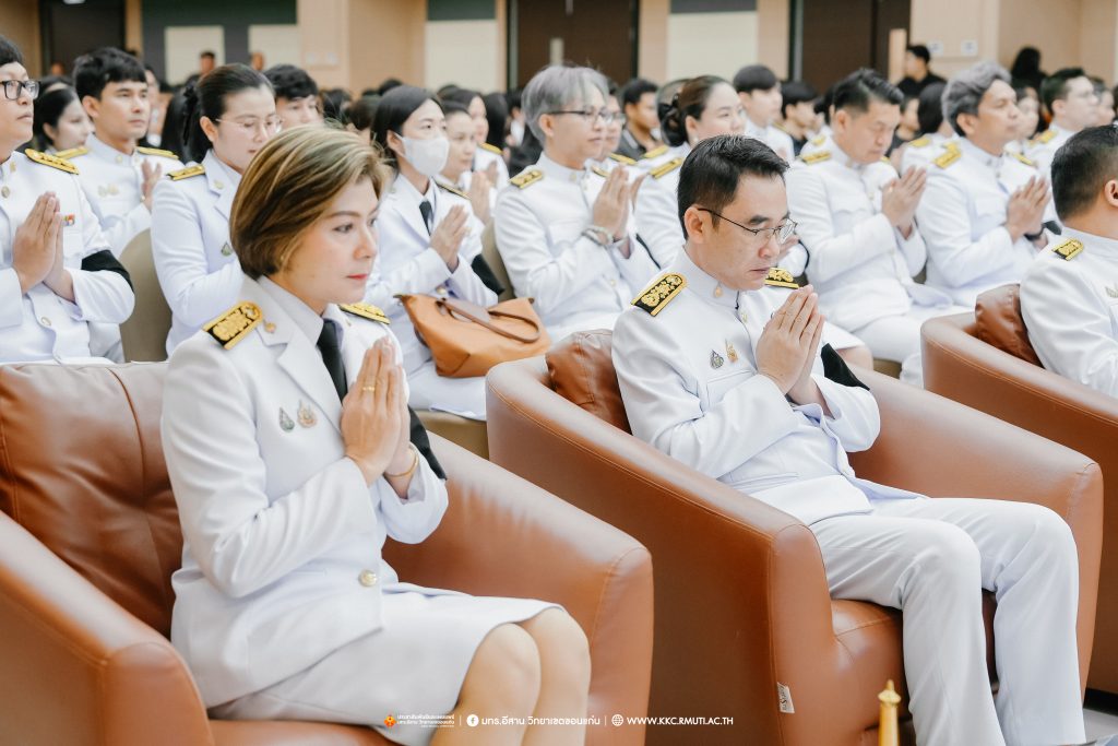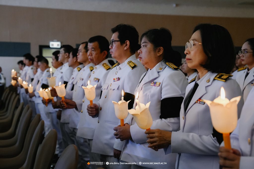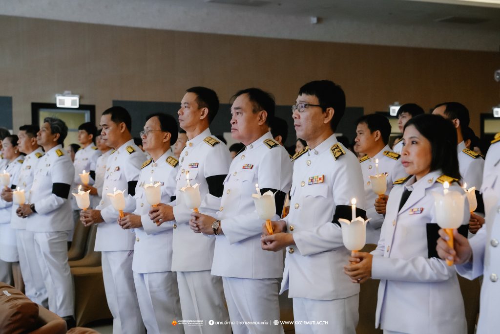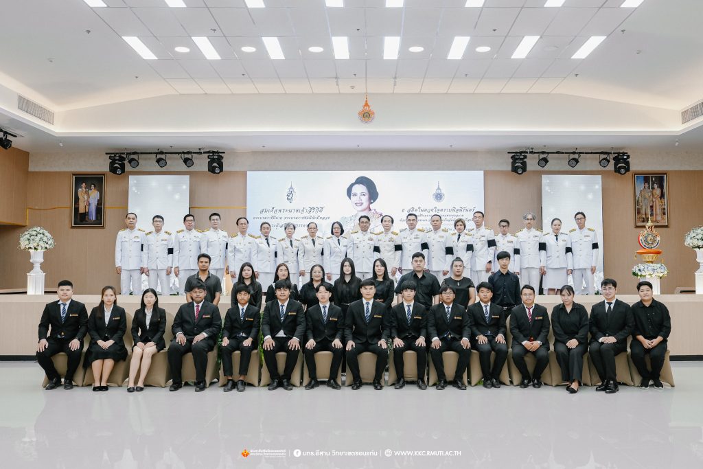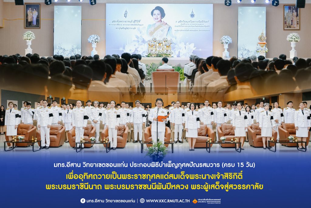 วันศุกร์ที่ 7 พฤศจิกายน 2568 มหาวิทยาลัยเทคโนโลยีราชมงคลอีสาน วิทยาเขตขอนแก่น โดย ผศ.ประพันธ์ ยาวระ รองอธิการบดีประจำวิทยาเขตขอนแก่น พร้อมด้วย อาจารย์บุญกิจ อุ่นพิกุล ผศ.ดร.นทยา กัมพลานนท์ ผู้ช่วยอธิการบดี ผศ.ดร.ศุภฤกษ์ ชามงคลประดิษฐ์ คณบดีคณะวิศวกรรมศาสตร์ อาจารย์ ดร.อารีรัตน์ เชื้อบุญเกิด โนท คณบดีคณะบริหารธุรกิจและเทคโนโลยีสารสนเทศ ผศ.ดร.วิรัช ชินพลอย คณบดีคณะครุศาสตร์อุตสาหกรรม คณะผู้บริหาร คณาจารย์ สภาคณาจารย์และข้าราชการ บุคลากร ผู้นำนักศึกษา และนักศึกษากว่า 800 คน ประกอบพิธีบำเพ็ญกุศลปัณรสมวาร (ครบ 15 วัน) และพิธีถวายอาลัย เพื่ออุทิศถวายเป็นพระราชกุศลแด่สมเด็จพระนางเจ้าสิริกิติ์ พระบรมราชินีนาถ พระบรมราชชนนีพันปีหลวง พระผู้เสด็จสู่สวรรคาลัย ได้รับเมตตาจาก พระครูสุเมธธรรมสาร เจ้าอาวาสวัดมรรคสำราญ บ้านดอนหญ้านาง เป็นประธานฝ่ายสงฆ์ พร้อมด้วยพระสงฆ์ 4 รูป ประกอบศาสนพิธี ณ ห้องประชุมนราธิเบศร์ อาคารเฉลิมพระเกียรติ 72 พรรษา (อาคาร 19)