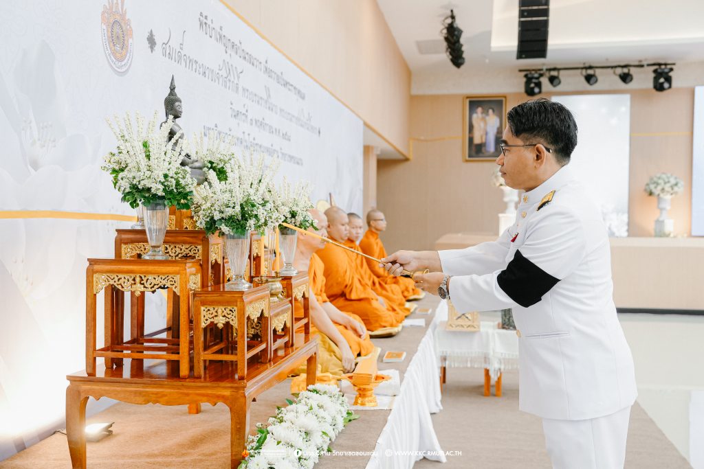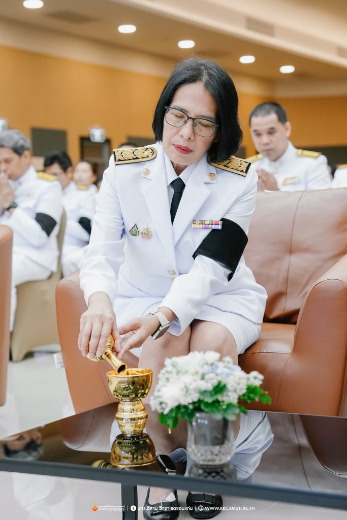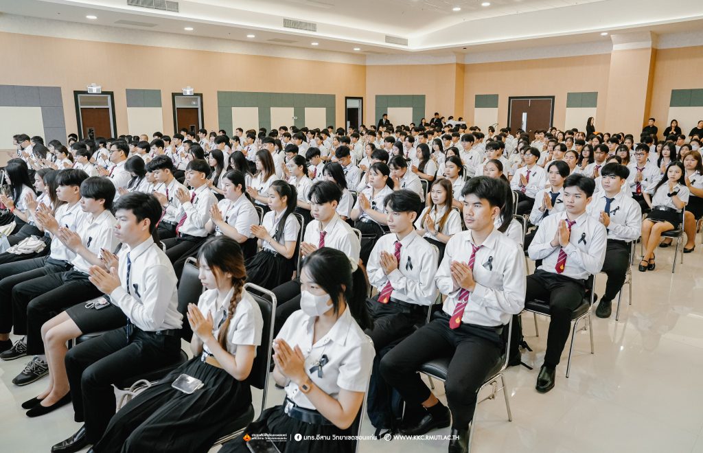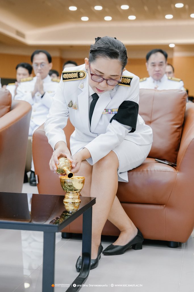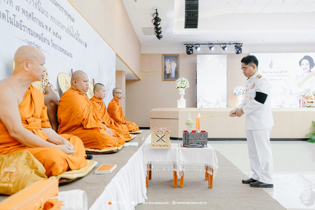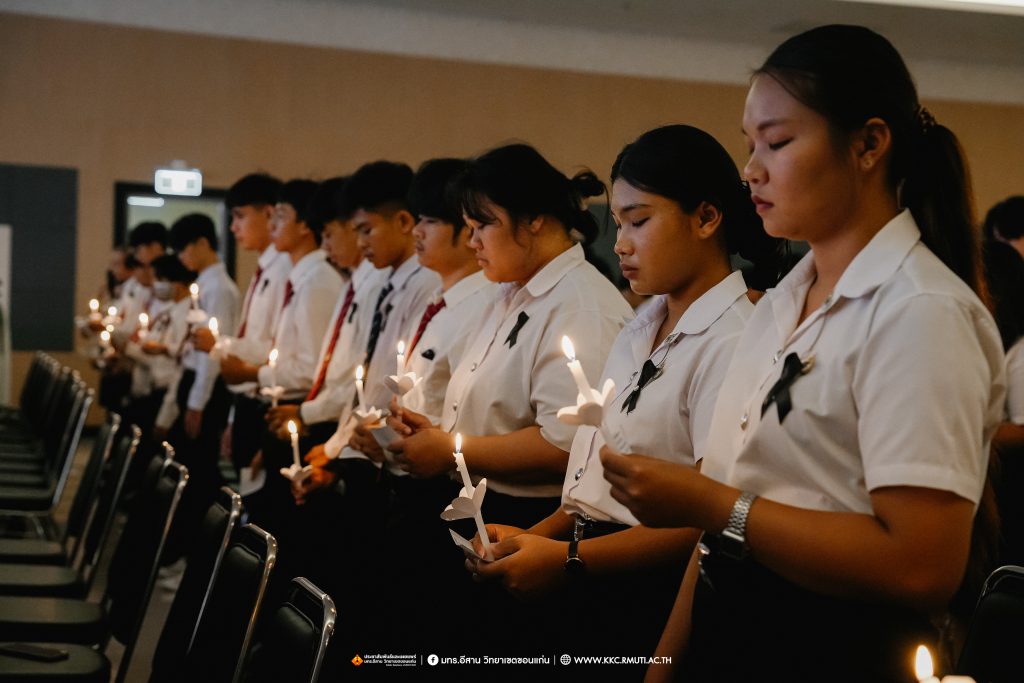 วันศุกร์ที่ 7 พฤศจิกายน 2568 มหาวิทยาลัยเทคโนโลยีราชมงคลอีสาน วิทยาเขตขอนแก่น โดย ผศ.ประพันธ์ ยาวระ รองอธิการบดีประจำวิทยาเขตขอนแก่น พร้อมด้วย อาจารย์บุญกิจ อุ่นพิกุล ผศ.ดร.นทยา กัมพลานนท์ ผู้ช่วยอธิการบดี ผศ.ดร.ศุภฤกษ์ ชามงคลประดิษฐ์ คณบดีคณะวิศวกรรมศาสตร์ อาจารย์ ดร.อารีรัตน์ เชื้อบุญเกิด โนท คณบดีคณะบริหารธุรกิจและเทคโนโลยีสารสนเทศ ผศ.ดร.วิรัช ชินพลอย คณบดีคณะครุศาสตร์อุตสาหกรรม คณะผู้บริหาร คณาจารย์ สภาคณาจารย์และข้าราชการ บุคลากร ผู้นำนักศึกษา และนักศึกษากว่า 800 คน ประกอบพิธีบำเพ็ญกุศลปัณรสมวาร (ครบ 15 วัน) และพิธีถวายอาลัย เพื่ออุทิศถวายเป็นพระราชกุศลแด่สมเด็จพระนางเจ้าสิริกิติ์ พระบรมราชินีนาถ พระบรมราชชนนีพันปีหลวง พระผู้เสด็จสู่สวรรคาลัย ได้รับเมตตาจาก พระครูสุเมธธรรมสาร เจ้าอาวาสวัดมรรคสำราญ บ้านดอนหญ้านาง เป็นประธานฝ่ายสงฆ์ พร้อมด้วยพระสงฆ์ 4 รูป ประกอบศาสนพิธี ณ ห้องประชุมนราธิเบศร์ อาคารเฉลิมพระเกียรติ 72 พรรษา (อาคาร 19)