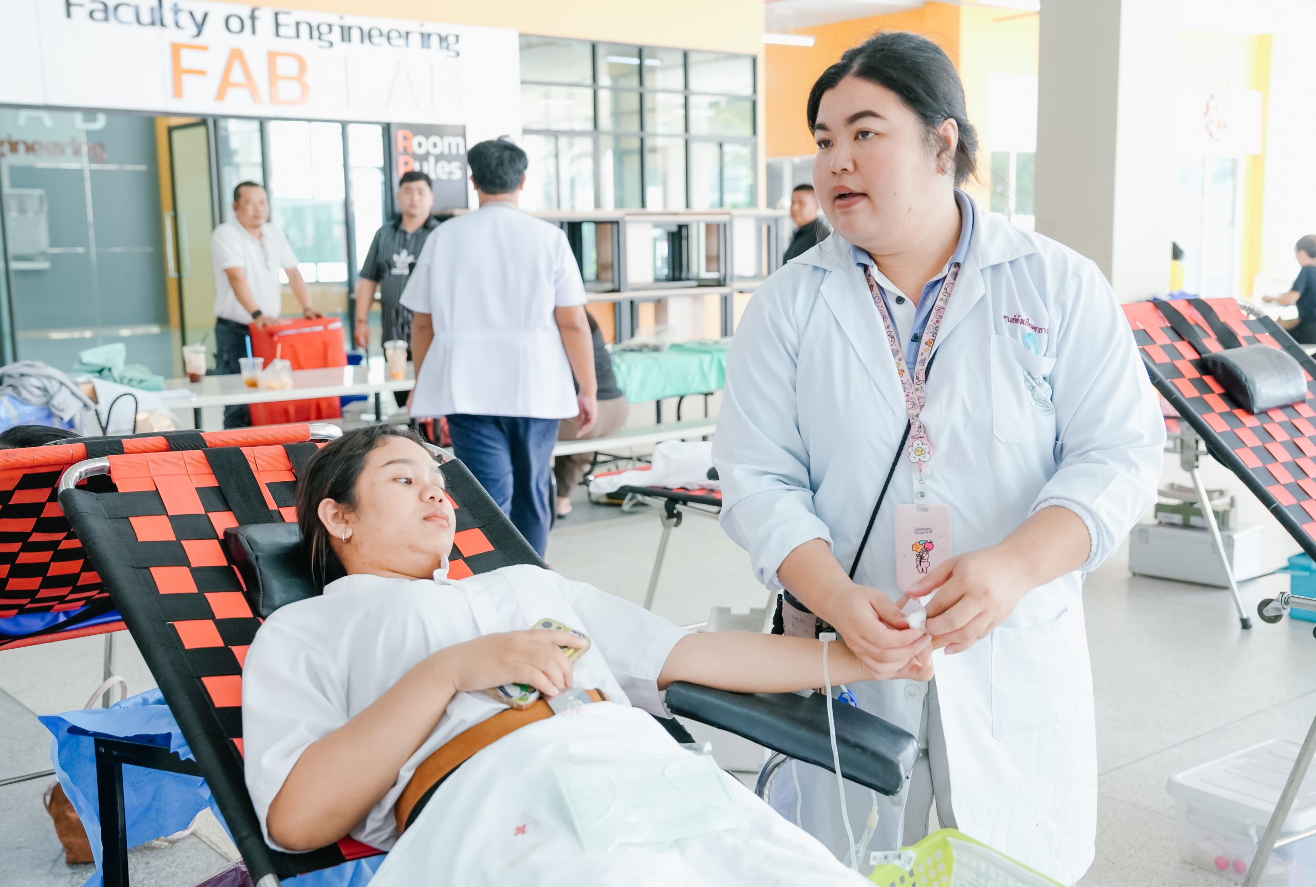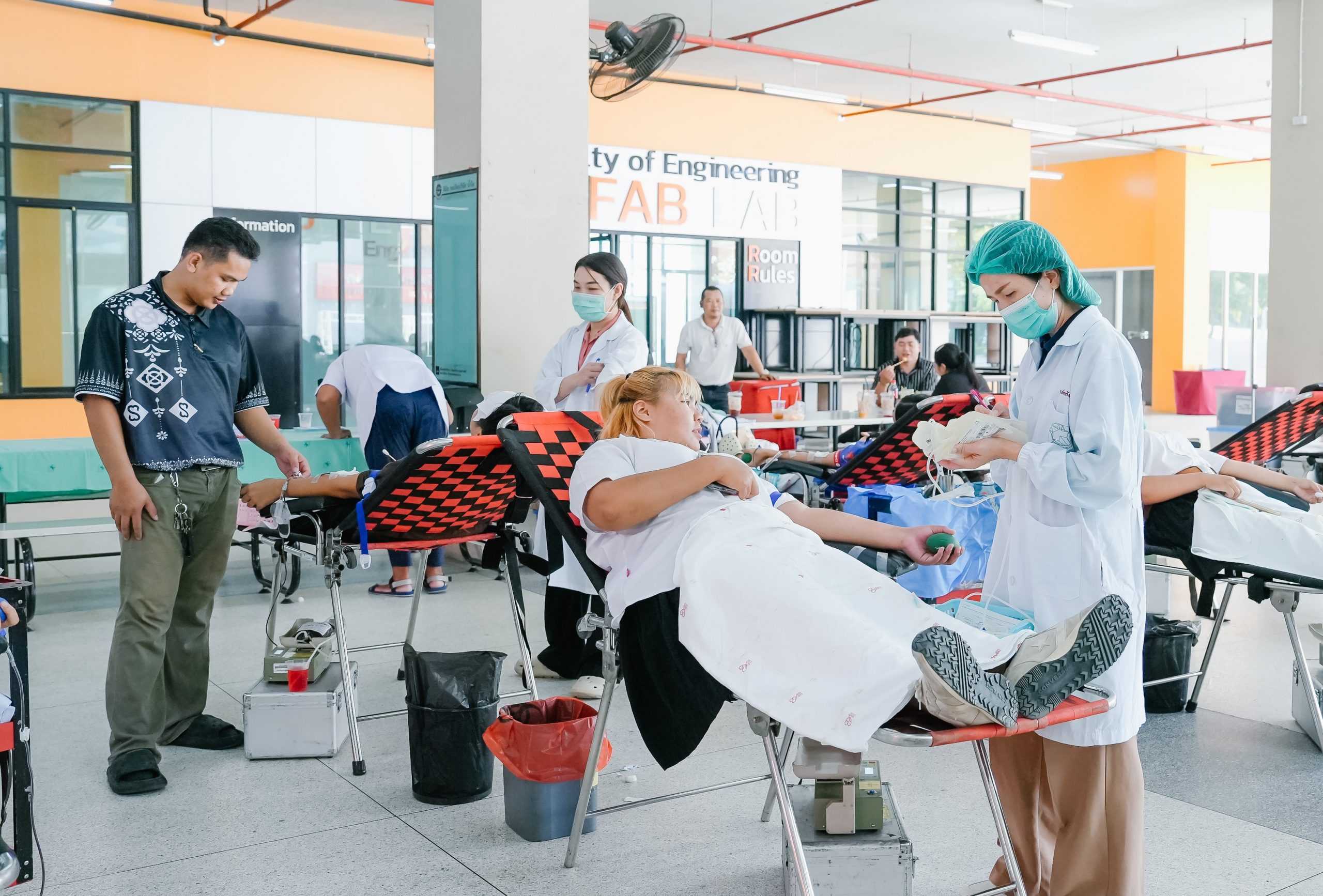 โดยมีชมรมผู้บริจาคโลหิต 61 ร่วมอำนวยความสะดวกให้แก่ผู้ร่วมบริจาค พร้อมบริการอาหารว่างและมอบของที่ระลึกเป็นกำลังใจให้ผู้มีจิตอันเป็นกุศล ได้รับน้ำใจจากคณาจารย์ บุคลากรและนักศึกษาร่วมบริจาคโลหิต จำนวน 66 ราย สามารถเก็บโลหิตได้ จำนวน 26,900 c.c เพื่อเป็นการสำรองโลหิตให้กับเหล่ากาชาดฯ และโรงพยาบาลฯ