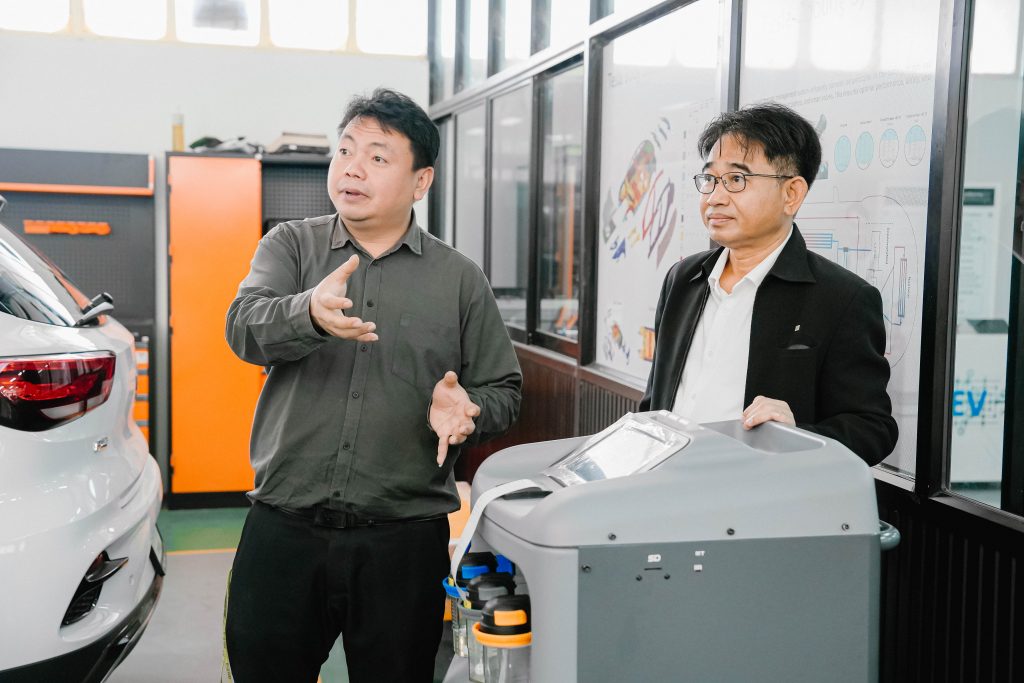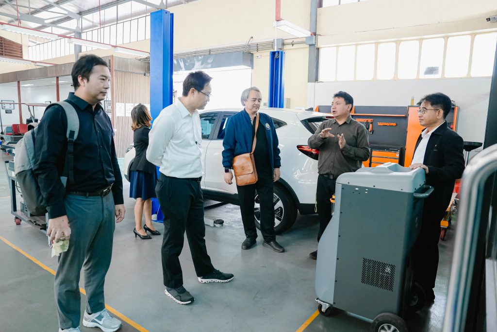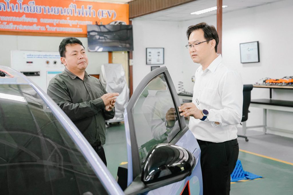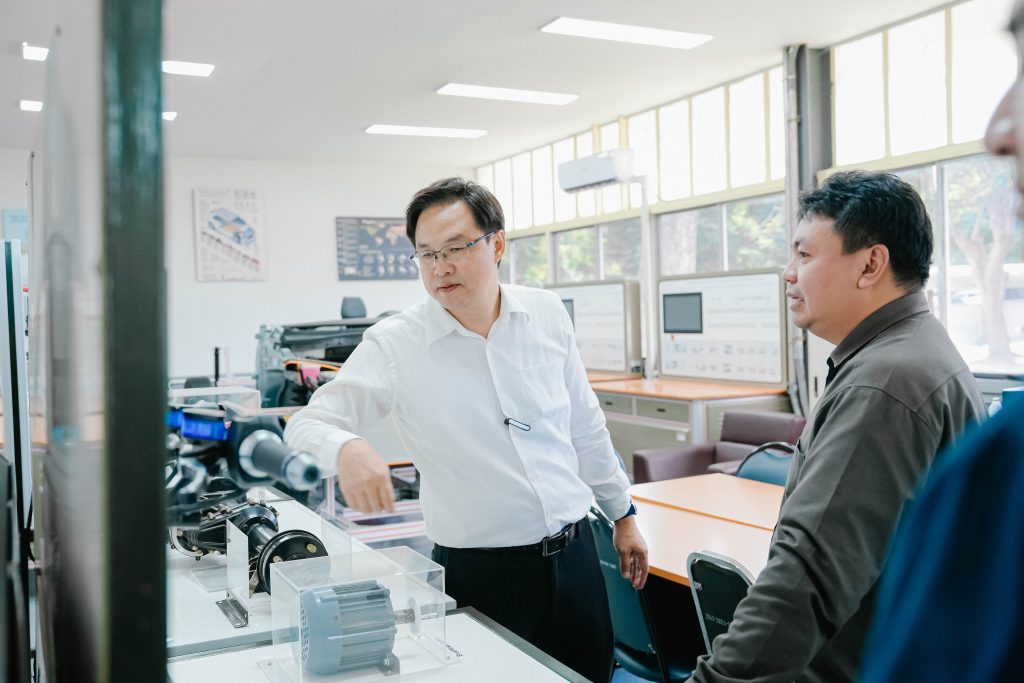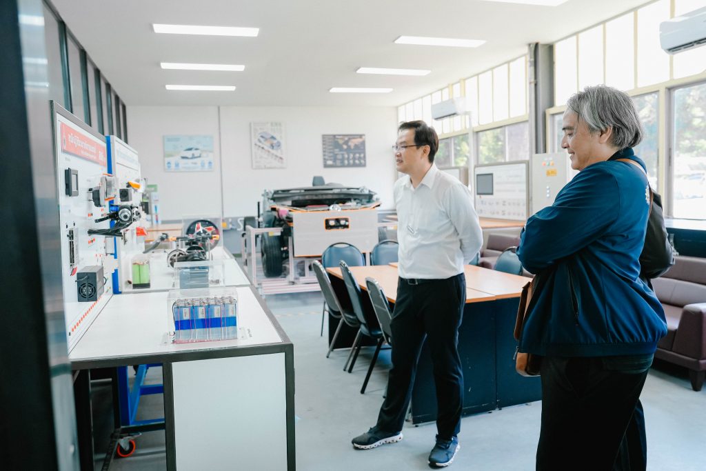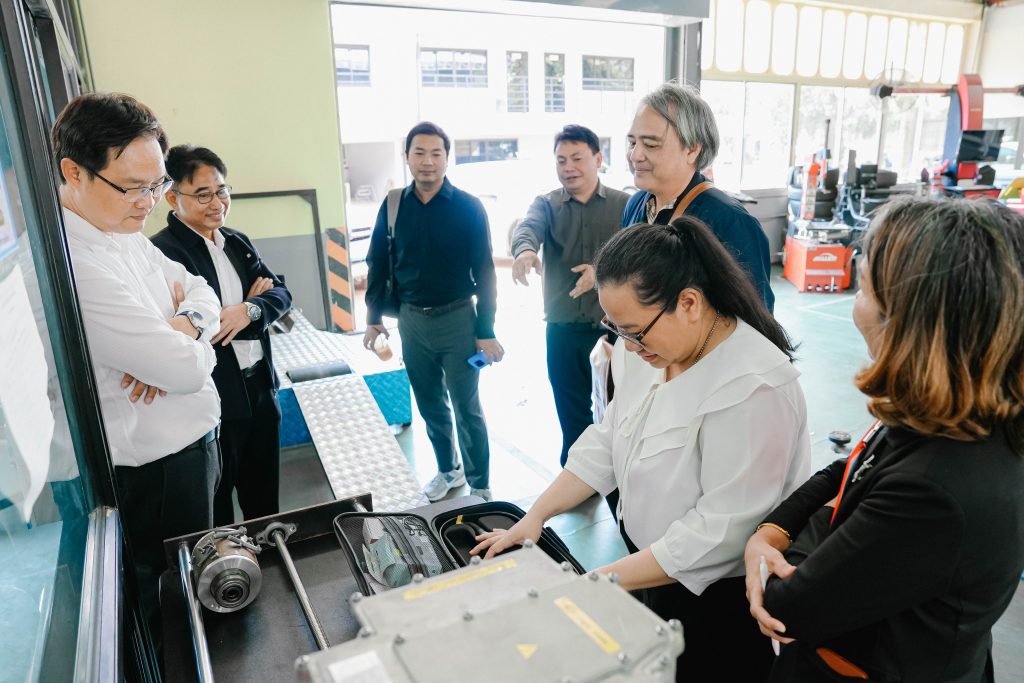 วันพฤหัสบดีที่ 13 พฤศจิกายน พ.ศ. 2568 มหาวิทยาลัยเทคโนโลยีราชมงคลอีสาน วิทยาเขตขอนแก่น โดย ผศ.ประพันธ์ ยาวระ รองอธิการบดีประจำวิทยาเขตขอนแก่น ให้การต้อนรับ รศ.ดร.จักรมาส เลาหวณิช คณบดีคณะวิศวกรรมศาสตร์ มหาวิทยาลัยมหาสารคาม พร้อมด้วย ผศ.ดร.ณัฐพล ภูมิสะอาด รองคณบดีคณะวิศวกรรมศาสตร์ ฝ่ายบริหารและวางแผน และคณาจารย์ ในโอกาสเข้าพบเพื่อเยี่ยมชมศูนย์การเรียนรู้ยานยนต์ไฟฟ้า ณ มหาวิทยาลัยเทคโนโลยีราชมงคลอีสาน วิทยาเขตขอนแก่น โดยมี อาจารย์สมพร คำไชย หัวหน้าสาขาวิชาครุศาสตร์อุตสาหกรรมเครื่องกล พร้อมด้วยอาจารย์เกษมสันต์ บุษบงก์ และคณาจารย์ประจำสาขาฯ ร่วมให้การต้อนรับพร้อมนำเยี่ยมชม และให้คำแนะนำอุปกรณ์ที่เกี่ยวข้องในการเรียนการสอน ให้คำปรึกษาด้านรายวิชาที่เกี่ยวข้องกับสาขาวิศวกรรมยานยนต์ไฟฟ้า การเรียนรู้จากใบงาน การวัดผล การจัดทำโครงงานฯ ของนักศึกษา ทั้งนี้ มทร.อีสาน สถาบันการศึกษาชั้นนำ มีความพร้อมด้านการเรียนการสอนในสาขายานยนต์ไฟฟ้า ยานยนต์สมัยใหม่ มีหลักสูตรที่ทันสมัย มีงานวิจัยที่ทรงคุณค่า พร้อมให้บริการวิชาการและยินดีร่วมบูรณาการกับทุกสถาบันการศึกษาเพื่อการพัฒนาประเทศอย่างยั่งยืน