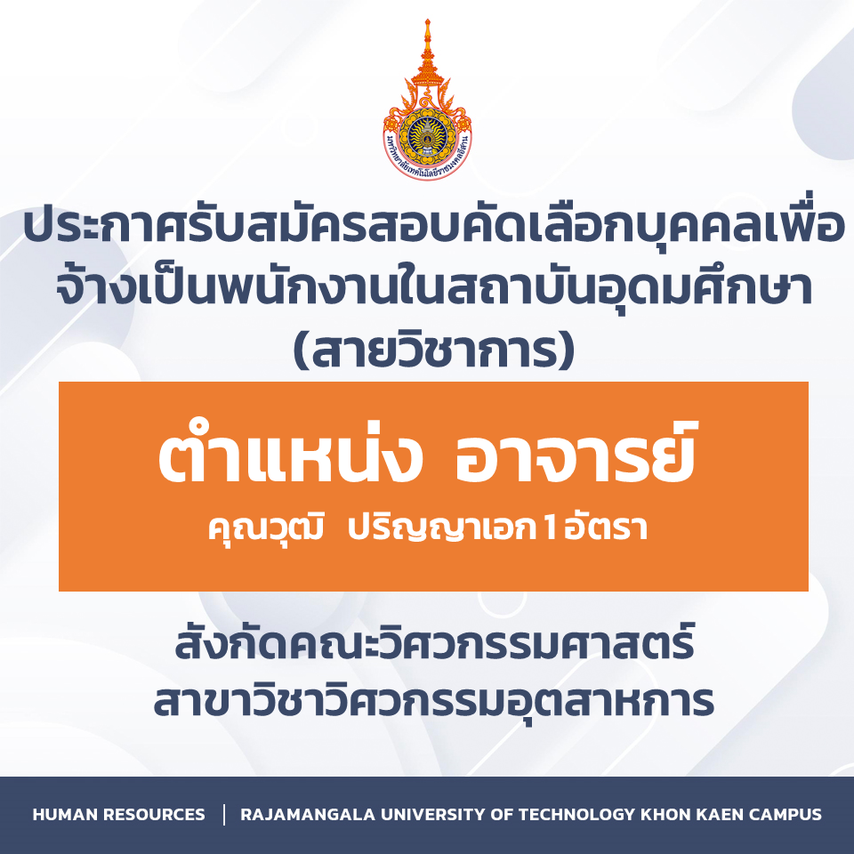 ประกาศรับสมัครสอบคัดเลือกบุคคลเพื่อจ้างเป็นพนักงานในสถาบันอุดมศึกษา (สายวิชาการ) ตำแหน่ง อาจารย์ จำนวน ๑ อัตรา คุณวุฒิ ปริญญาเอก สังกัดคณะวิศวกรรมศาสตร์ สาขาวิชาวิศวกรรมอุตสาหการ พฤศจิกายน 14, 2025พฤศจิกายน 14, 2025ประชาสัมพันธ์ประชาสัมพันธ์, รับสมัครงาน ประกาศรับสมัครสอบคัดเลือกบุคคลเพื่อจ้างเป็นพนักงานในสถาบันอุดมศึกษา (สายวิชาการ)ตำแหน่ง อาจารย์จำนวน ๑ อัตราคุณวุฒิ ปริญญาเอกสังกัดคณะวิศวกรรมศาสตร์สาขาวิชาวิศวกรรมอุตสาหการดาวน์โหลด Facebook iconFacebookTwitter iconTwitterLINE iconLine