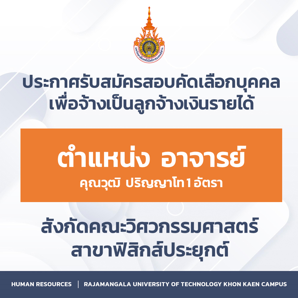 ประกาศรับสมัครสอบคัดเลือกบุคคลเพื่อจ้างเป็นลูกจ้างเงินรายได้ ตำแหน่ง อาจารย์ จำนวน ๑ อัตรา คุณวุฒิ ปริญญาโท สังกัดคณะวิศวกรรมศาสตร์ สาขาฟิสิกส์ประยุกต์ พฤศจิกายน 19, 2025พฤศจิกายน 19, 2025ประชาสัมพันธ์ประชาสัมพันธ์, รับสมัครงาน ประกาศรับสมัครสอบคัดเลือกบุคคลเพื่อจ้างเป็นลูกจ้างเงินรายได้ตำแหน่ง อาจารย์ จำนวน ๑ อัตราคุณวุฒิ ปริญญาโทสังกัดคณะวิศวกรรมศาสตร์สาขาฟิสิกส์ประยุกต์ดาวน์โหลด Facebook iconFacebookTwitter iconTwitterLINE iconLine