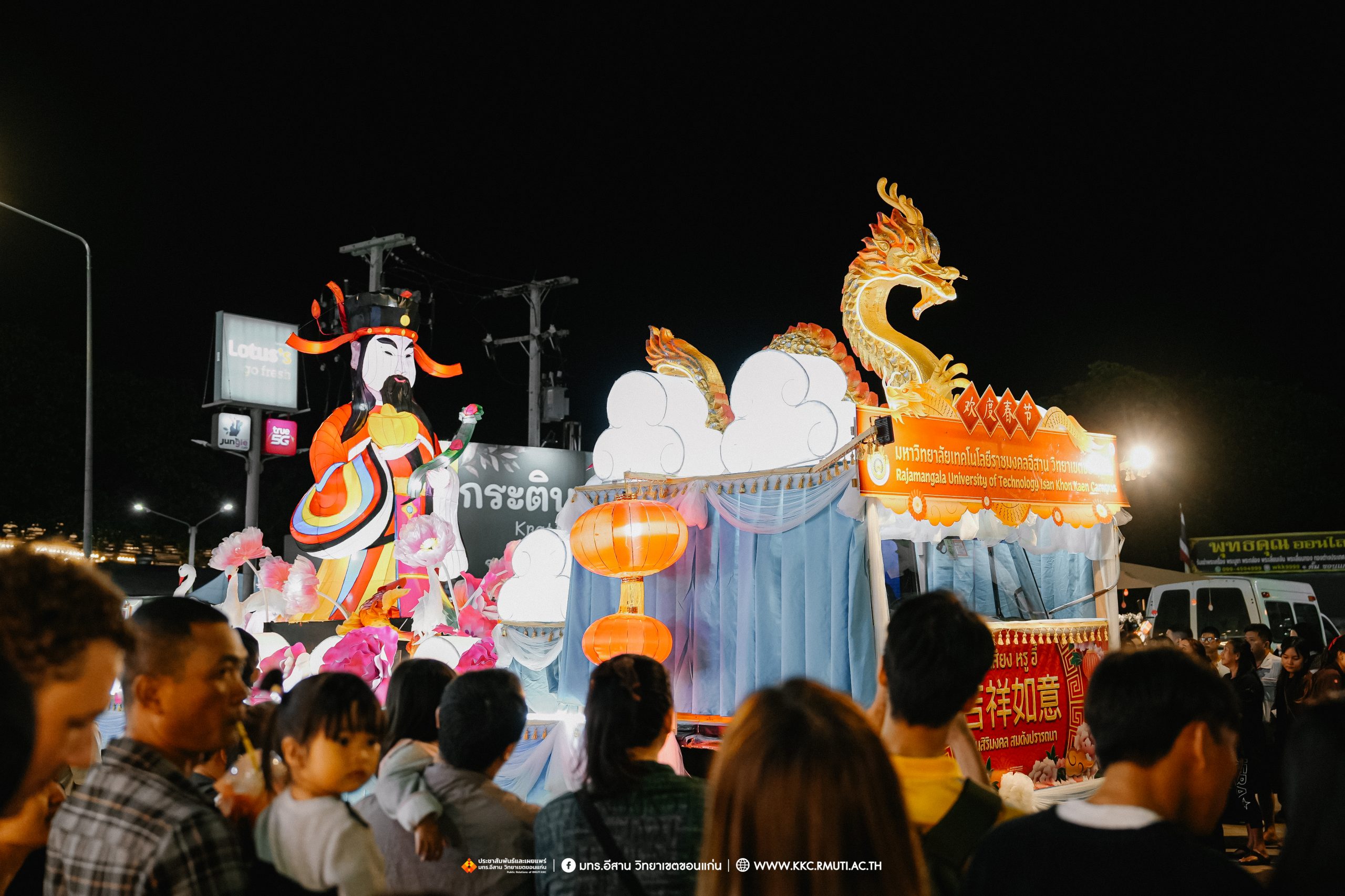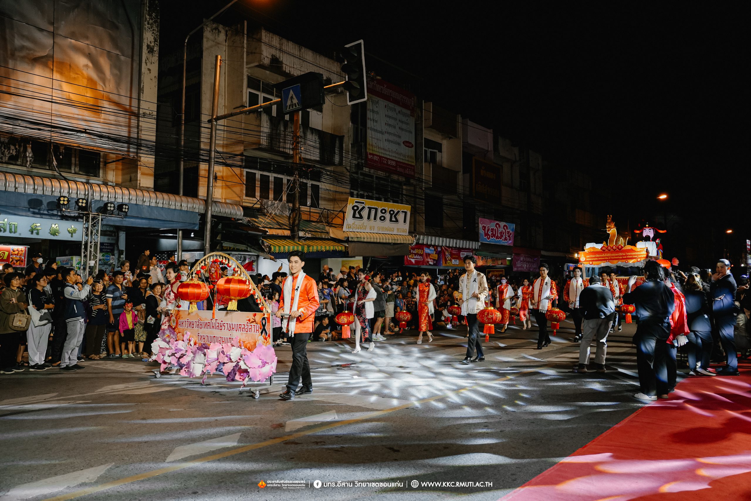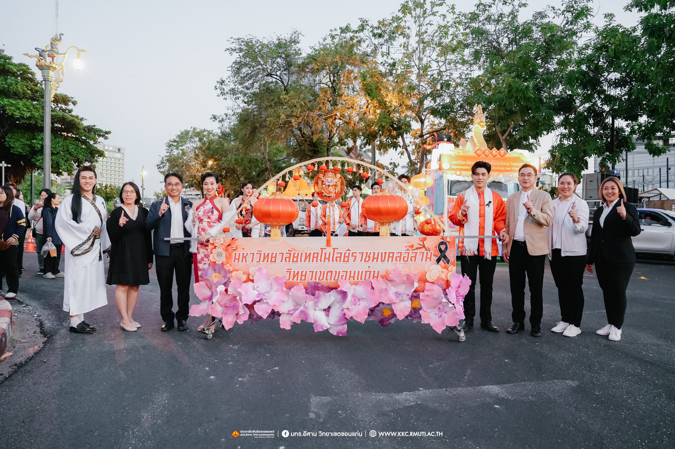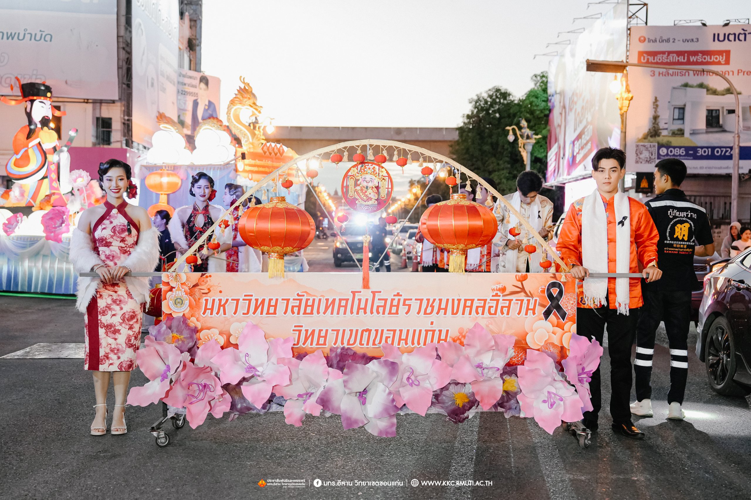 วันศุกร์ที่ 21 พฤศจิกายน พ.ศ. 2568 เวลา 18.00 น. มหาวิทยาลัยเทคโนโลยีราชมงคลอีสาน วิทยาเขตขอนแก่น โดย ผศ.ประพันธ์ ยาวระ รองอธิการบดีประจำวิทยาเขตขอนแก่น พร้อมด้วย ผศ.ดร.นทยา กัมพลานนท์ ผู้ช่วยอธิการบดี ผศ.ดร.ศุภฤกษ์ ชามงคลประดิษฐ์ คณบดีคณะวิศวกรรมศาสตร์ อาจารย์ฐิติพร จันทร์ดา รองคณบดีฝ่ายพัฒนานักศึกษา คณะครุศาสตร์อุตสาหกรรม นางสาวคนึงนิจ กลิ่นขจร ผู้อำนวยการสำนักงานวิทยาเขตขอนแก่น นางสาวพิราวรรณ โสตรจ้ำ หัวหน้างานบริการการศึกษา นายวุฒิพงษ์ ลีโคตร หัวหน้าแผนกงานพัฒนานักศึกษาและเครือข่ายสัมพันธ์ สำนักงานวิทยาเขตขอนแก่น นำคณาจารย์ บุคลากรและนักศึกษาเข้าร่วม “ขบวนแห่โคมไฟเทพเจ้าแสงแห่งศรัทธา” งานสมโภชศาลเจ้าปึงเถ่ากงม่า Festival ไทย – จีน – อีสาน “งานงิ้วขอนแก่น 2568” โดยในปีนี้ มทร.อีสาน วิทยาเขตขอนแก่น นำนักศึกษาจากคณะครุศาสตร์อุตสาหกรรม คณะวิศวกรรมศาสตร์ คณะบริหารธุรกิจและเทคโนโลยีสารสนเทศ ร่วมขบวนภายใต้แนวคิด “จี๋เสียงหรูอี้ (吉祥如意)” นำเสนอความเป็นสิริมงคลสมดังปรารถนา