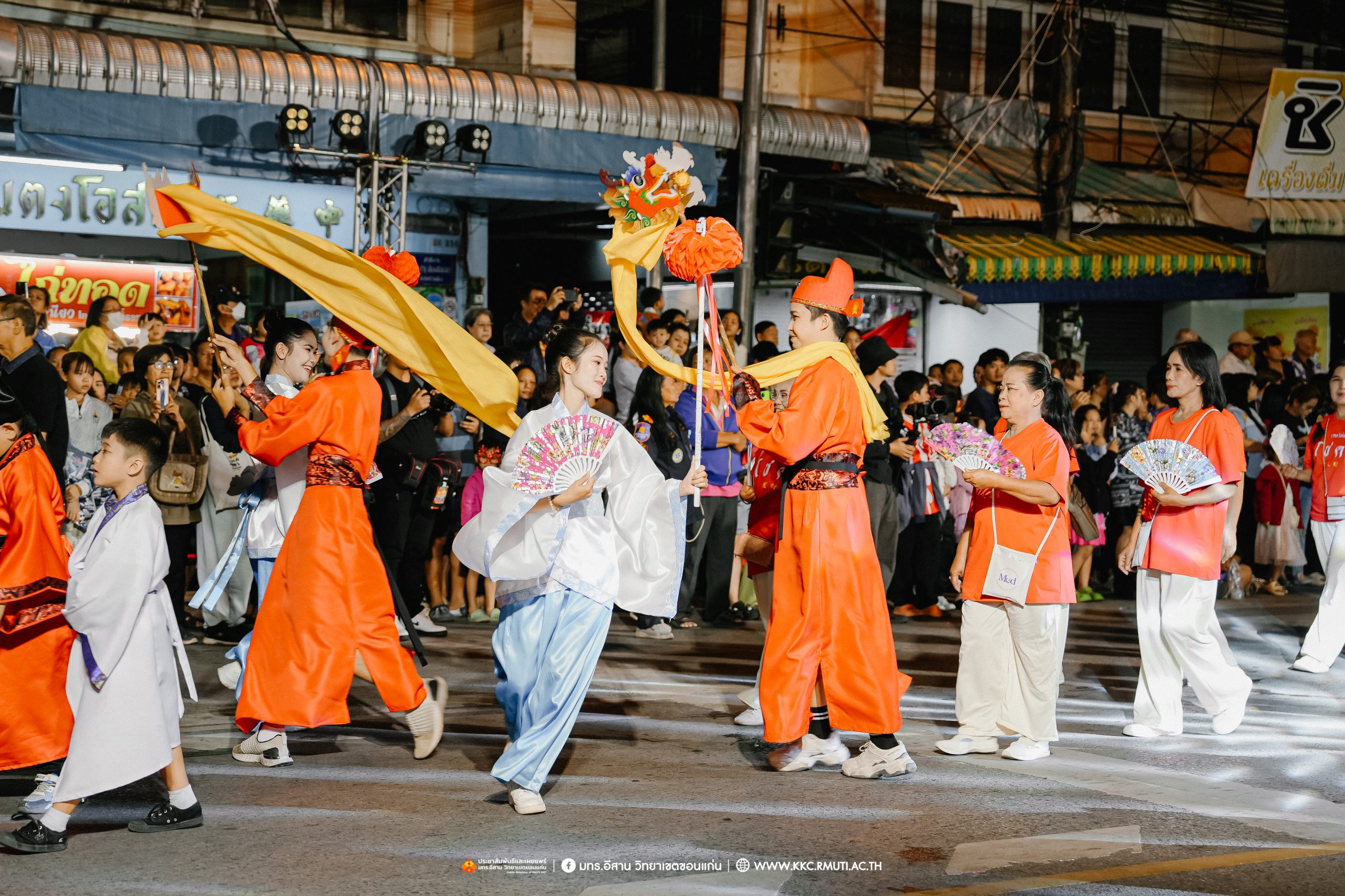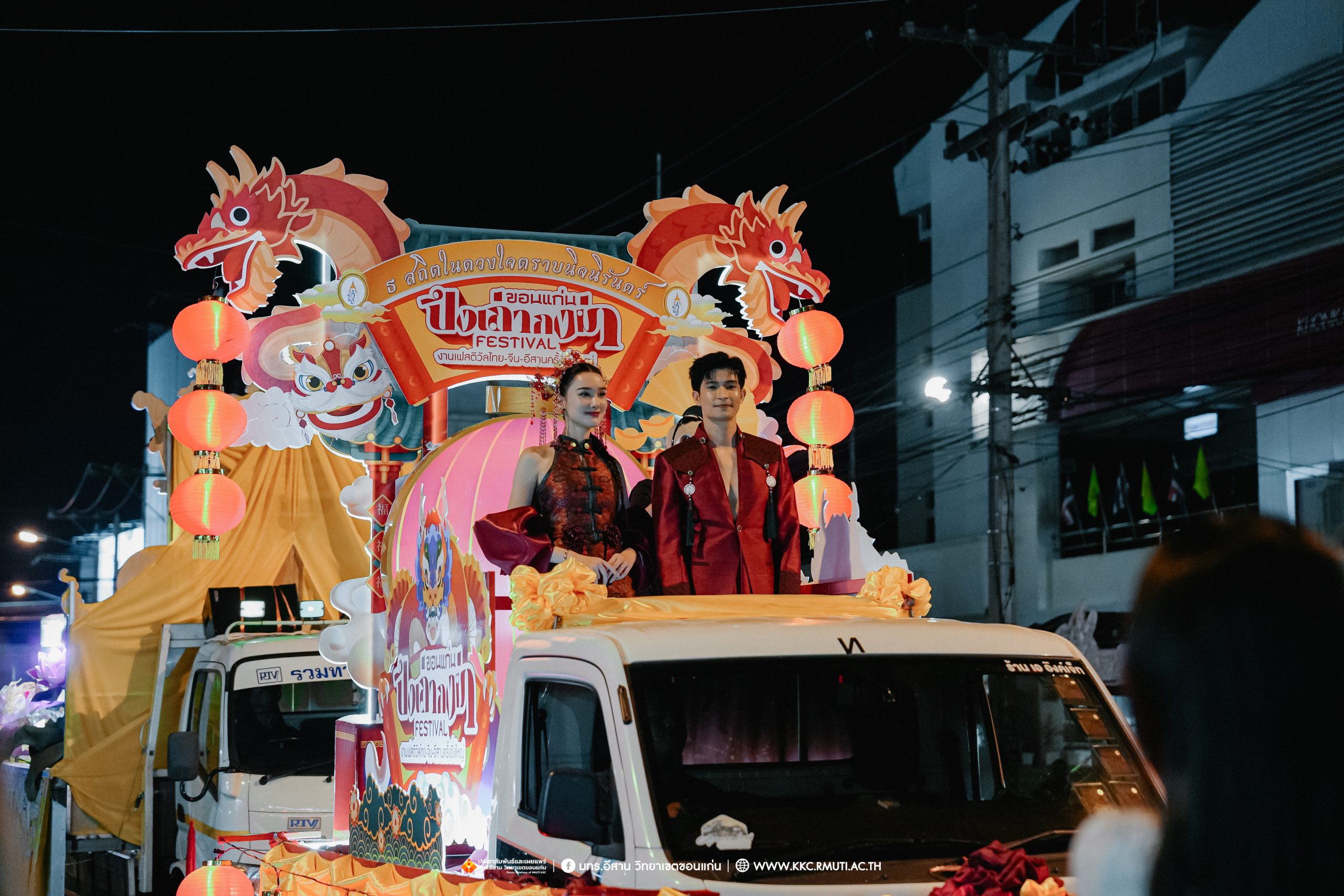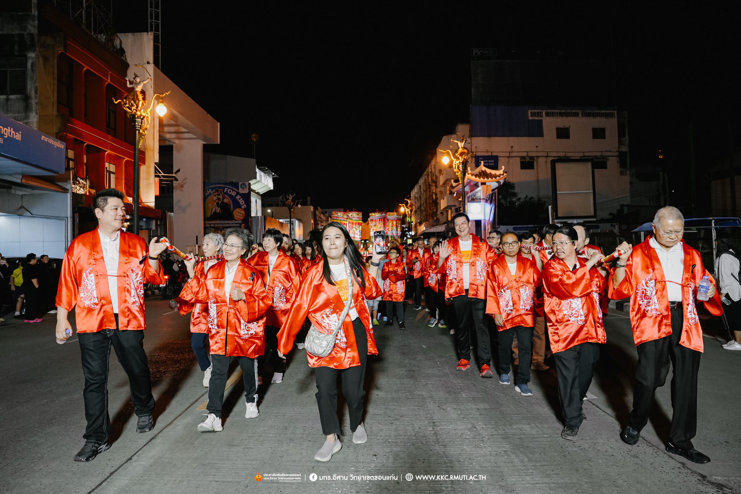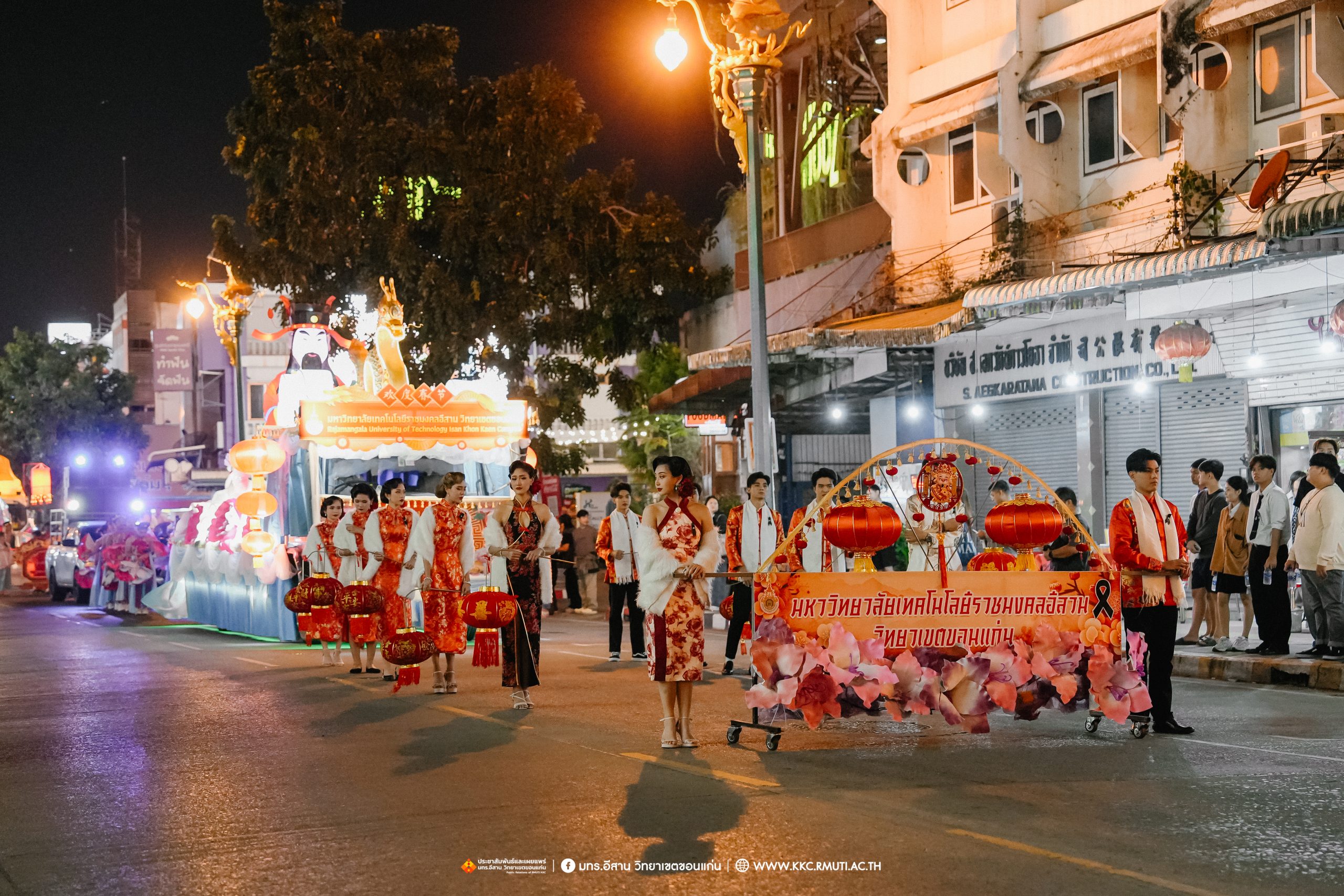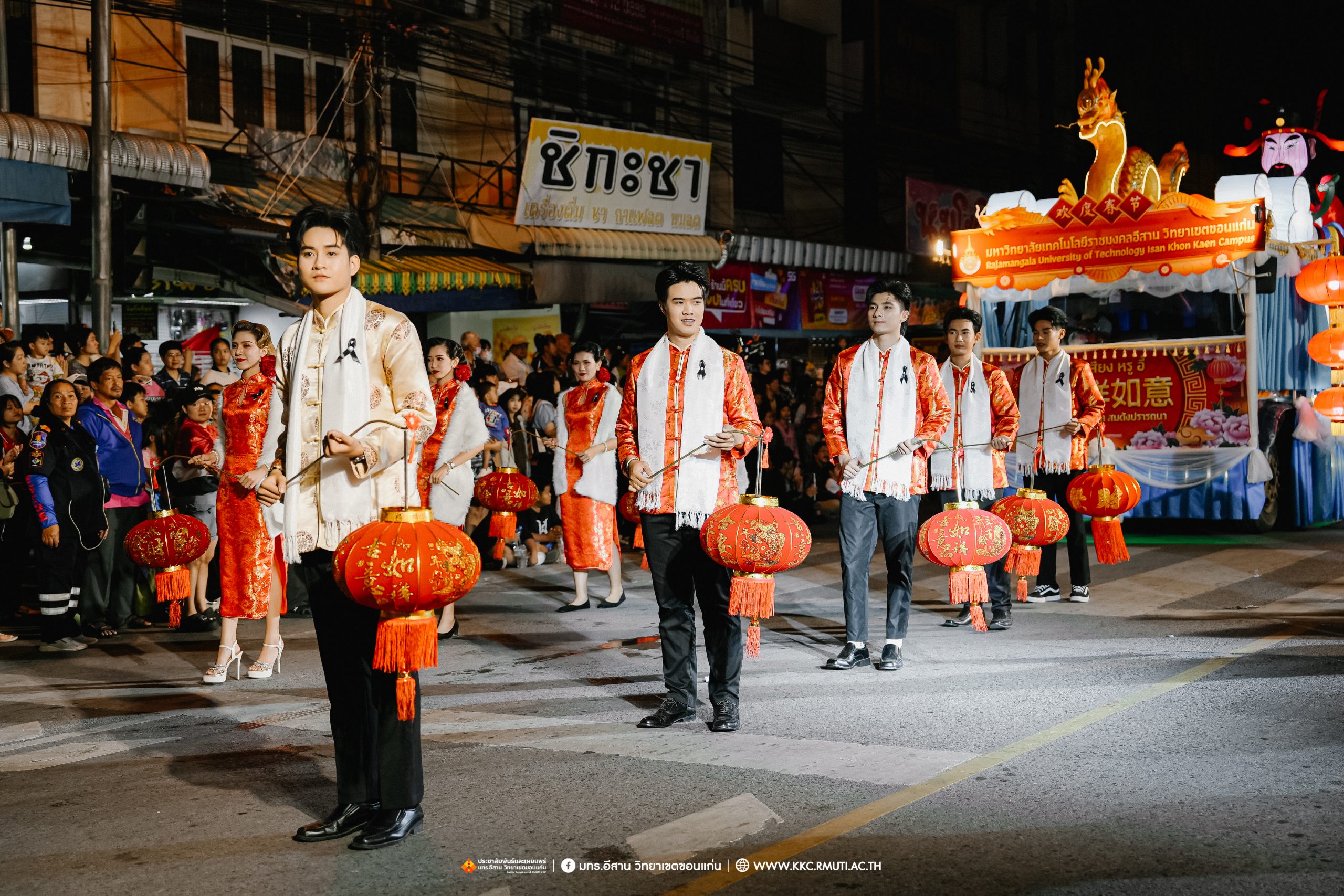 วันศุกร์ที่ 21 พฤศจิกายน พ.ศ. 2568 เวลา 18.00 น. มหาวิทยาลัยเทคโนโลยีราชมงคลอีสาน วิทยาเขตขอนแก่น โดย ผศ.ประพันธ์ ยาวระ รองอธิการบดีประจำวิทยาเขตขอนแก่น พร้อมด้วย ผศ.ดร.นทยา กัมพลานนท์ ผู้ช่วยอธิการบดี ผศ.ดร.ศุภฤกษ์ ชามงคลประดิษฐ์ คณบดีคณะวิศวกรรมศาสตร์ อาจารย์ฐิติพร จันทร์ดา รองคณบดีฝ่ายพัฒนานักศึกษา คณะครุศาสตร์อุตสาหกรรม นางสาวคนึงนิจ กลิ่นขจร ผู้อำนวยการสำนักงานวิทยาเขตขอนแก่น นางสาวพิราวรรณ โสตรจ้ำ หัวหน้างานบริการการศึกษา นายวุฒิพงษ์ ลีโคตร หัวหน้าแผนกงานพัฒนานักศึกษาและเครือข่ายสัมพันธ์ สำนักงานวิทยาเขตขอนแก่น นำคณาจารย์ บุคลากรและนักศึกษาเข้าร่วม “ขบวนแห่โคมไฟเทพเจ้าแสงแห่งศรัทธา” งานสมโภชศาลเจ้าปึงเถ่ากงม่า Festival ไทย – จีน – อีสาน “งานงิ้วขอนแก่น 2568” โดยในปีนี้ มทร.อีสาน วิทยาเขตขอนแก่น นำนักศึกษาจากคณะครุศาสตร์อุตสาหกรรม คณะวิศวกรรมศาสตร์ คณะบริหารธุรกิจและเทคโนโลยีสารสนเทศ ร่วมขบวนภายใต้แนวคิด “จี๋เสียงหรูอี้ (吉祥如意)” นำเสนอความเป็นสิริมงคลสมดังปรารถนา