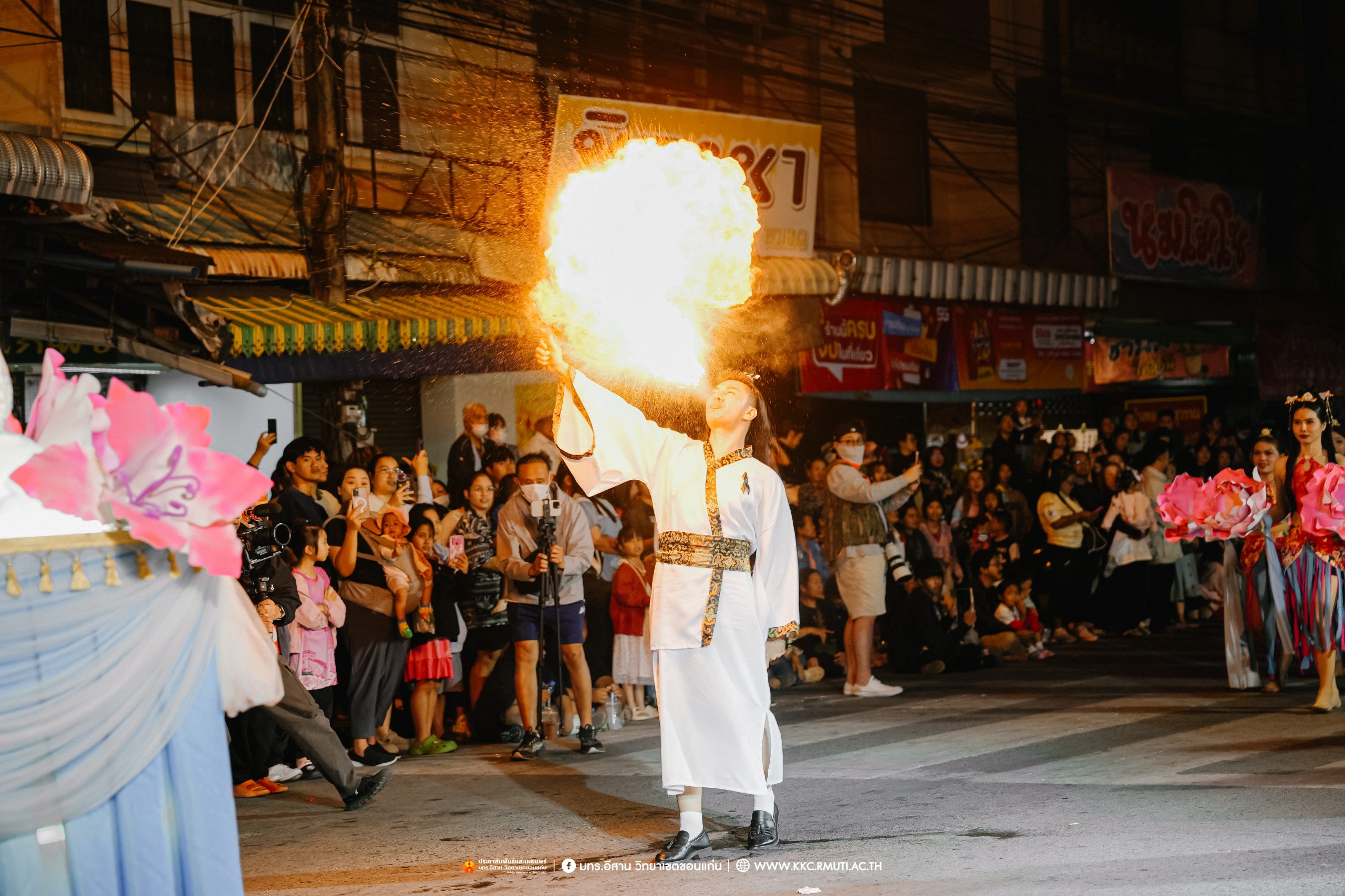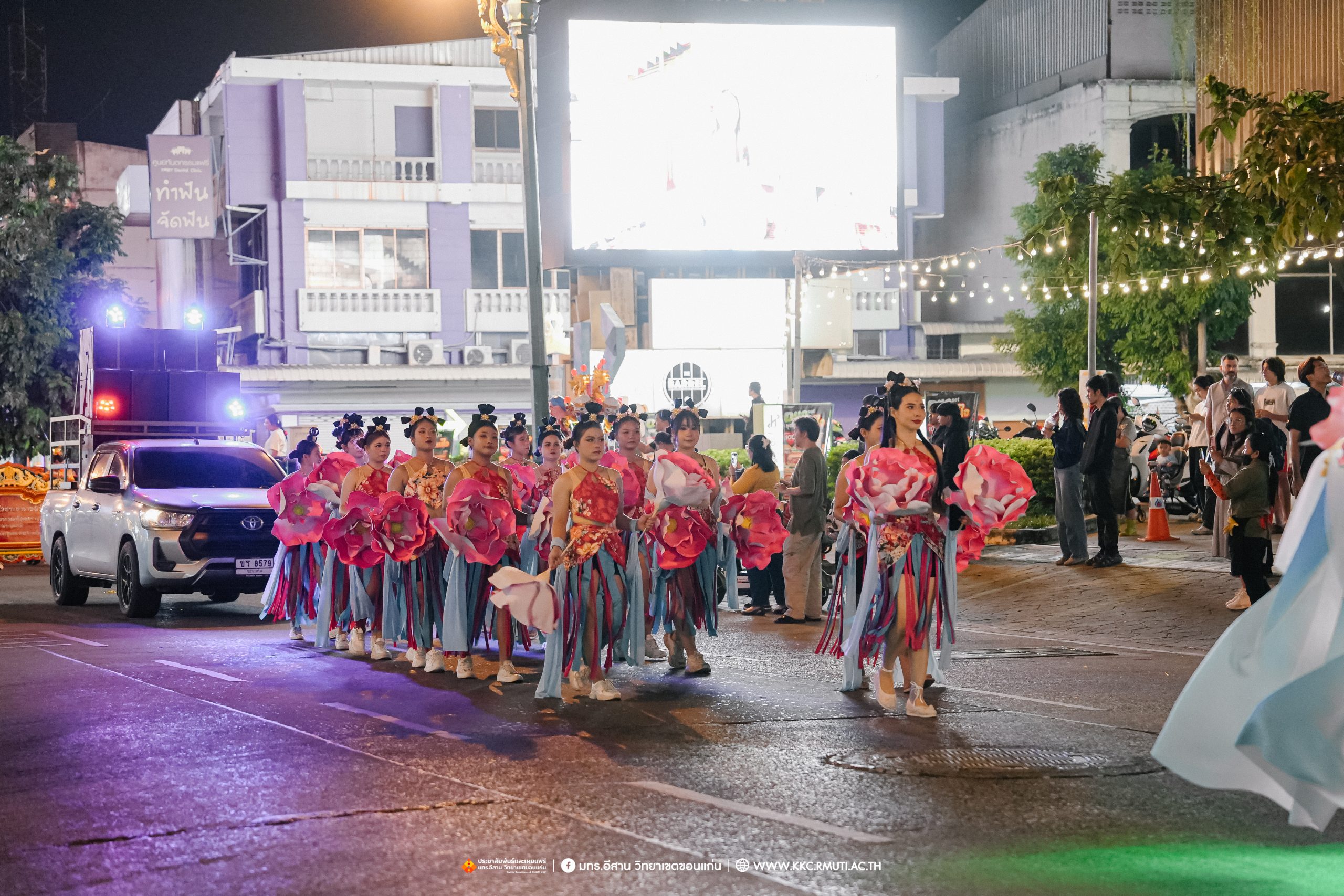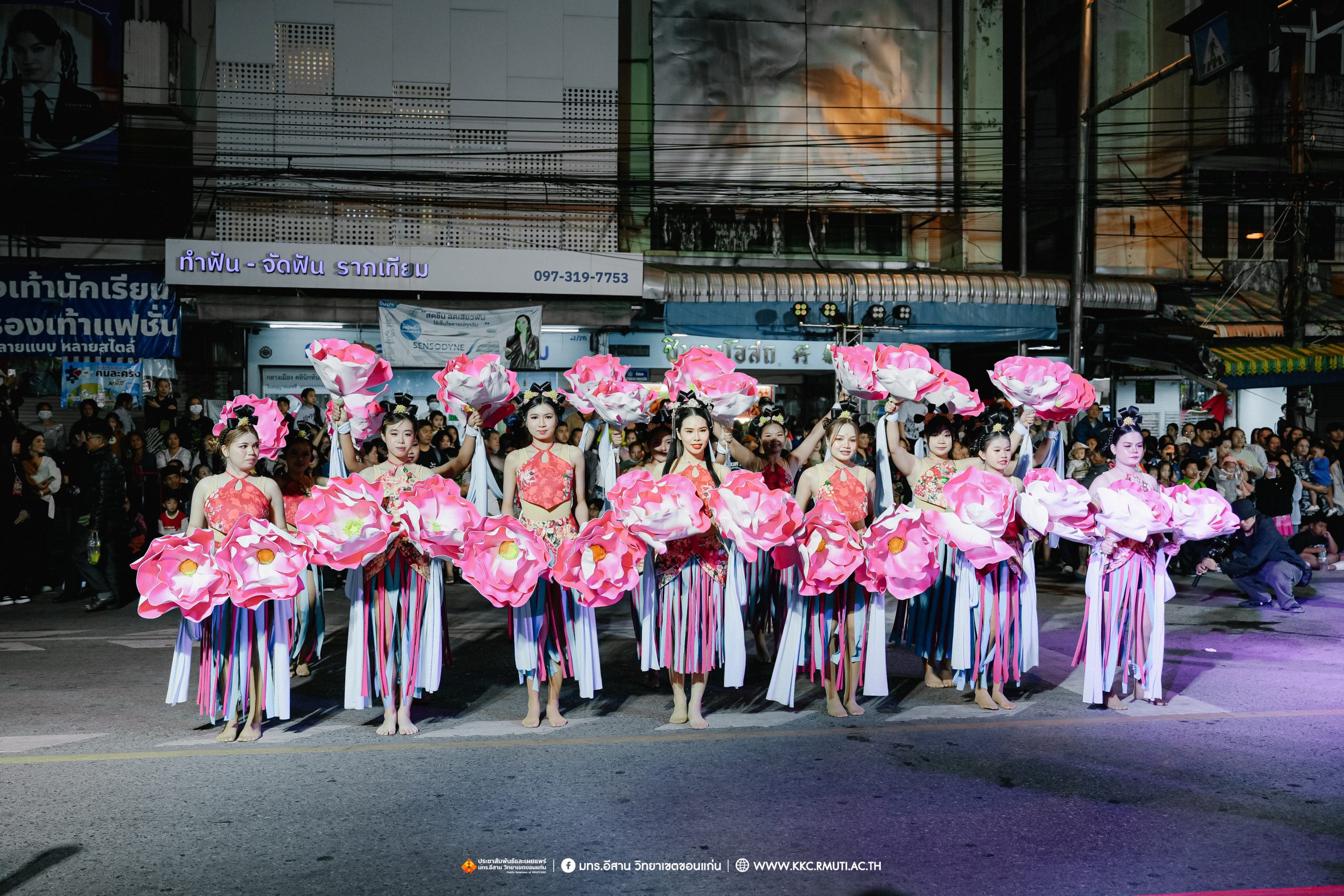 โอกาสนี้ มทร.อีสาน วิทยาเขตขอนแก่น โดย อาจารย์ ดร.กิตติ์ธนทัต สุพรรณ์ รองคณบดีฝ่ายพัฒนานักศึกษา คณะบริหารธุรกิจและเทคโนโลยีสารสนเทศ ผู้ควบคุมการแสดงและร่วมการแสดง ได้นำการแสดงระบำดอกโบตั๋น ที่มีความหมายเกี่ยวกับความมั่งคั่งร่ำรวยและโชคลาภ เกียรติยศและสถานะที่สูงส่ง ความรัก ความสุข และความบริสุทธิ์ ซึ่งเป็นการแสดงนาฏศิลป์จีนที่สื่อถึงความหมายอันเป็นมงคลและสะท้อนถึงวัฒนธรรมอันรุ่งเรืองของจีน โดยมักนำมาใช้เพื่อถ่ายทอดบรรยากาศและความสง่างามของระบำในราชสำนักสมัยโบราณ โดยเฉพาะในยุคราชวงศ์ถัง ซึ่งเป็นช่วงที่ดอกโบตั๋นได้รับความนิยมอย่างสูงและเป็นสัญลักษณ์ของความรุ่งเรืองของบ้านเมือง มานำเสนอแก่สายตาของชาวขอนแก่นด้วย เพื่อสื่อให้เห็นถึงการอวยพรแด่ชาวขอนแก่นทุกท่านให้คิดหวังสิ่งใด ขอให้สมดังปรารถนา ร่ำรวยเป็นเศรษฐี มีสมบัติก้อนโต