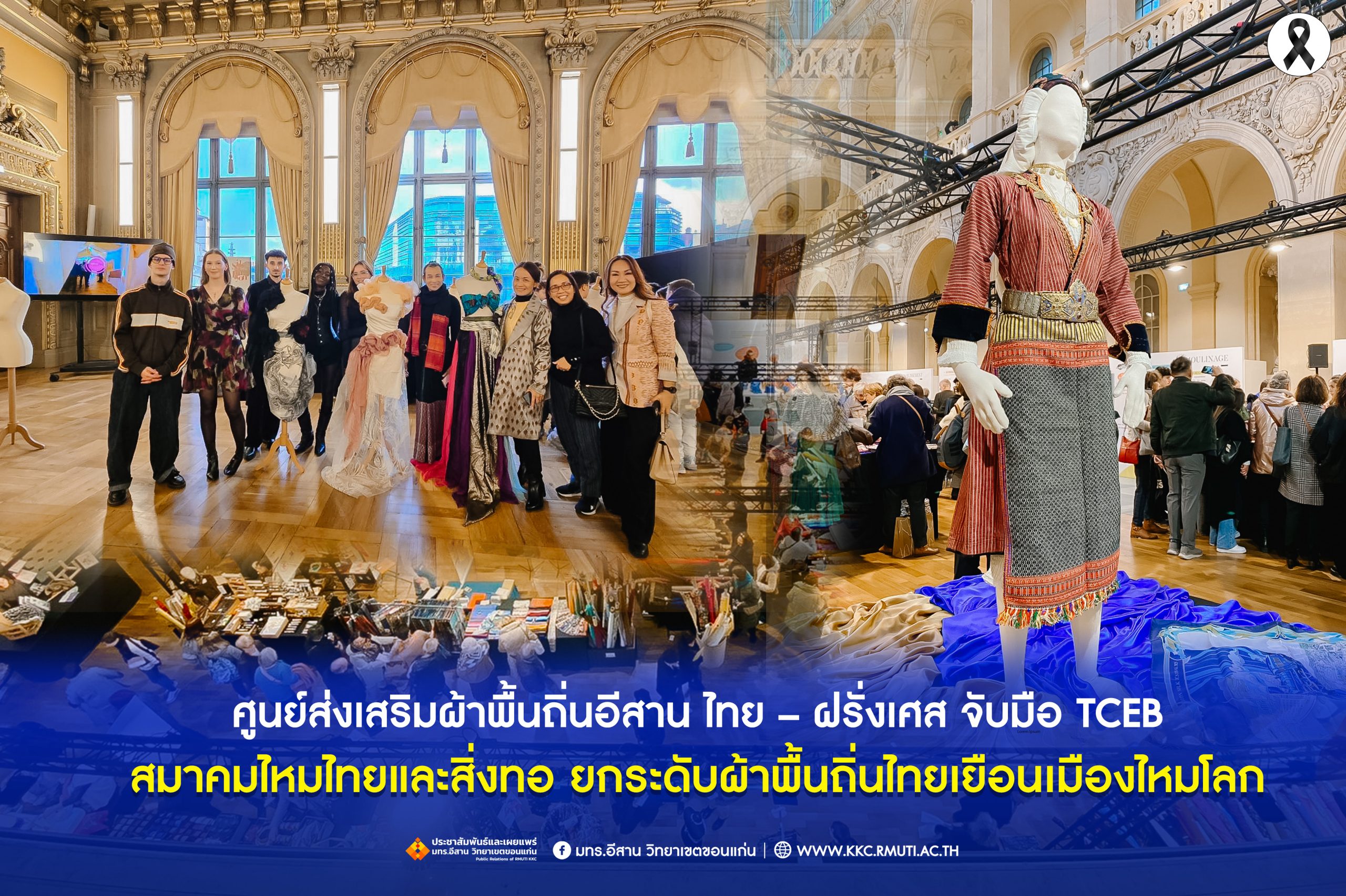 วันที่ 20 – 21 พฤศจิกายน 2568 คณะบริหารธุรกิจและเทคโนโลยีสารสนเทศ มหาวิทยาลัยเทคโนโลยีราชมงคลอีสาน วิทยาเขตขอนแก่น โดย อาจารย์ ดร.อารีรัตน์ เชื้อบุญเกิด โนท คณบดีคณะบริหารธุรกิจและเทคโนโลยีสารสนเทศ หัวหน้าศูนย์ส่งเสริมผ้าพื้นถิ่นอีสาน ไทย – ฝรั่งเศส และเลขานุการสมาคมไหมไทยและสิ่งทอขอนแก่น เข้าร่วมกิจกรรมการพัฒนาสินค้าและบริการของอุตสาหกรรมผ้าไหมและสิ่งทอและแสดงศักยภาพไมซ์ซิตี้ ผ่านการเข้าร่วมงาน Tradeshow Roadshow ภาคตะวันออกเฉียงเหนือ พร้อมเครือข่ายผู้ประกอบการสิ่งทอไทยกว่า 15 แบรนด์ จากอีสานและภูมิภาคต่าง ๆ เยือนเมืองไหมโลก ร่วมงาน Silk in Lyon 2025 ณ เมืองลิยง ประเทศฝรั่งเศส เพื่อเชื่อมโยงเครือข่ายทางการค้า เติมศักยภาพให้แข็งแกร่งมากขึ้นและหาโอกาสทางการตลาดต่างประเทศใหม่ ๆ ให้กับผลิตภัณฑ์ไหมและสิ่งทอไทย โดยมีสถาบันพัฒนาอุตสาหกรรมสิ่งทอ เข้าร่วมเดินทางในครั้งนี้
