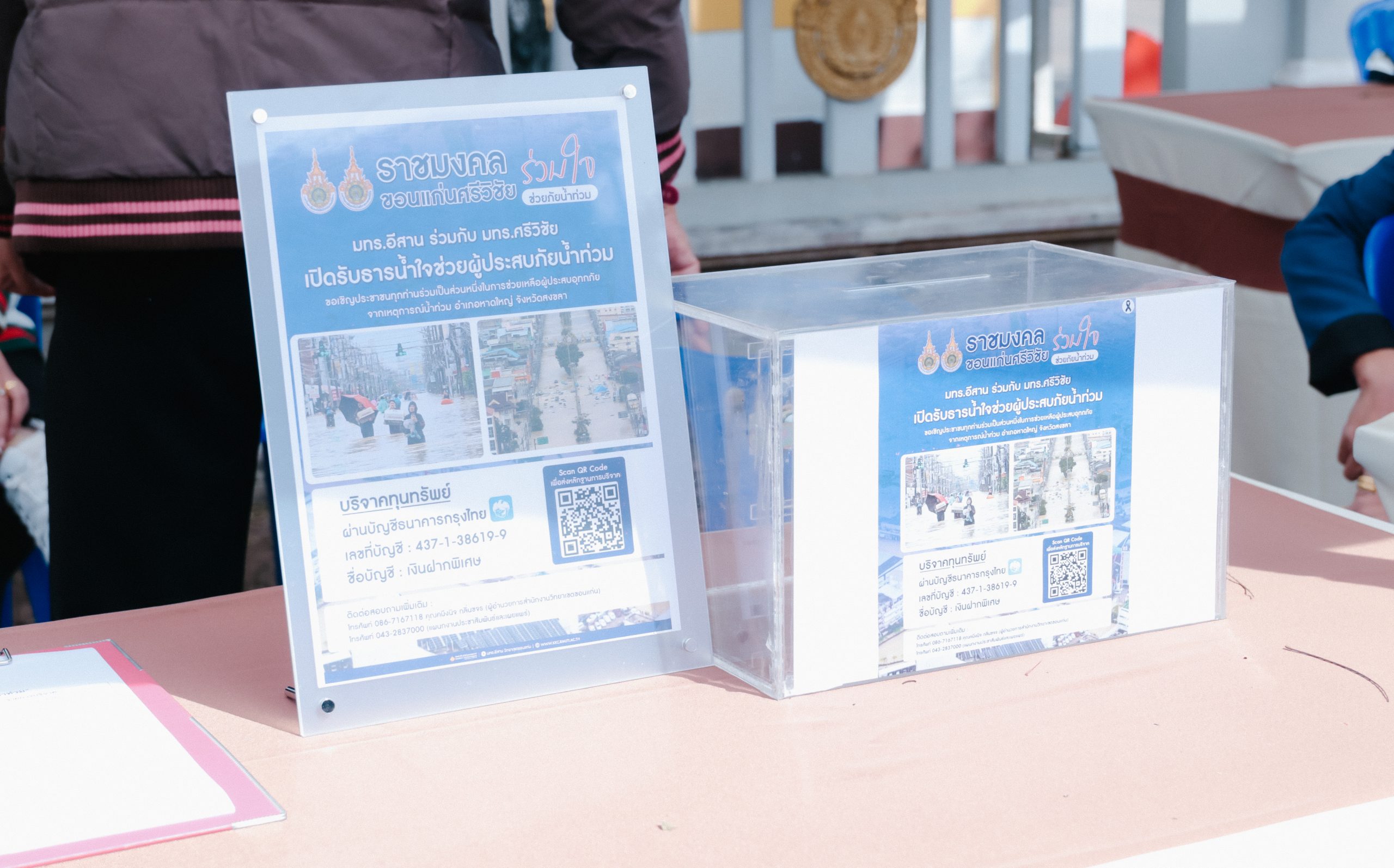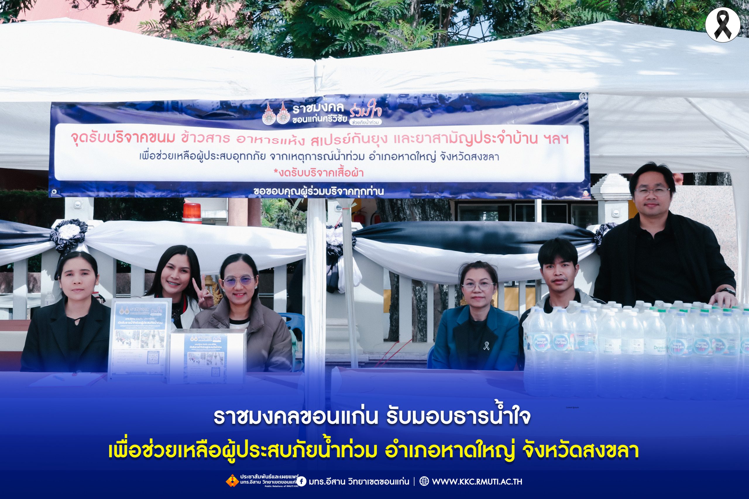 วันพฤหัสบดีที่ 27 พฤศจิกายน 2568 มหาวิทยาลัยเทคโนโลยีราชมงคลอีสาน วิทยาเขตขอนแก่น โดย ผศ.ประพันธ์ ยาวระ รองอธิการบดีประจำวิทยาเขตขอนแก่น พร้อมด้วยคณะผู้บริหาร คณาจารย์ บุคลากร นักศึกษา และ ศิษย์เก่า ร่วมจัดตั้งจุดรับบริจาค ข้าวสารอาหารแห้ง ขนม สิ่งของที่จำเป็นต่อการดำรงชีพ เพื่อช่วยเหลือพี่น้องประชาชนในพื้นที่ภาคใต้ที่ประสบภัยน้ำท่วม โดยเฉพาะ อำเภอหาดใหญ่ จังหวัดสงขลา โดยตั้งจุดรับบริจาคด้านหน้า มหาวิทยาลัย ฯ ฝั่งถนนศรีจันทร์ ได้รับน้ำใจจากบุคลากรส่วนงานภายใน วิทยาเขตจัดเวรลงประจำจุดเพื่อรอรับบริจาคอาหารและสิ่งของที่จำเป็นต่อการดำรงชีพ อาทิ น้ำดื่ม อาหารแห้ง ยารักษาโรค ยาสามัญประจำบ้าน ฯลฯ ตลอดจนเปิดรับบริจาคผ่านบัญชีธนาคารกรุงไทย ชื่อบัญชีเงินฝากพิเศษ เลขที่บัญชี 437-1-38619-9
