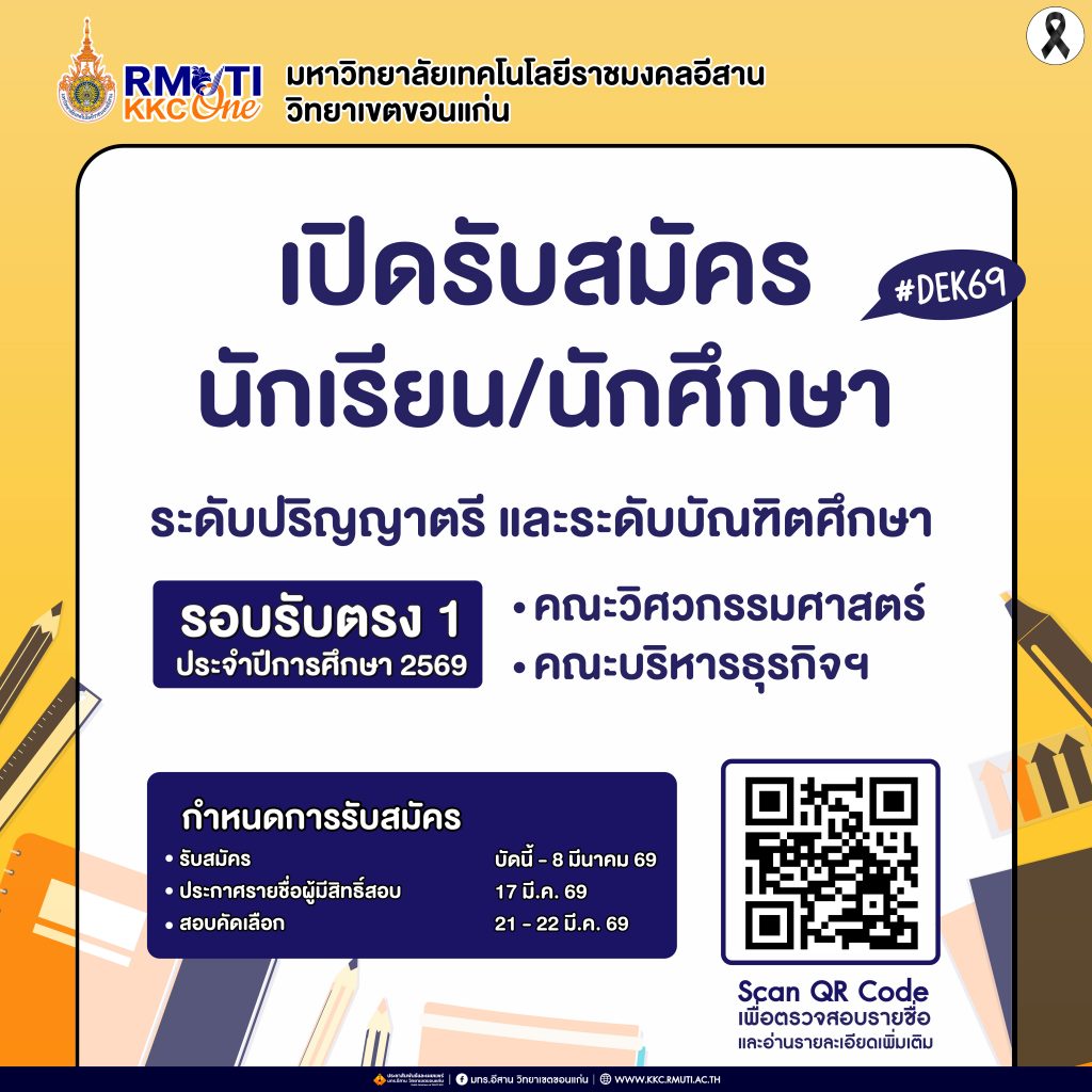รับสมัครนักเรียน/นักศึกษา ระดับปริญญาตรี และระดับบัณฑิตศึกษา คณะวิศวกรรมศาสตร และคณะบริหารธุรกิจและเทคโนโลยีสารสนเทศ (รอบรับตรง 1) ประจำปีการศึกษา 2569 ธันวาคม 2, 2025ธันวาคม 2, 2025ประชาสัมพันธ์ประชาสัมพันธ์, รับสมัครนักศึกษา Facebook iconFacebookTwitter iconTwitterLINE iconLine
