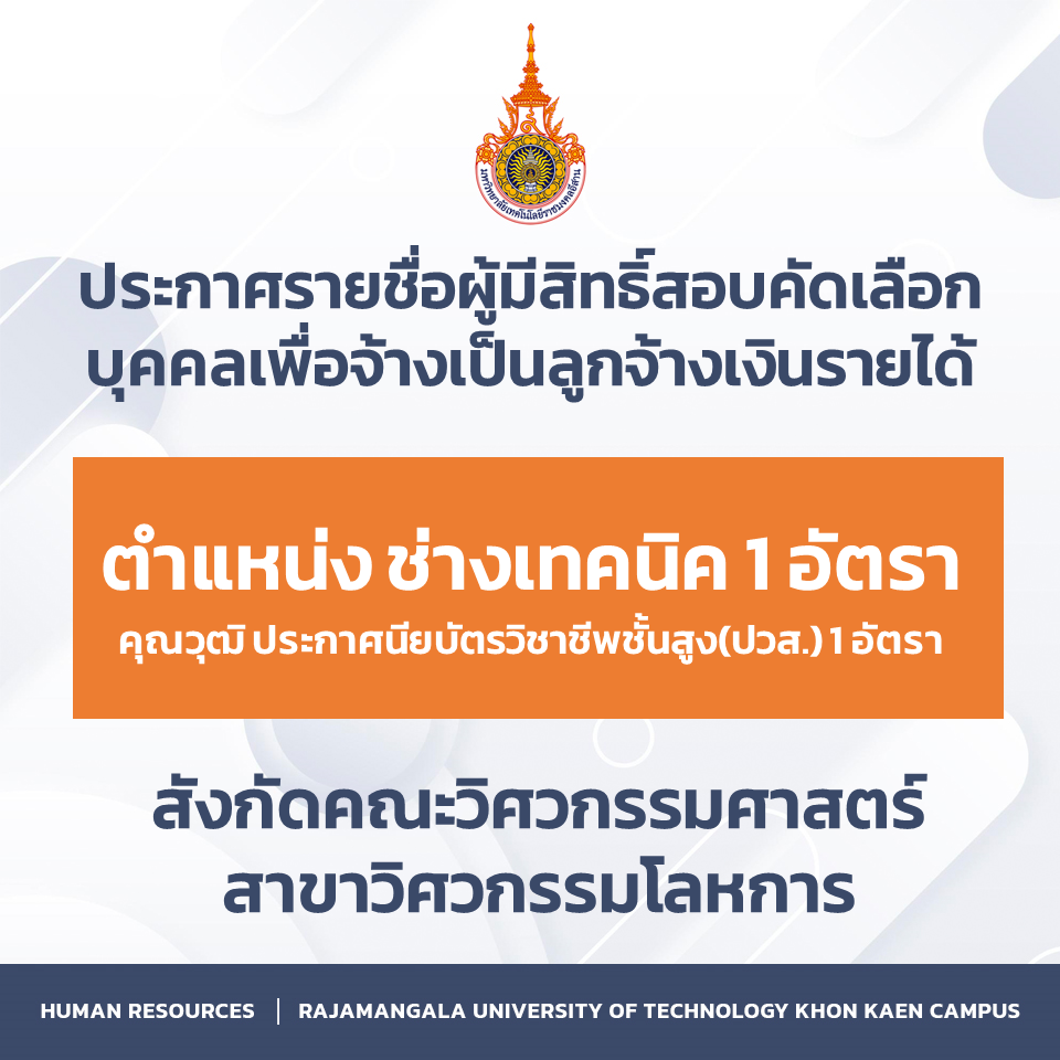 ประกาศรายชื่อผู้มีสิทธิ์สอบคัดเลือกบุคคลเพื่อจ้างเป็นลูกจ้างเงินรายได้ ตำแหน่ง ช่างเทคนิค จำนวน ๑ อัตรา คุณวุฒิ ประกาศนียบัตรวิชาชีพชั้นสูง(ปวส.) สังกัดคณะวิศวกรรมศาสตร์ สาขาวิศวกรรมโลหการ ธันวาคม 2, 2025ธันวาคม 2, 2025ประชาสัมพันธ์ประชาสัมพันธ์, รับสมัครงาน ประกาศรายชื่อผู้มีสิทธิ์สอบคัดเลือกบุคคลเพื่อจ้างเป็นลูกจ้างเงินรายได้ตำแหน่ง ช่างเทคนิค จำนวน ๑ อัตราคุณวุฒิ ประกาศนียบัตรวิชาชีพชั้นสูง(ปวส.)สังกัดคณะวิศวกรรมศาสตร์สาขาวิศวกรรมโลหการดาวน์โหลด Facebook iconFacebookTwitter iconTwitterLINE iconLine
