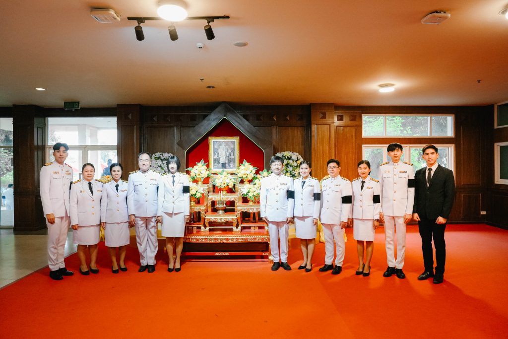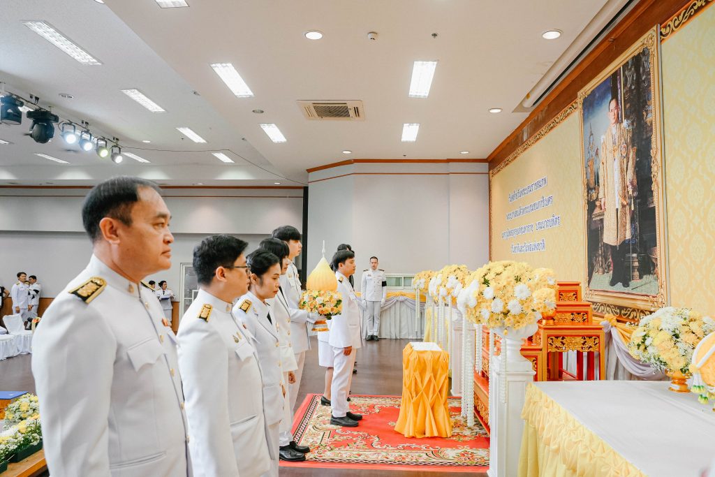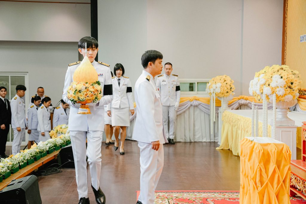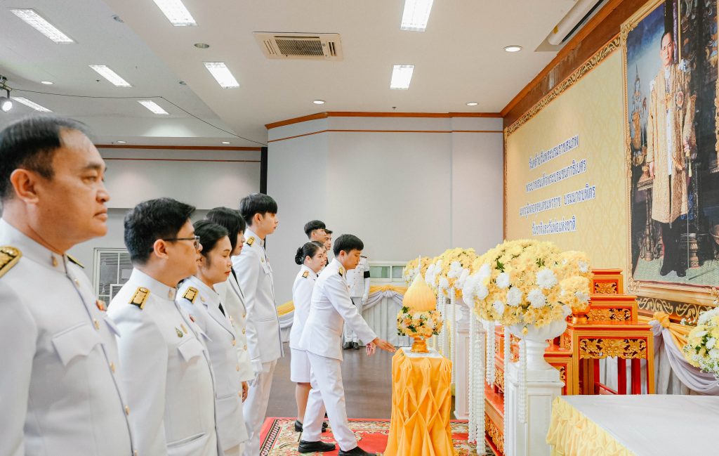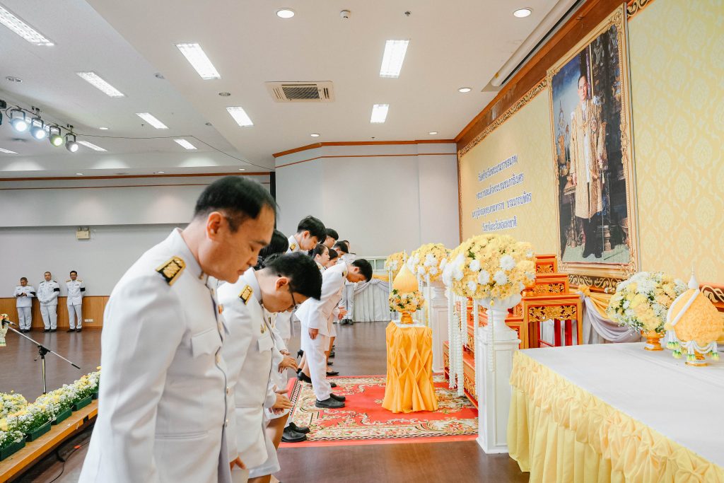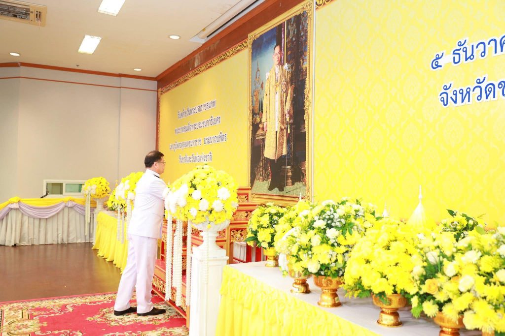 ทั้งนี้ ประธานในพิธี ได้วางพานพุ่มดอกไม้สด และกล่าวน้อมรำลึกในพระมหากรุณาธิคุณ และนำผู้เข้าร่วมพิธีถวายบังคมหน้าพระบรมฉายาลักษณ์ พระบาทสมเด็จพระบรมชนกาธิเบศร มหาภูมิพลอดุลยเดชมหาราช บรมนาถบพิตร เพื่อร้อยรวมดวงใจเป็นหนึ่ง แสดงความจงรักภักดีและน้อมรำลึกในพระมหากรุณาธิคุณอันหาที่สุดไม่ได้ โดยตลอดระยะเวลาที่ผ่านมาพสกนิกรชาวไทยต่างน้อมสำนึกในพระมหากรุณาธิคุณของพระบาทสมเด็จพระบรมชนกาธิเบศร มหาภูมิพลอดุลยเดชมหาราช บรมนาถบพิตร พระมหากษัตริย์ผู้ทรงพระคุณอันประเสริฐ และจดจารึกไว้ในดวงใจอย่างไม่เสื่อมคลาย 70 กว่าปีแห่งการครองราชย์ เป็นที่ประจักษ์ชัดแก่ปวงประชาว่า ทรงยึดมั่นในทศพิธราชธรรม ทรงอุทิศพระองค์ปฏิบัติบำเพ็ญพระราชกรณียกิจนานับประการ เพื่อทำนุบำรุงอาณาประชาราษฎร์ สร้างความผาสุกร่มเย็นให้แก่ชาติบ้านเมือง ทรงเป็นพ่อของแผ่นดินที่พระราชทานความรัก ความเอื้ออาทรห่วงใยแก่ราษฎรโดยถ้วนหน้า อันจะเห็นได้จากโครงการอันเนื่องมาจากพระราชดำริจำนวน 4,741 โครงการ ยังคงเจริญงอกงามผลิตดอกออกผลหล่อเลี้ยงทุกชีวิตทุกสรรพสิ่งบนผืนแผ่นดินไทย หลักในการดำเนินชีวิตทั้งปรัชญาของเศรษฐกิจพอเพียง พระบรมราโชวาท และพระราชดำรัส ที่พระราชทานในโอกาสต่าง ๆ ได้เป็นเครื่องยึดเหนี่ยวให้ทุกฝ่ายยึดปฏิบัติ ทั้งเป็นแนวทางสำคัญในการดำเนินชีวิตได้อย่างมั่นคง ก่อเกิดประโยชน์ความสมานฉันท์ นำมาซึ่งความเป็นปึกแผ่นของชาติไทยมาจนถึงปัจจุบัน