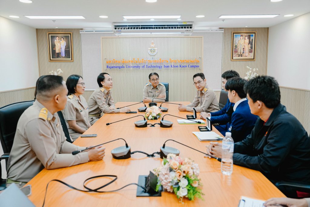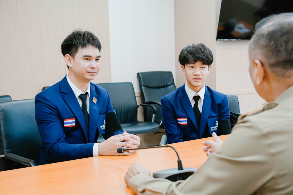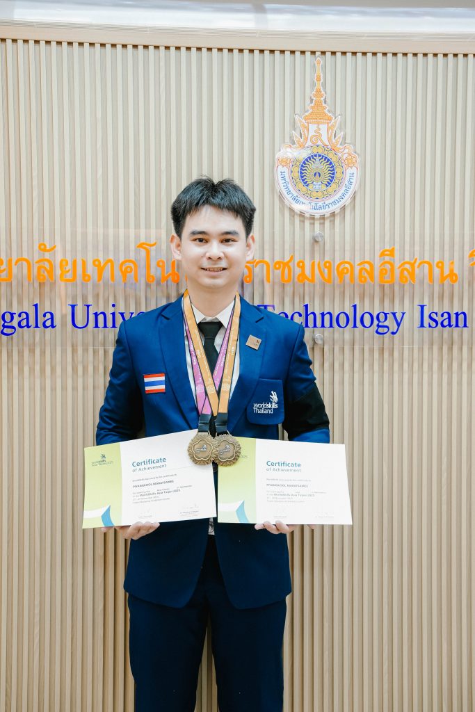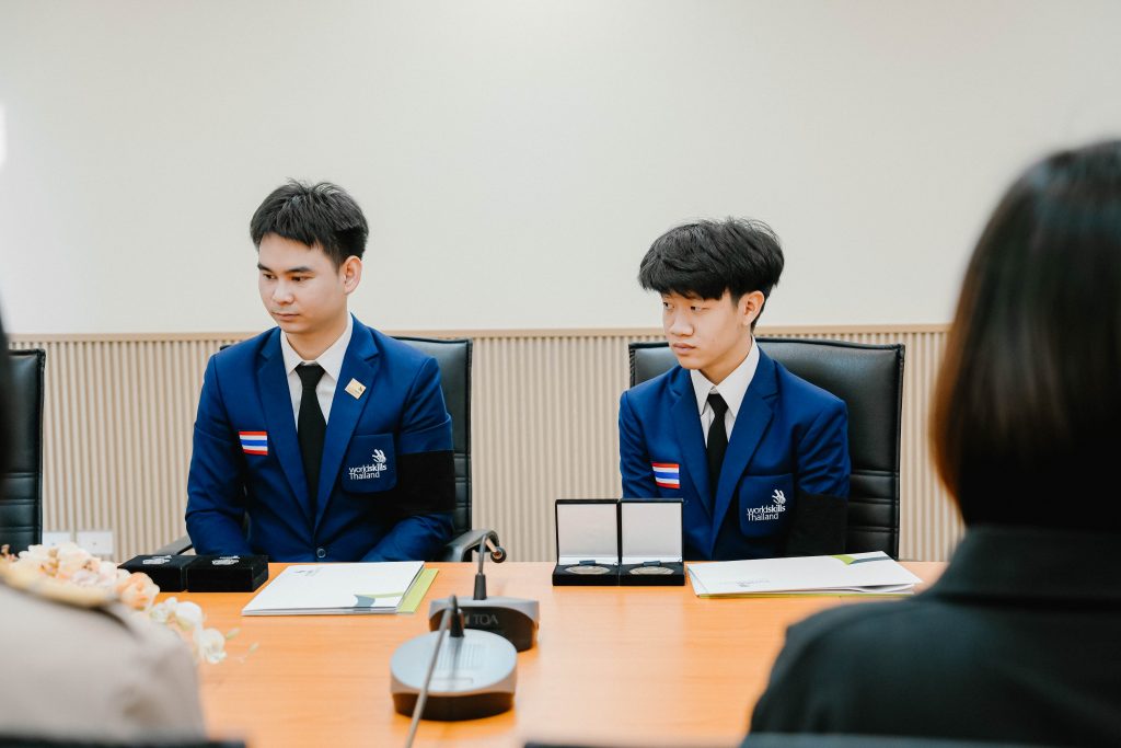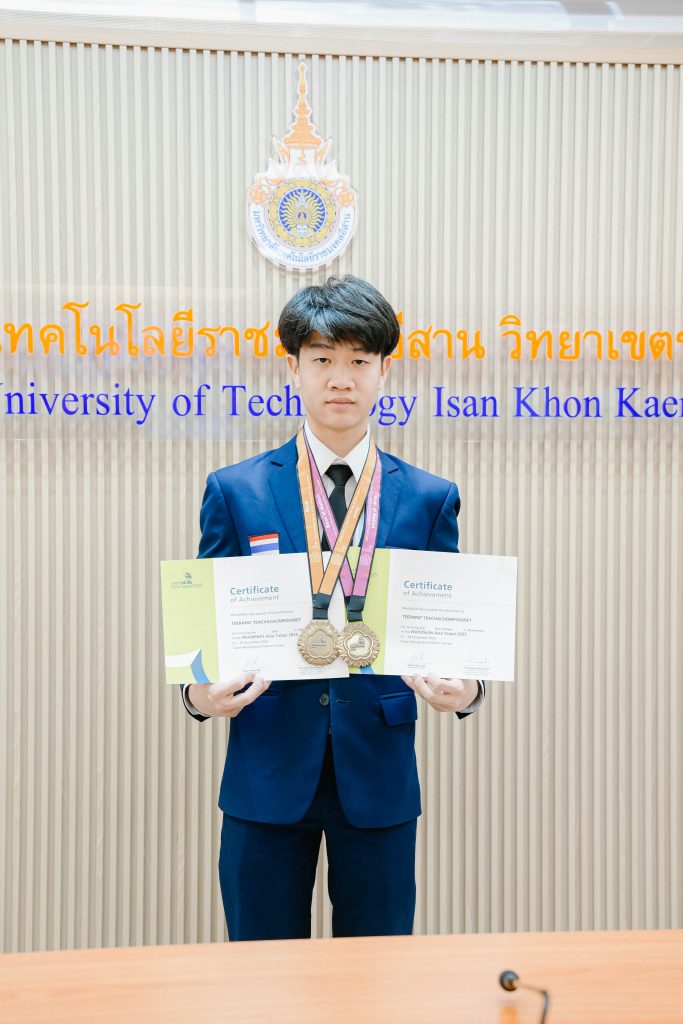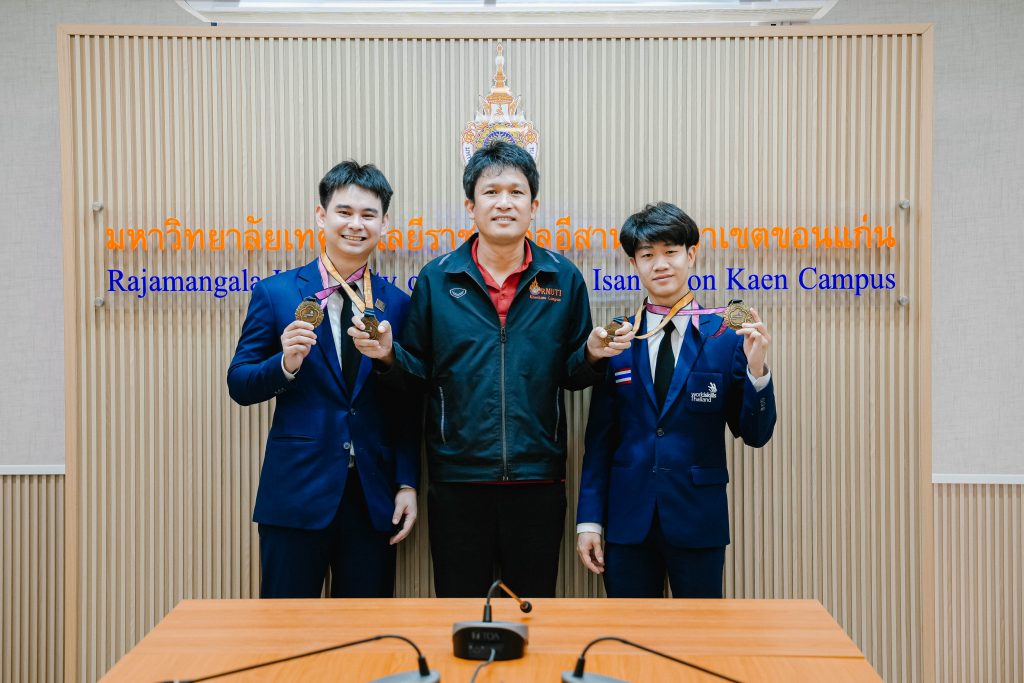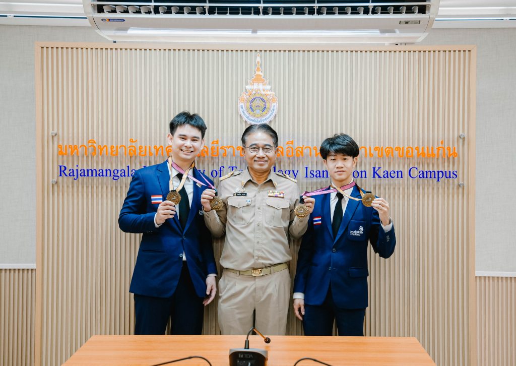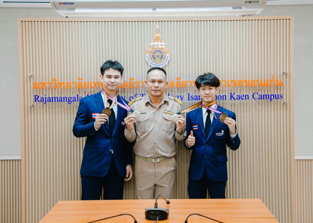 วันจันทร์ที่ 8 ธันวาคม พ.ศ. 2568 เวลา 09.30 น. ณ ห้องประชุมประดู่ 1 อาคารเฉลิมพระเกียรติ 72 พรรษา (อาคาร 19) มหาวิทยาลัยเทคโนโลยีราชมงคลอีสาน วิทยาเขตขอนแก่น โดย ผศ.ประพันธ์ ยาวระ รองอธิการบดีประจำวิทยาเขตขอนแก่น พร้อมด้วย อาจารย์บุญกิจ อุ่นพิกุล ผู้ช่วยอธิการบดี ผศ.ดร.นทยา กัมพลานนท์ ผู้ช่วยอธิการบดี ผศ.ดร.ศุภฤกษ์ ชามงคลประดิษฐ์ คณบดีคณะวิศวกรรมศาสตร์ ผศ.ดร.วิรัช ชินพลอย คณบดีคณะครุศาสตร์อุตสาหกรรม ผศ.ดร.วนิตา บุญโฉม รองคณบดีฝ่ายแผนและประกันคุณภาพการศึกษา คณบดีคณะบริหารธุรกิจและเทคโนโลยีสารสนเทศ ให้การต้อนรับ นายยอดเมือง ศิริประธาน ผู้อำนวยการสถาบันพัฒนาฝีมือแรงงาน 6 ขอนแก่น พร้อมด้วย นายจรินทร์ พรมสวัสดิ์ ผู้อำนวยการกลุ่มงานมาตรฐานฝีมือแรงงานและรับรองความรู้ความสามารถ สถาบันพัฒนาฝีมือแรงงาน ในโอกาสมอบช่อดอกไม้เพื่อร่วมแสดงความยินดีในความสำเร็จของ นายธีรภัทร เตชะชมภูเวทย์ นายปิยังกูร มารัศมี ผู้ชนะการแข่งขันและได้รับเหรียญทอง สาขาเมคคาทรอนิกส์ (ประเภททีม) และเหรียญ Best Of Nation ระดับเอเชีย จากการแข่งขันฝีมือเเรงงานเอเชีย ครั้งที่ 3 (WorldSkills Asia Taipei 2025) ระหว่างวันที่ 25 พฤศจิกายน – 1 ธันวาคม 2568 ณ ศูนย์นิทรรศการไทเปหนานกัง (TaiNEX) (Taipei Nangang Exhibition Center) เขตหนานกัง ไทเป ไต้หวัน ที่ผ่านมา โดยทีมเยาวชนสาขาเมคคาทรอนิกส์ เป็นนักศึกษาสาขาวิชาเมคคาทรอนิกส์ คณะวิศวกรรมศาสตร์ ภายใต้การดูแลของ อาจารย์ ดร.ปรมัตถ์ จันทรโคตร อาจารย์ประจำสาขาวิศวกรรมเมคคาทรอนิกส์ คณะวิศวกรรมศาสตร์ อาจารย์ที่ปรึกษา ดร.ไพศาล สุราสา นักวิชาการพัฒนาฝีมือแรงงานชำนาญการพิเศษสถาบันฝีมือแรงงาน 6 ขอนแก่น นายอภิสิทธิ์ ชัยโชติ ผู้ควบคุมทีม และนายนครินทร์ ศรีจันทร์ ผู้ฝึกซ้อม