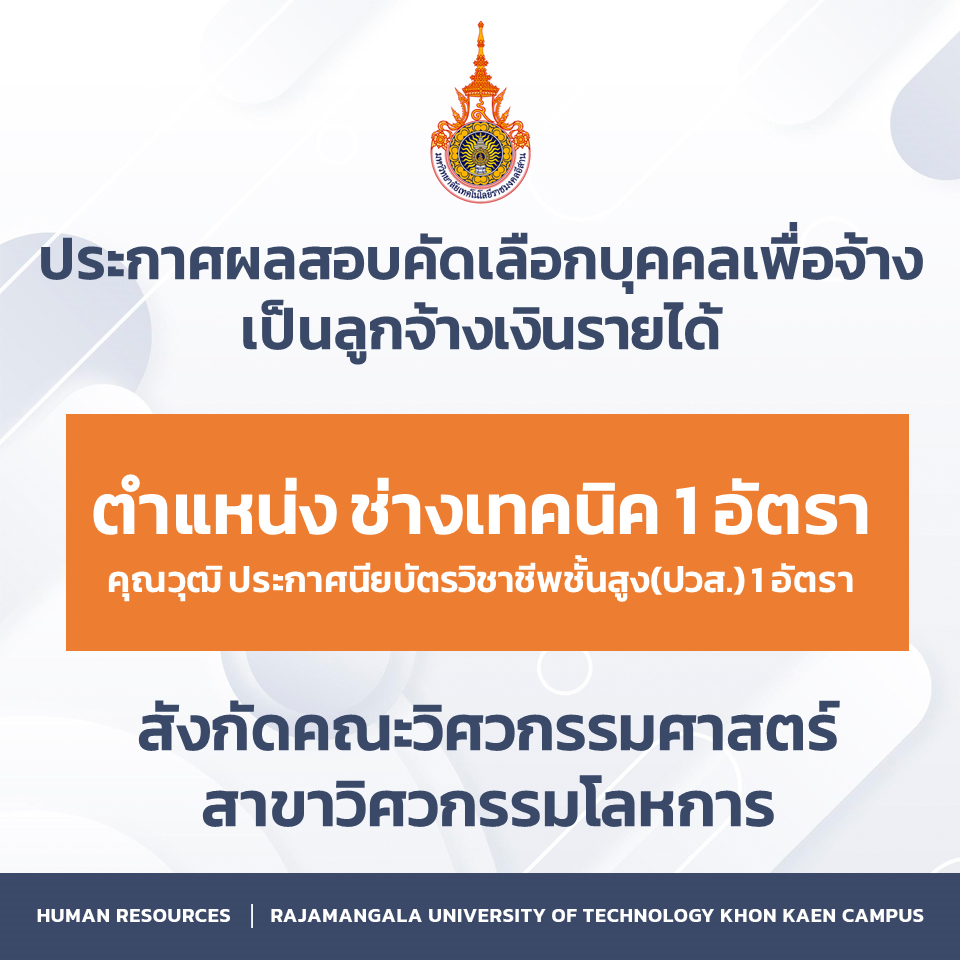 ประกาศผลสอบคัดเลือกบุคคลเพื่อจ้างเป็นลูกจ้างเงินรายได้ ตำแหน่ง ช่างเทคนิค จำนวน ๑ อัตรา คุณวุฒิ ประกาศนียบัตรวิชาชีพชั้นสูง(ปวส.) สังกัดคณะวิศวกรรมศาสตร์สาขาวิศวกรรมโลหการ ธันวาคม 10, 2025ประชาสัมพันธ์ประชาสัมพันธ์, รับสมัครงาน ประกาศผลสอบคัดเลือกบุคคลเพื่อจ้างเป็นลูกจ้างเงินรายได้ตำแหน่ง ช่างเทคนิค จำนวน ๑ อัตราคุณวุฒิ ประกาศนียบัตรวิชาชีพชั้นสูง(ปวส.)สังกัดคณะวิศวกรรมศาสตร์สาขาวิศวกรรมโลหการดาวน์โหลด Facebook iconFacebookTwitter iconTwitterLINE iconLine