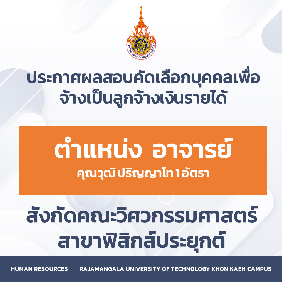 ประกาศผลสอบคัดเลือกบุคคลเพื่อจ้างเป็นลูกจ้างเงินรายได้ ตำแหน่ง อาจารย์ จำนวน ๑ อัตรา คุณวุฒิ ปริญญาโท สังกัดคณะวิศวกรรมศาสตร์ สาขาฟิสิกส์ประยุกต์ ธันวาคม 10, 2025ประชาสัมพันธ์ประชาสัมพันธ์, รับสมัครงาน ประกาศผลสอบคัดเลือกบุคคลเพื่อจ้างเป็นลูกจ้างเงินรายได้ตำแหน่ง อาจารย์ จำนวน ๑ อัตราคุณวุฒิ ปริญญาโทสังกัดคณะวิศวกรรมศาสตร์สาขาฟิสิกส์ประยุกต์ดาวน์โหลด Facebook iconFacebookTwitter iconTwitterLINE iconLine