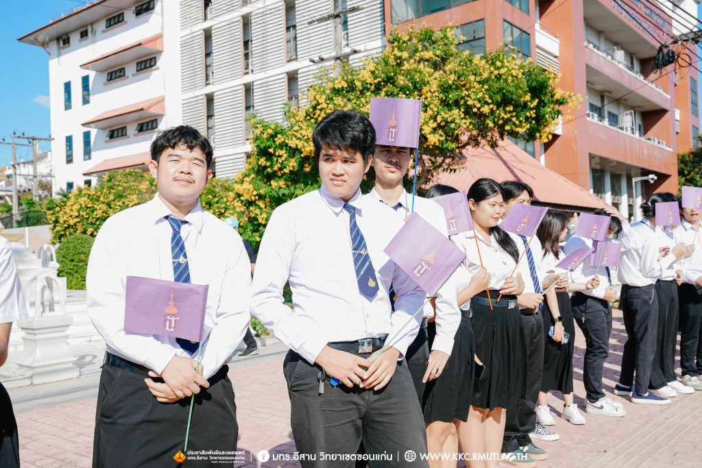 วันพฤหัสบดีที่ 18 ธันวาคม 2568 เวลา 15.30 น. มหาวิทยาลัยเทคโนโลยีราชมงคลอีสาน วิทยาเขตขอนแก่น โดย ผศ.ประพันธ์ ยาวระ รองอธิการบดีประจำวิทยาเขตขอนแก่น พร้อมด้วยอาจารย์บุญกิจ อุ่นพิกุล ผู้ช่วยอธิการบดี ผศ.ดร.ศุภฤกษ์ ชามงคลประดิษฐ์ คณบดีคณะวิศวกรรมศาสตร์ นางสาวคนึงนิจ กลิ่นขจร ผู้อำนวยการสำนักงานวิทยาเขตขอนแก่น ผู้บริหาร คณาจารย์ บุคลากร และนักศึกษามหาวิทยาลัยเทคโนโลยีราชมงคลอีสาน วิทยาเขตขอนแก่น พร้อมใจเฝ้ารับเสด็จฯ สมเด็จพระกนิษฐาธิราชเจ้า กรมสมเด็จพระเทพรัตนราชสุดาฯ สยามบรมราชกุมารี กว่า 100 คน เพื่อร่วมชื่นชมพระบารมี เนื่องในโอกาสเสด็จพระราชดำเนินแทนพระองค์ พระบาทสมเด็จพระเจ้าอยู่หัว ในพิธีพระราชทานปริญญาบัตร แก่ผู้สำเร็จการศึกษาจากมหาวิทยาลัยขอนแก่น ประจำปี 2568 ณ บริเวณถนนศรีจันทร์ ด้านหน้ามหาวิทยาลัยเทคโนโลยีราชมงคลอีสาน วิทยาเขตขอนแก่น