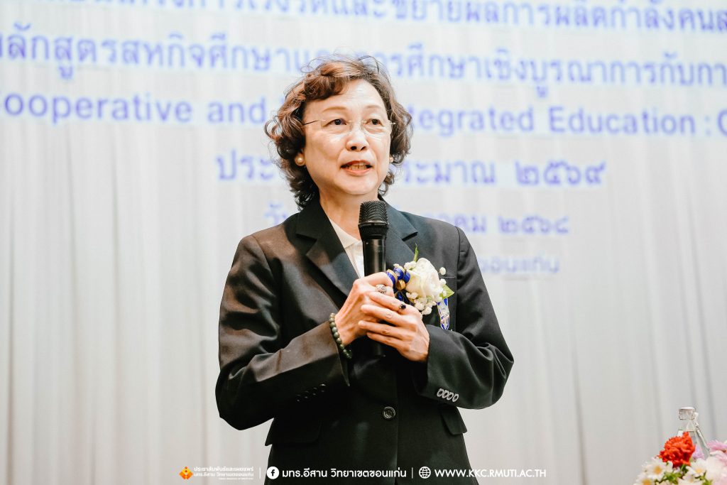 ช่วงบ่ายเป็นการชี้แจงโครงการเร่งรัดและขยายผลการผลิตกำลังคนสมรรถนะสูง โดยหลักสูตรสหกิจศึกษาและการศึกษาเชิงบูรณาการกับการทำงาน (Cooperative and Work Integrated Education : CWIE) ประจำปีงบประมาณ 2569 เพื่ออธิบายแนวทางสมัครเข้าร่วมโครงการเร่งรัดและขยายผลฯ โดย นายสมบัติ รุ่งรัศมี และกิจกรรมกลุ่มเชิงปฏิบัติการ “แนวทางการจัดทำข้อเสนอโครงการและแผนงาน CWIE” ดำเนินโดยคณะพี่เลี้ยงจากมหาวิทยาลัยต่าง ๆ ประกอบด้วย ดร.วันเกษม สัตยานุชิต หัวหน้าสาขาวิชาการจัดการโลจิสติกส์และโซ่อถปทาน คณะบริหารธุรกิจ มหาวิทยาลัยวงษ์ชวลิตกุล อาจารย์ภาณุวัฒน์ เรืองกุลทรัพย์ ผู้อำนวยการศูนย์สหกิจศึกษาและพัฒนาอาชีพ มหาวิทยาลัยภาคตะวันออกเฉียงเหนือ และ ผศ.ดร.อังคณา เจริญมี อาจารย์ประจำสาขาวิชาวิศวกรรมอิเล็กทรอนิกส์และโทรคมนาคม คณะวิศวกรรมศาสร์ มทร.อีสาน วิทยาเขตขอนแก่น เพื่อให้ผู้เข้าร่วมสามารถนำไปประยุกต์ใช้จัดทำข้อเสนอโครงการในสถาบันของตนได้อย่างมีประสิทธิภาพ