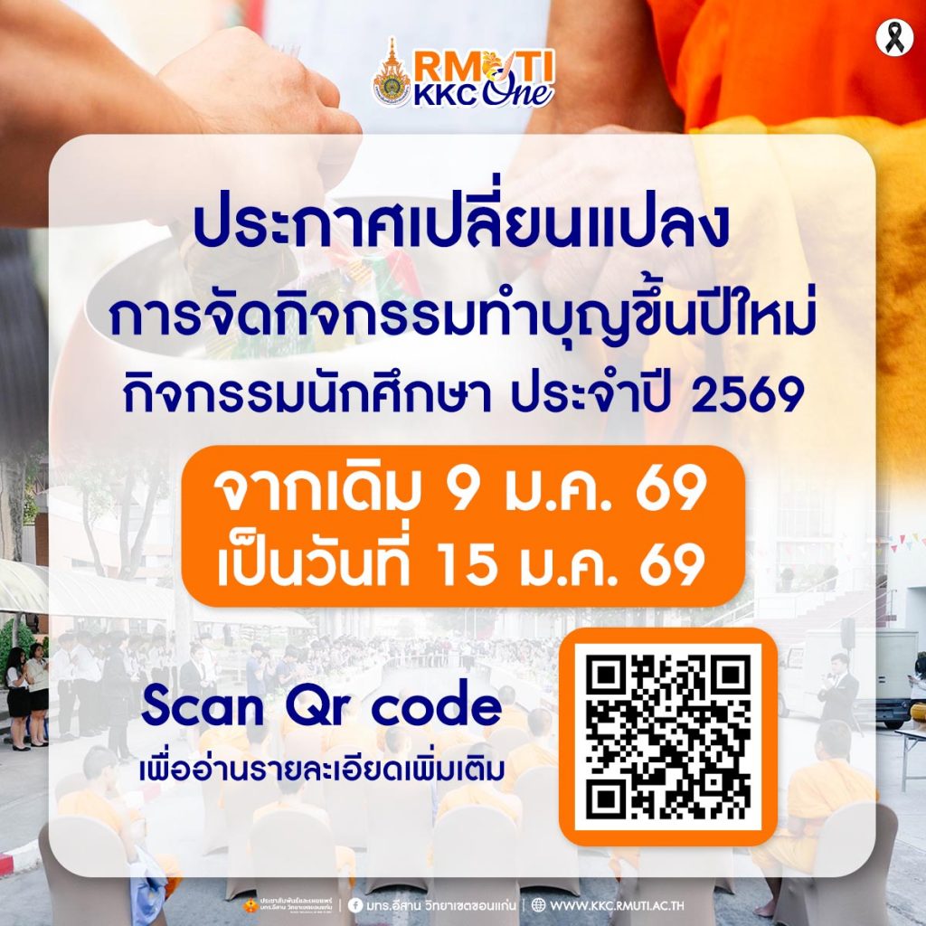 ประกาศเปลี่ยนแปลงการจัดกิจกรรมทำบุญขึ้นปีใหม่กิจกรรมนักศึกษา ประจำปี 2569 มกราคม 6, 2026มกราคม 6, 2026ประชาสัมพันธ์ไม่มีหมวดหมู่ Facebook iconFacebookTwitter iconTwitterLINE iconLine