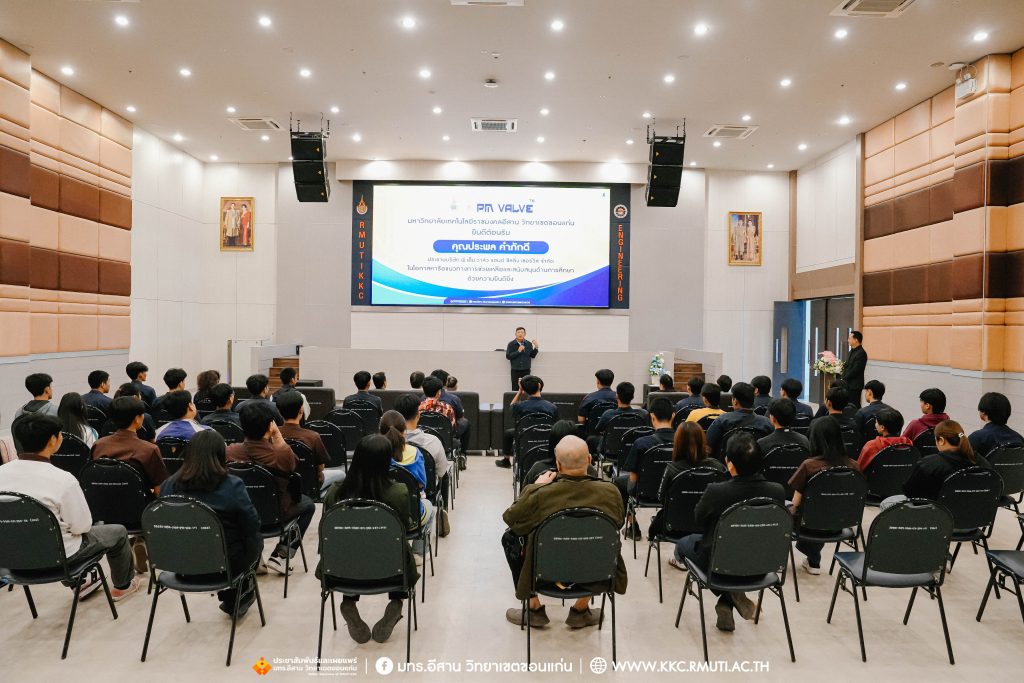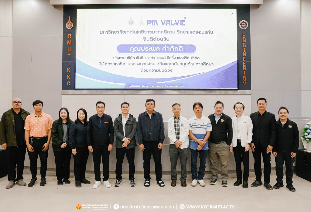 วันพฤหัสบดีที่ 8 มกราคม พ.ศ. 2569 เวลา 13.00 น. มหาวิทยาลัยเทคโนโลยีราชมงคลอีสาน วิทยาเขตขอนแก่น จัดการประชุม ร่วมกับ บริษัท พี.เอ็ม.วาล์ว แอนด์ ซีลลิ่ง เซอร์วิส จำกัด เพื่อหารือแนวทางการช่วยเหลือและสนับสนุนด้านการศึกษา พร้อมทั้งถ่ายทอดแรงบันดาลใจในการทำธุรกิจ ประสบการณ์ แนวทางในการทำงาน และยกตัวอย่างการทำงานซ่อมบำรุงวาล์วใต้ท้องทะเล เพื่อแก้ไขปัญหาน้ำมันรั่วของโรงกลั่นคาลเท็กซ์ ที่เป็นส่วนหนึ่งของเชฟรอน ซึ่งมีธุรกิจโรงกลั่นที่ใหญ่และครอบคลุมในเอเชียแรงบันดาลใจในการทำธุรกิจ และเปิดโอกาสให้นักศึกษาได้สอบถามแนวทางการทำงานในบริษัทชั้นนำ ในการนี้ ผศ.ประพันธ์ ยาวระ รองอธิการบดีประจำวิทยาเขตขอนแก่น มอบหมายให้ อาจารย์บุญกิจ อุ่นพิกุล ผู้ช่วยอธิการบดี พร้อมด้วย ผศ.ดร.ศุภฤกษ์ ชามงคลประดิษฐ์ คณบดีคณะวิศวกรรมศาสตร์ เป็นตัวแทนของคณะและมหาวิทยาลัยฯ ในการเข้าร่วมหารือ กับคุณประพล คำภักดี ประธานบริษัท พี.เอ็ม.วาล์ว แอนด์ ซีลลิ่ง เซอร์วิส จำกัด โดยมี คุณกิตติพร บุญพูน ประธานชมรมศิษย์เก่าเทคโนฯ ไทย – เยอรมัน ขอนแก่น (ส่วนกลาง) ศิษย์เก่าช่างกลโรงงาน MM รุ่น 30 ร่วมถ่ายทอดประสบการณ์ให้แก่นักศึกษาสาขาวิชาช่างกลโรงงาน อส.บ.เทคโนโลยีการผลิตชิ้นส่วนยานยนต์ และ วศบ.วิศวกรรมอุตสาหการ กว่า 50 คน ณ ห้องประชุมมงคลประดู่ อาคาร 50 เทคนิค ไทย – เยอรมัน ขอนแก่น