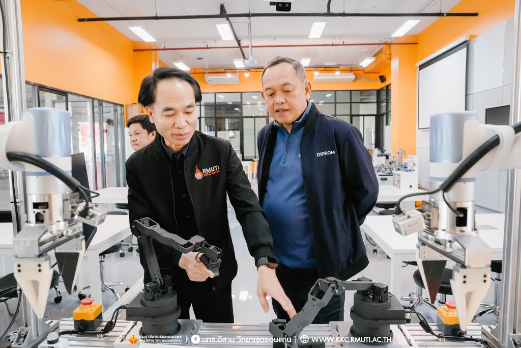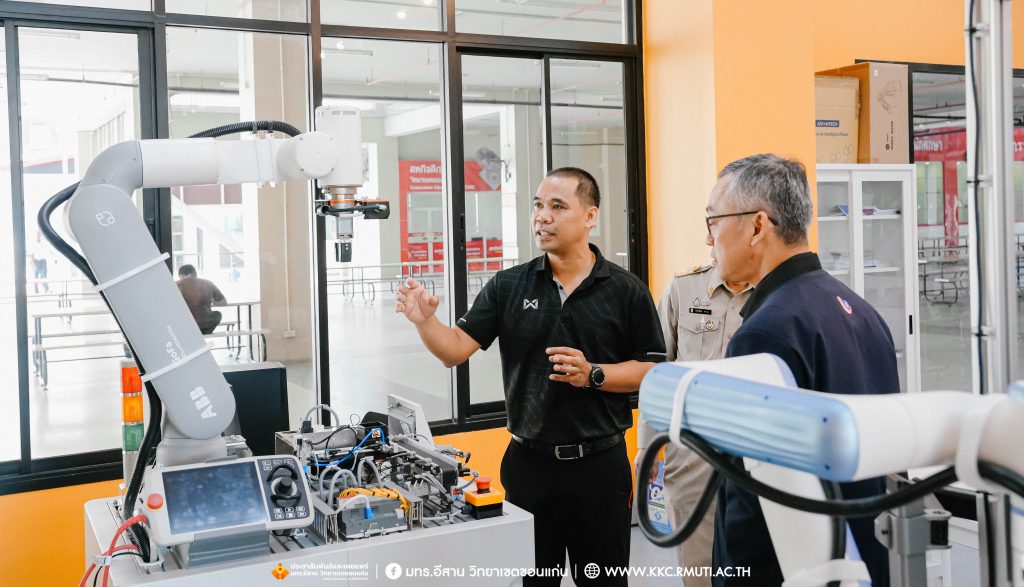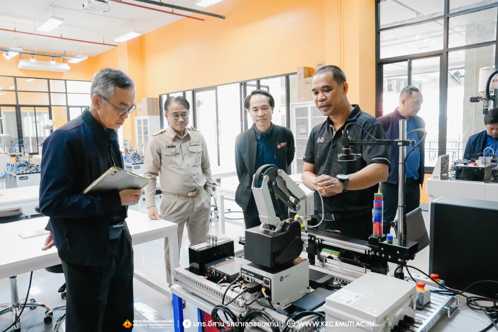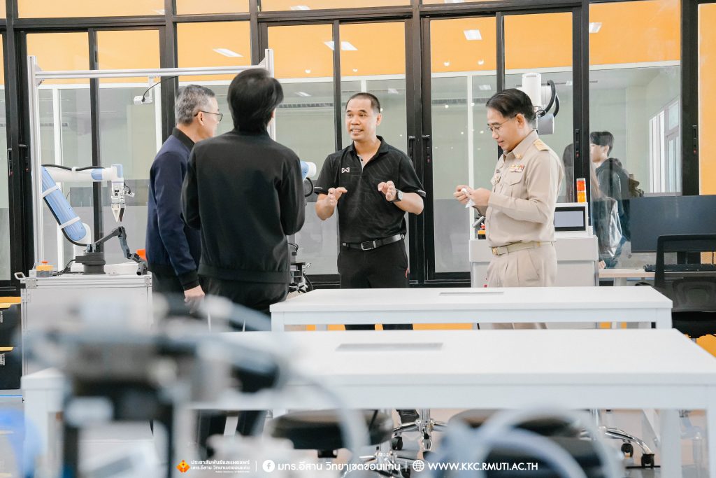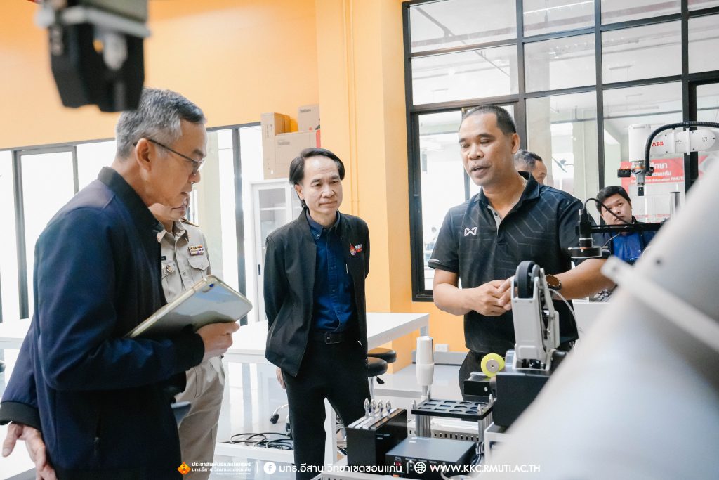 โอกาสนี้ รองอธิการบดีประจำวิทยาเขตขอนแก่น พร้อมคณะผู้บริหารทั้งสองหน่วยงานได้ให้เกียรติเยี่ยมชมศูนย์ยานยนต์ไฟฟ้า ด้านการจัดการเรียนการสอน กระบวนการแยกชิ้นส่วนเครื่องยนต์จนถึงการถอดประกอบเครื่องยนต์จนกระทั่งสามารถขับเคลื่อนได้ การเยี่ยมชมศูนย์ส่งเสริมอุตสาหกรรมสู่อนาคตด้วยระบบอัตโนมัติและหุ่นยนต์ โดยมี อาจารย์ ดร.ทศพล แจ้งน้อย รองคณบดีฝ่ายบริหาร คณะวิศวกรรมศาสตร์ บรรยายและนำเยี่ยมชมศูนย์พร้อมทั้งสาธิตการทำงานของหุ่นยนต์ที่สามารถใช้งานได้ง่ายไม่ซับซ้อน นำไปประยุกต์ใช้ในอุตสาหกรรม ส่งเสริมการดำเนินงานของผู้ประกอบการใช้ Cloud IoT เพื่อการพัฒนาและยกระดับอุตสาหกรรมระดับประเทศส่งเสริมการพัฒนาเศรษฐกิจในศตวรรษที่ 21 ต่อไป