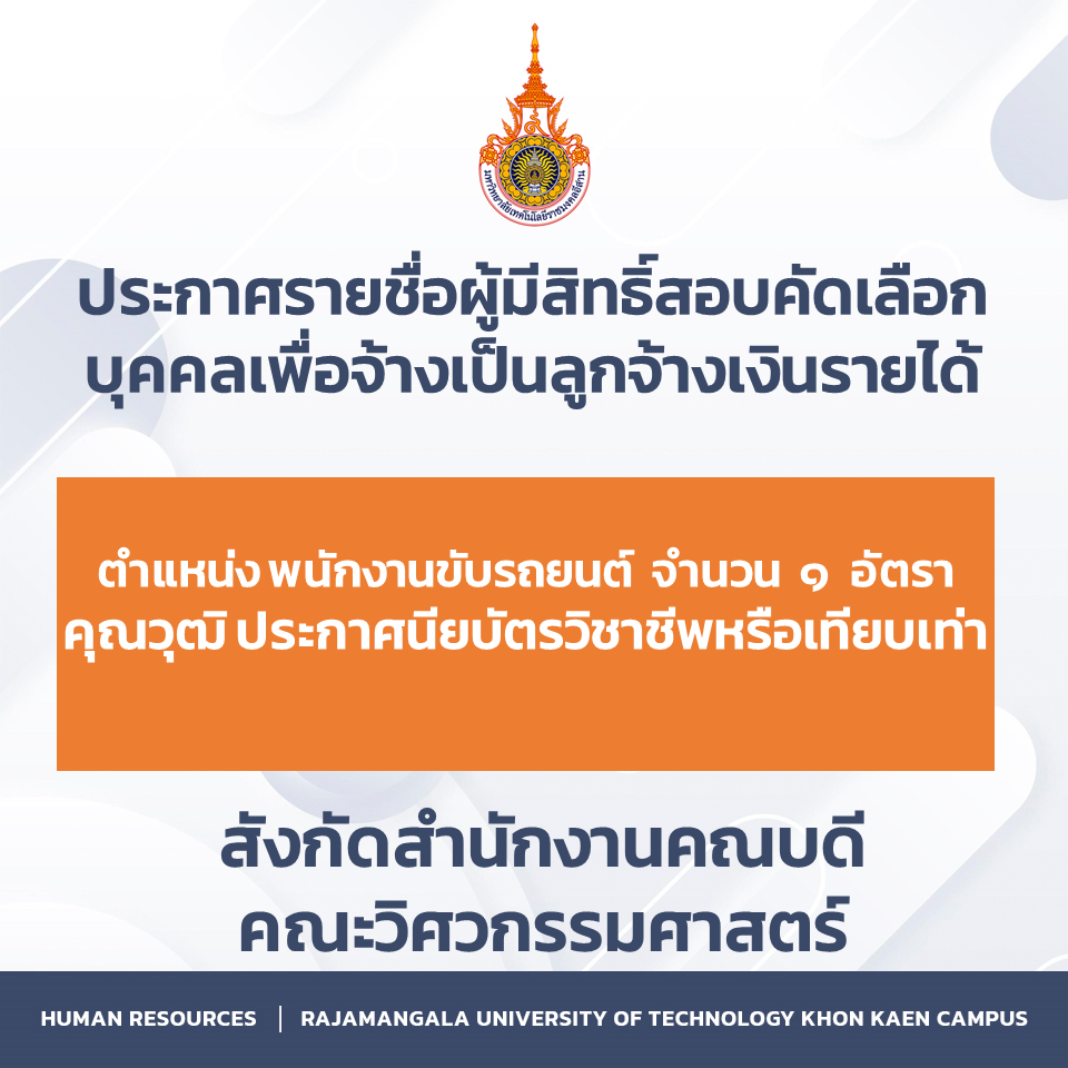 ประกาศรายชื่อผู้มีสิทธิ์สอบคัดเลือกบุคคลเพื่อจ้างเป็นลูกจ้างเงินรายได้ ตำแหน่ง พนักงานขับรถยนต์ จำนวน ๑ อัตรา คุณวุฒิ ประกาศนียบัตรวิชาชีพหรือเทียบเท่า สังกัดสำนักงานคณบดีคณะวิศวกรรมศาสตร์ มกราคม 23, 2026มกราคม 23, 2026ประชาสัมพันธ์ประชาสัมพันธ์, รับสมัครงาน ประกาศรายชื่อผู้มีสิทธิ์สอบคัดเลือกบุคคลเพื่อจ้างเป็นลูกจ้างเงินรายได้ตำแหน่ง พนักงานขับรถยนต์ จำนวน ๑ อัตราคุณวุฒิ ประกาศนียบัตรวิชาชีพหรือเทียบเท่าสังกัดสำนักงานคณบดีคณะวิศวกรรมศาสตร์ดาวน์โหลด Facebook iconFacebookTwitter iconTwitterLINE iconLine