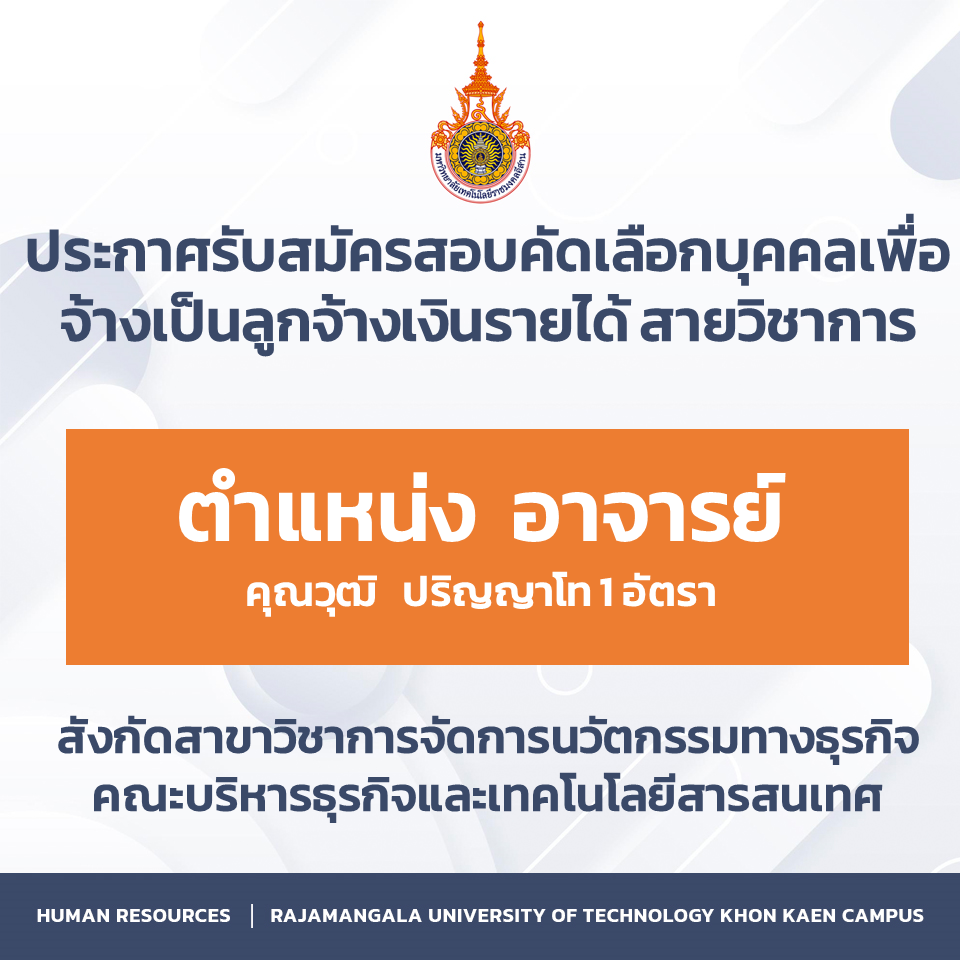 ประกาศรับสมัครสอบคัดเลือกบุคคลเพื่อจ้างเป็นลูกจ้างเงินรายได้ สายวิชาการ ตำแหน่ง อาจารย์ คุณวุฒิ ปริญญาโท สังกัดสาขาวิชาการจัดการนวัตกรรมทางธุรกิจ คณะบริหารธุรกิจและเทคโนโลยีสารสนเทศ กุมภาพันธ์ 2, 2026กุมภาพันธ์ 2, 2026ประชาสัมพันธ์ประชาสัมพันธ์, รับสมัครงาน ประกาศรับสมัครสอบคัดเลือกบุคคลเพื่อจ้างเป็นลูกจ้างเงินรายได้ สายวิชาการตำแหน่ง อาจารย์คุณวุฒิ ปริญญาโทสังกัดสาขาวิชาการจัดการนวัตกรรมทางธุรกิจคณะบริหารธุรกิจและเทคโนโลยีสารสนเทศดาวน์โหลด Facebook iconFacebookTwitter iconTwitterLINE iconLine