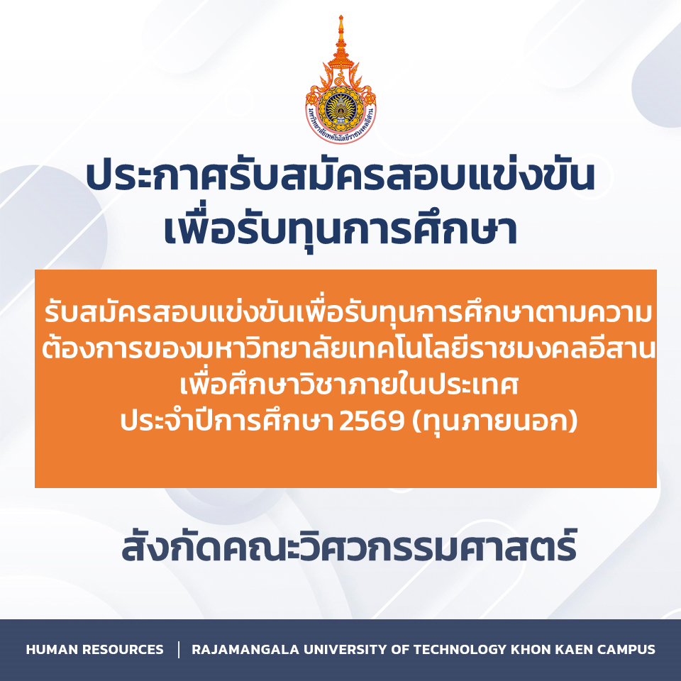รับสมัครสอบแข่งขันเพื่อรับทุนการศึกษาตามความต้องการของมหาวิทยาลัยเทคโนโลยีราชมงคลอีสาน เพื่อศึกษาวิชาภายในประเทศ ประจำปีการศึกษา 2569 (ทุนภายนอก) กุมภาพันธ์ 2, 2026กุมภาพันธ์ 2, 2026ประชาสัมพันธ์ประชาสัมพันธ์, รับสมัครงาน รับสมัครสอบแข่งขันเพื่อรับทุนการศึกษาตามความต้องการของมหาวิทยาลัยเทคโนโลยีราชมงคลอีสานเพื่อศึกษาวิชาภายในประเทศ ประจำปีการศึกษา 2569 (ทุนภายนอก)ดาวน์โหลด Facebook iconFacebookTwitter iconTwitterLINE iconLine