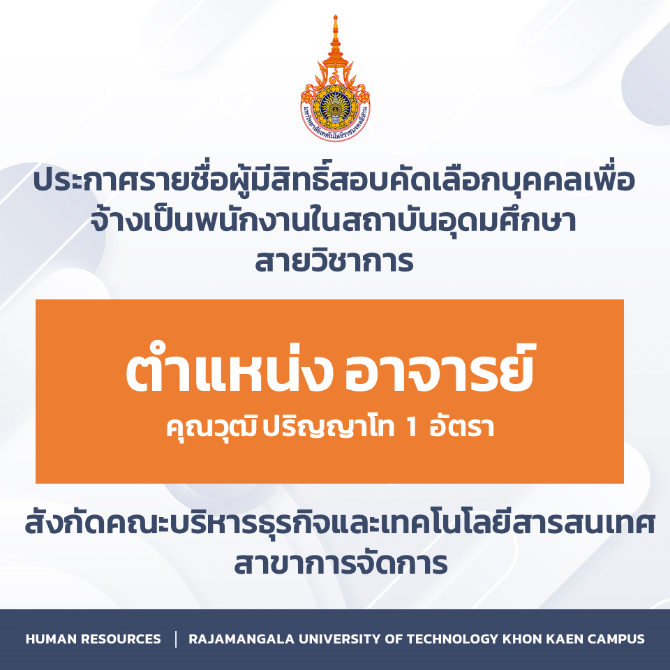ประกาศรายชื่อผู้มีสิทธิ์สอบคัดเลือกบุคคลเพื่อจ้างเป็นพนักงานในสถาบันอุดมศึกษา สายวิชาการ ตำแหน่ง อาจารย์ จำนวน ๑ อัตรา คุณวุฒิ ปริญญาโท สังกัดคณะบริหารธุรกิจและเทคโนโลยีสารสนเทศ สาขาการจัดการ กุมภาพันธ์ 14, 2026กุมภาพันธ์ 14, 2026ประชาสัมพันธ์ประชาสัมพันธ์, รับสมัครงาน ประกาศรายชื่อผู้มีสิทธิ์สอบคัดเลือกบุคคลเพื่อจ้างเป็นพนักงานในสถาบันอุดมศึกษา สายวิชาการตำแหน่ง อาจารย์จำนวน ๑ อัตราคุณวุฒิ ปริญญาโทสังกัดคณะบริหารธุรกิจและเทคโนโลยีสารสนเทศสาขาการจัดการดาวน์โหลด Facebook iconFacebookTwitter iconTwitterLINE iconLine