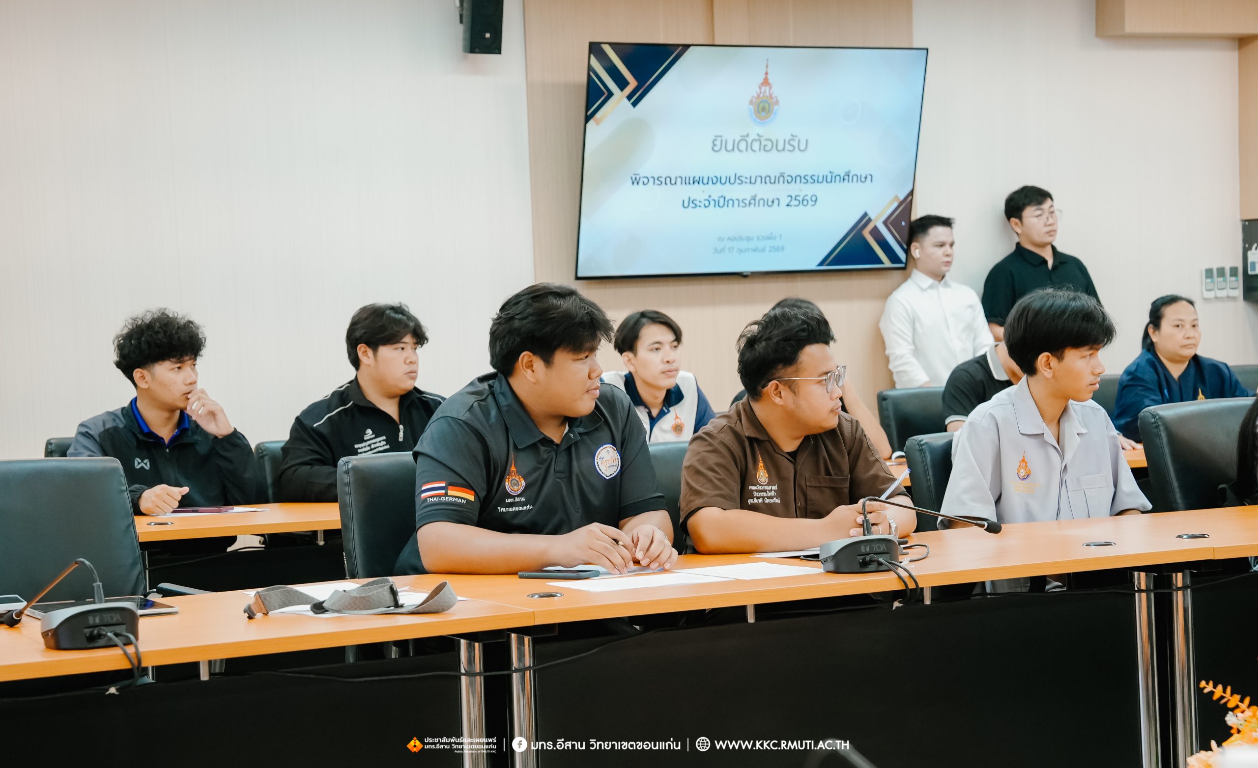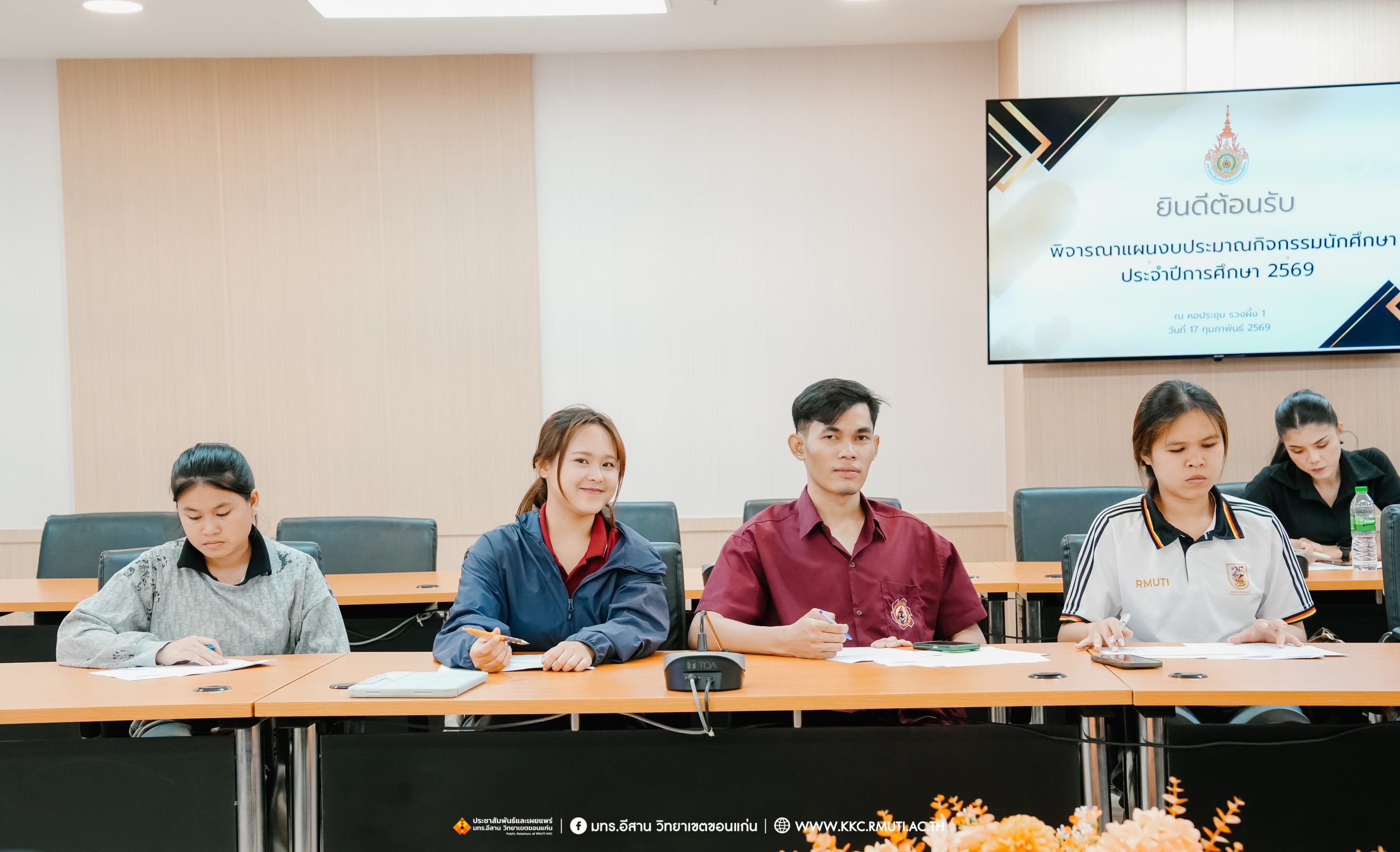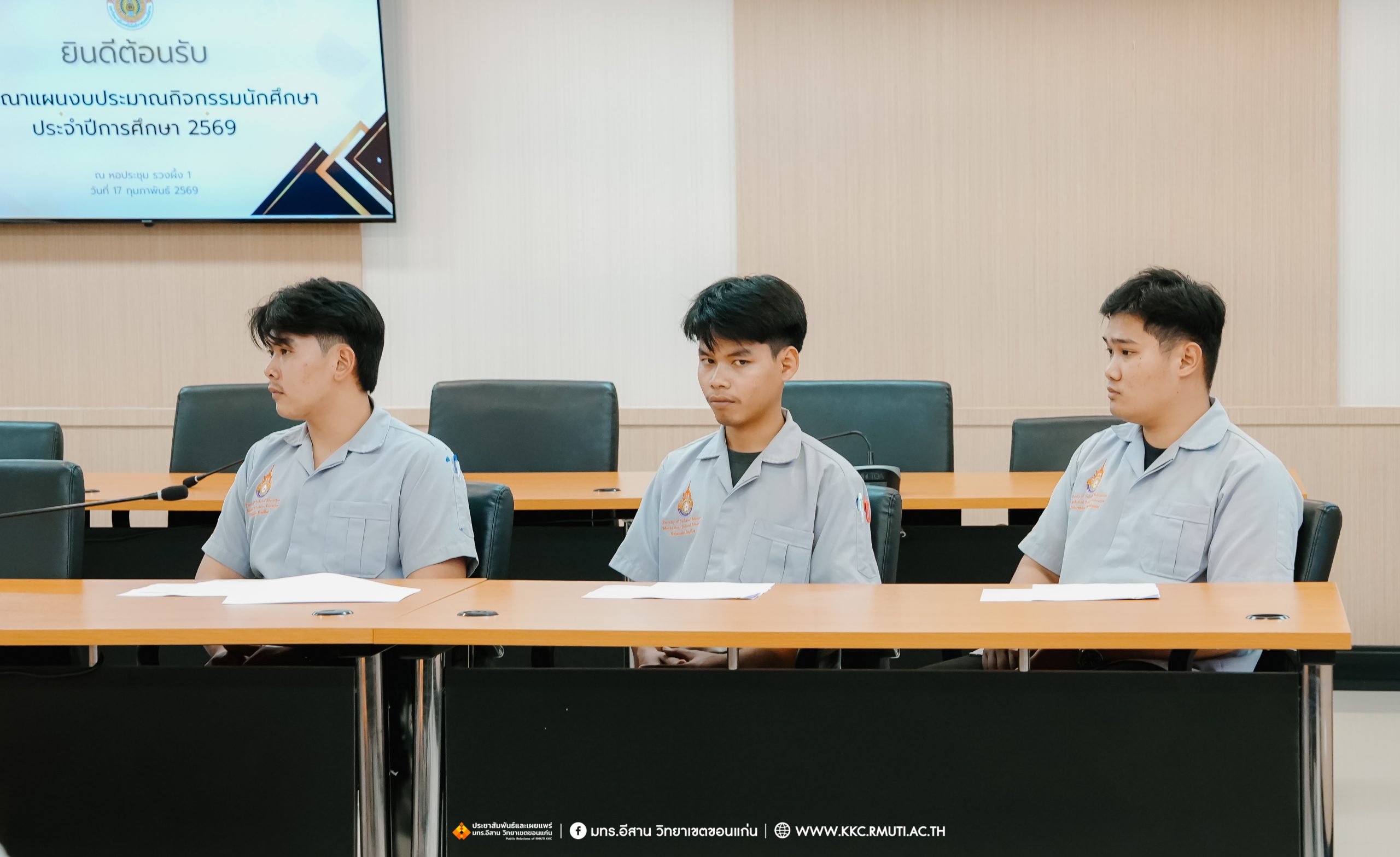 วันอังคารที่ 17 กุมภาพันธ์ พ.ศ. 2569 เวลา 16.00 น. รศ.ดร.โฆษิต ศรีภูธร อธิการบดี มหาวิทยาลัยเทคโนโลยีราชมงคลอีสาน มอบ ผศ.ประพันธ์ ยาวระ รองอธิการบดีประจำวิทยาเขตขอนแก่น ร่วมประชุมพบปะผู้นำนักศึกษา มทร.อีสาน วิทยาเขตขอนแก่น ประกอบด้วย องค์การนักศึกษา สภานักศึกษา สโมสรนักศึกษา คณะวิศวกรรมศาสตร์ คณะบริหารธุรกิจและเทคโนโลยีสารสนเทศ และคณะครุศาสตร์อุตสาหกรรม เพื่อรับทราบนโยบายและขั้นตอนการทำกิจกรรมต่าง ๆ ที่จะไม่ขัดต่อนโยบายของมหาวิทยาลัย โดยมี ผศ.ดร.อดิเรก จันตะคุณ รองคณบดีฝ่ายพัฒนานักศึกษา คณะวิศวกรรมศาสตร์ อาจารย์ฐิติพร จันทร์ดา รองคณบดีฝ่ายพัฒนานักศึกษา คณะครุศาสตร์อุตสาหกรรม น.ส.พิราวรรณ โสตรจ้ำ หัวหน้างานบริการการศึกษา คณะผู้บริหาร บุคลากรแผนกงานพัฒนานักศึกษาฯ เข้าร่วมประชุมและพบปะผู้นำนักศึกษา ณ ห้องประชุมรวงผึ้ง 1 อาคารเฉลิมพระเกียรติ 72 พรรษา มทร.อีสาน วิทยาเขตขอนแก่น