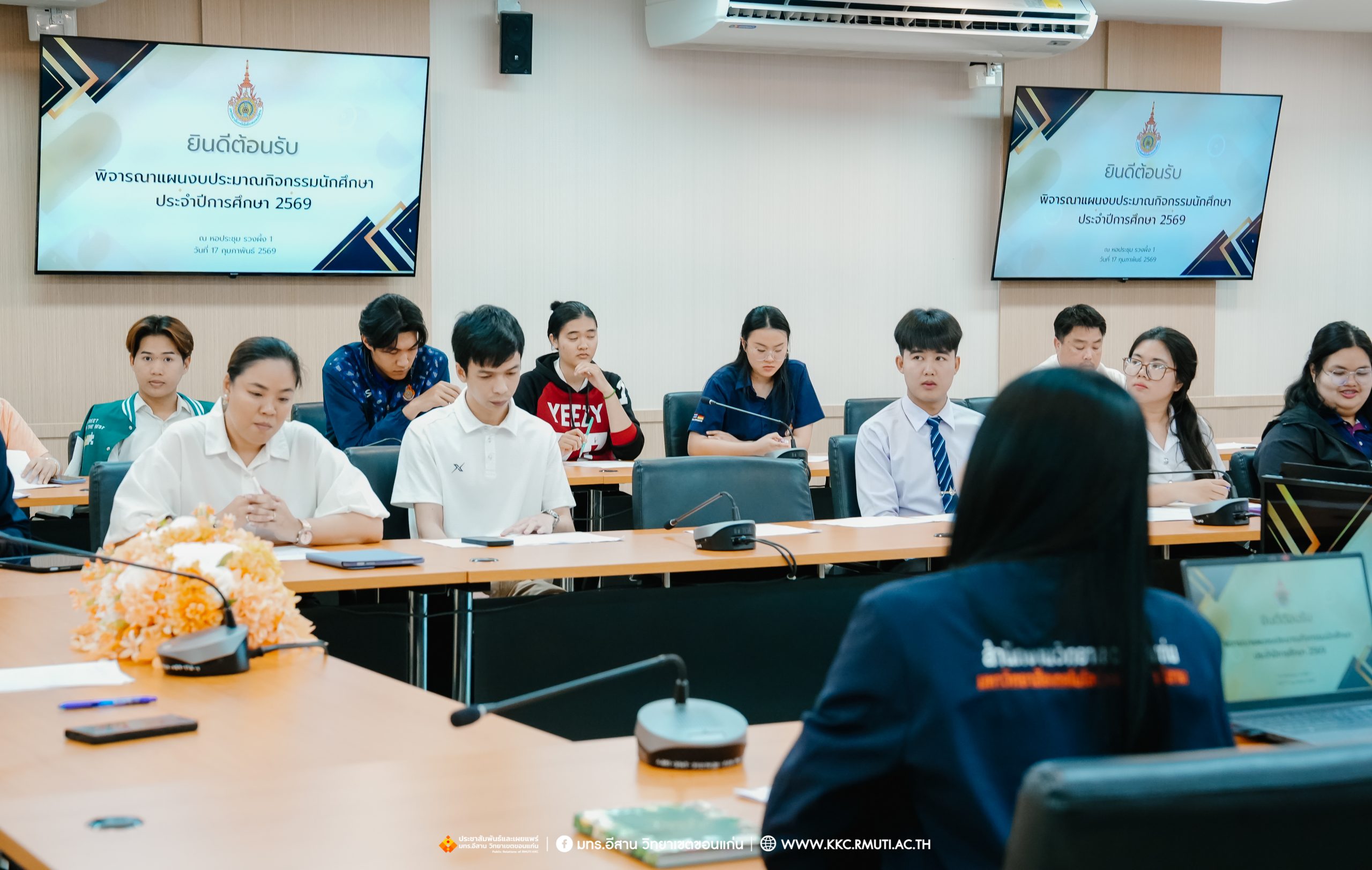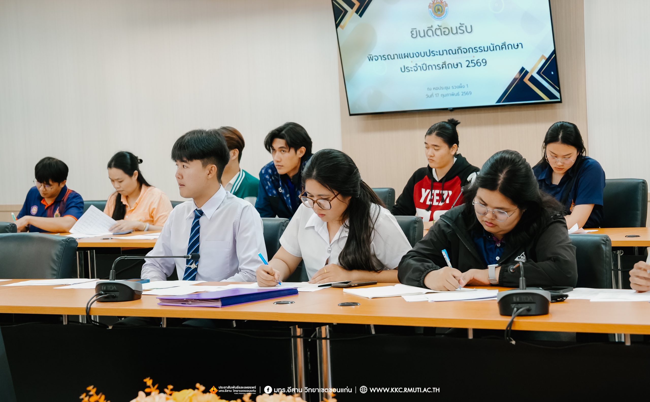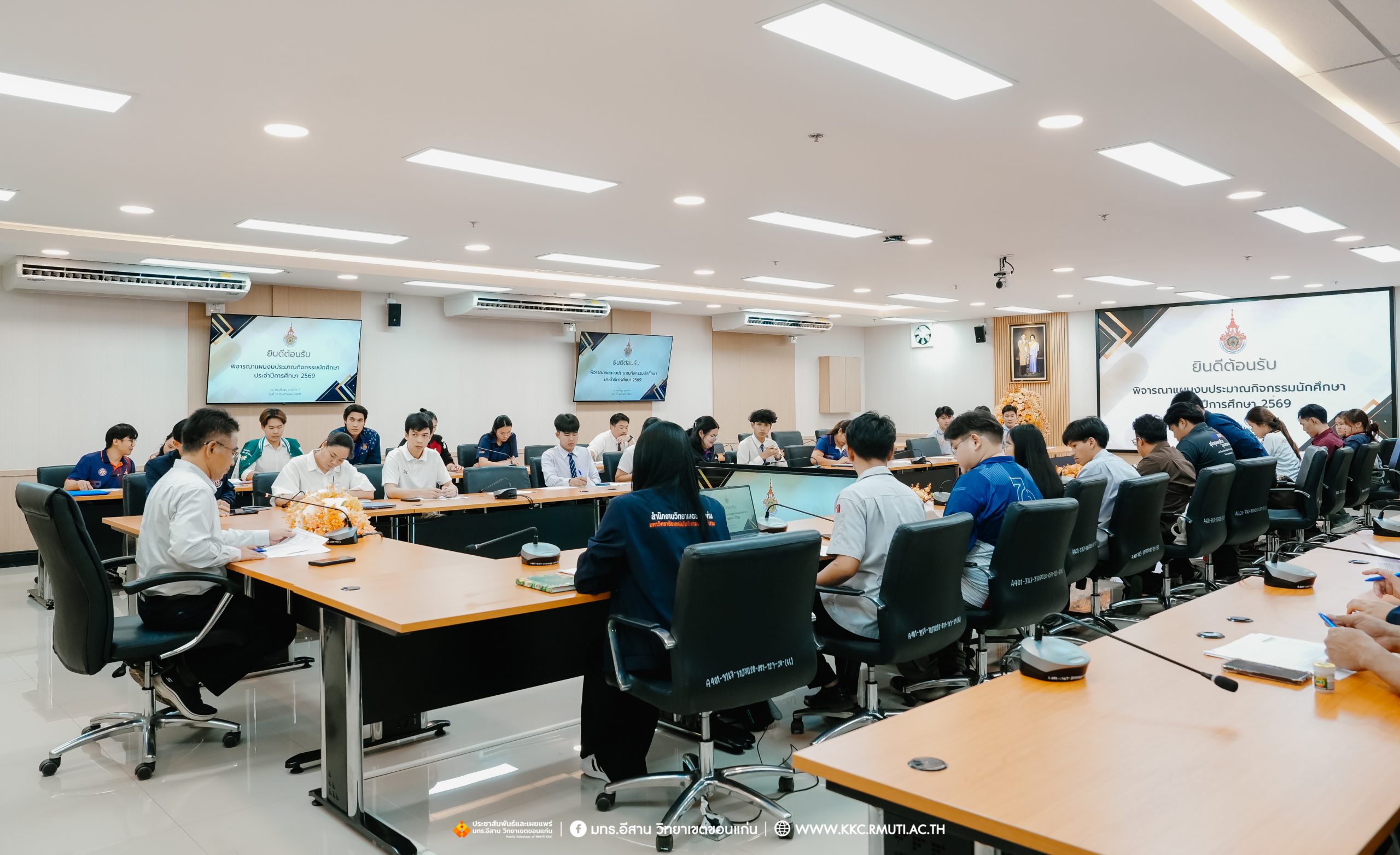 วันอังคารที่ 17 กุมภาพันธ์ พ.ศ. 2569 เวลา 16.00 น. รศ.ดร.โฆษิต ศรีภูธร อธิการบดี มหาวิทยาลัยเทคโนโลยีราชมงคลอีสาน มอบ ผศ.ประพันธ์ ยาวระ รองอธิการบดีประจำวิทยาเขตขอนแก่น ร่วมประชุมพบปะผู้นำนักศึกษา มทร.อีสาน วิทยาเขตขอนแก่น ประกอบด้วย องค์การนักศึกษา สภานักศึกษา สโมสรนักศึกษา คณะวิศวกรรมศาสตร์ คณะบริหารธุรกิจและเทคโนโลยีสารสนเทศ และคณะครุศาสตร์อุตสาหกรรม เพื่อรับทราบนโยบายและขั้นตอนการทำกิจกรรมต่าง ๆ ที่จะไม่ขัดต่อนโยบายของมหาวิทยาลัย โดยมี ผศ.ดร.อดิเรก จันตะคุณ รองคณบดีฝ่ายพัฒนานักศึกษา คณะวิศวกรรมศาสตร์ อาจารย์ฐิติพร จันทร์ดา รองคณบดีฝ่ายพัฒนานักศึกษา คณะครุศาสตร์อุตสาหกรรม น.ส.พิราวรรณ โสตรจ้ำ หัวหน้างานบริการการศึกษา คณะผู้บริหาร บุคลากรแผนกงานพัฒนานักศึกษาฯ เข้าร่วมประชุมและพบปะผู้นำนักศึกษา ณ ห้องประชุมรวงผึ้ง 1 อาคารเฉลิมพระเกียรติ 72 พรรษา มทร.อีสาน วิทยาเขตขอนแก่น