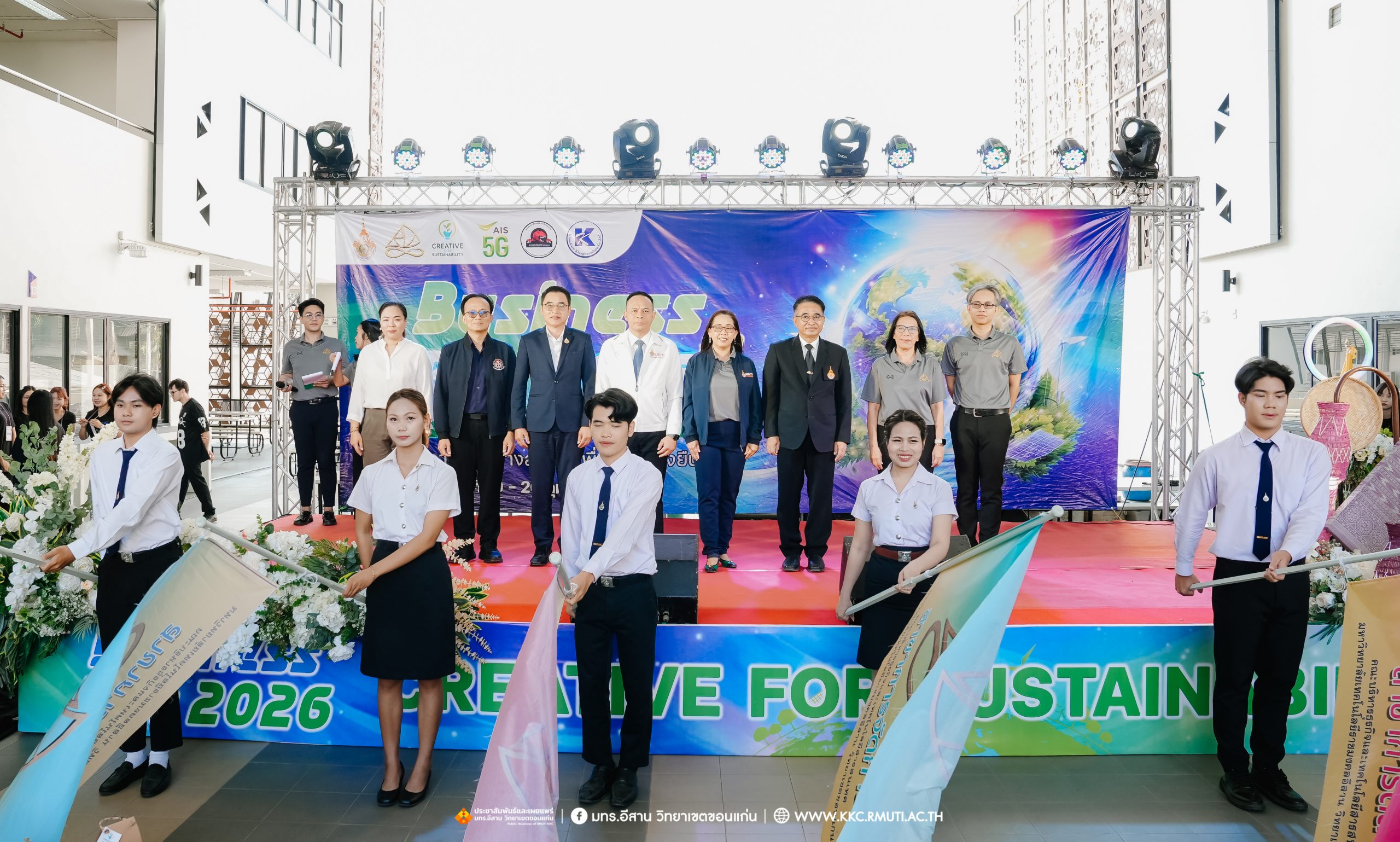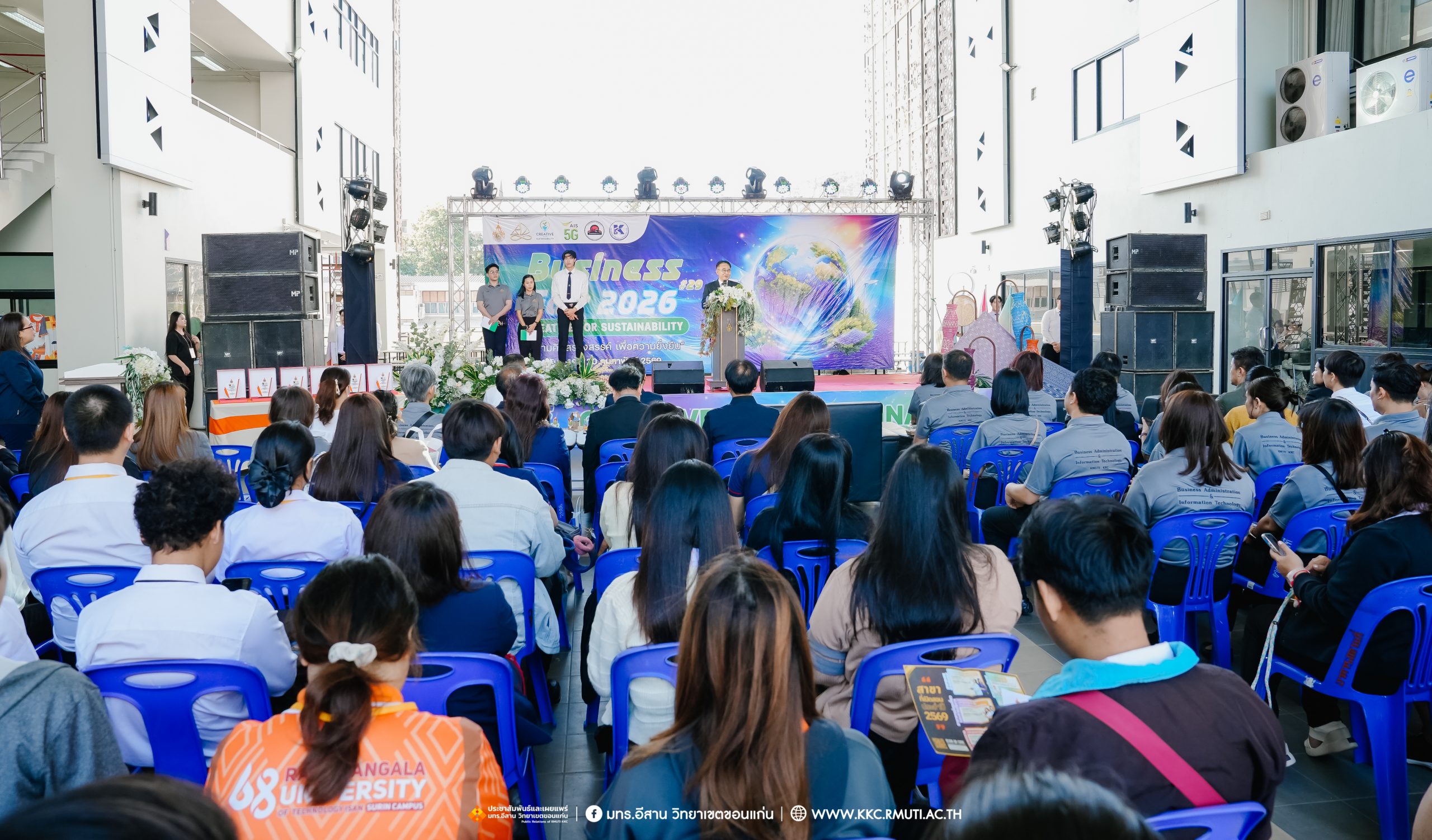วันพฤหัสบดีที่ 19 กุมภาพันธ์ 2569 รศ.ดร.โฆษิต ศรีภูธร อธิการบดีมหาวิทยาลัยเทคโนโลยีราชมงคลอีสาน มอบ ผศ.ประพันธ์ ยาวระ รองอธิการบดีประจำวิทยาเขตขอนแก่น เป็นประธานกล่าวเปิดโครงการแข่งขันทักษะทางวิชาการและเสริมสร้างการเป็นผู้ประกอบการ (Business Fair) ประจำปี 2569 ภายใต้แนวคิด “Creative for Sustainability” ความคิดสร้างสรรค์ เพื่อความยั่งยืน โดยมี อาจารย์ ดร.อารีรัตน์ เชื้อบุญเกิด โนท คณบดีคณะบริหารธุรกิจและเทคโนโลยีสารสนเทศ กล่าวรายงานวัตถุประสงค์การจัดโครงการ ได้รับเกียรติจาก ผศ.ดร.นทยา กมพลานนท์ ผู้ช่วยอธิการบดี ผศ.ดร.วิรัช ชินพลอย คณบดีคณะครุศาสตร์อุตสาหกรรม ผศ.ดร.ศุภฤกษ์ ชามงคลประดิษฐ์ คณบดีคณะวิศวกรรมศาสตร์ คณะผู้บริหาร มทร.อีสาน วิทยาเขตขอนแก่น พร้อมด้วยคณาจารย์เครือข่ายสถาบันการศึกษาในพื้นที่จังหวัดขอนแก่นและจังหวัดใกล้เคียง ให้เกียรติเข้าร่วมพิธีเปิดด้วยความประทับใจ ณ ลานชั้น 1 อาคารเฉลิมพระเกียรติ 72 พรรษา (อาคาร 19 )