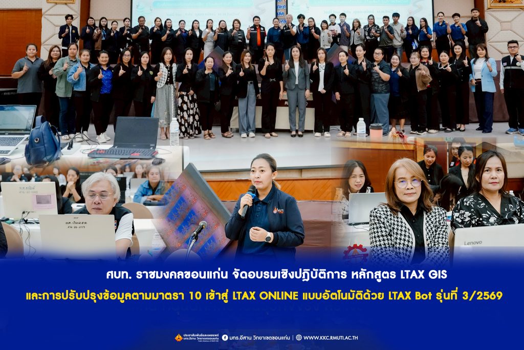 วันเสาร์ที่ 21 กุมภาพันธ์ 2569 เวลา 9.00 น. มหาวิทยาลัยเทคโนโลยีราชมงคลอีสาน วิทยาเขตขอนแก่น โดย ผศ.ประพันธ์ยาวระ รองอธิการบดีประจำวิทยาเขตขอนแก่น มอบ นางสาวคนึงนิจ กลิ่นขจร ผู้อำนวยการสำนักงานวิทยาเขตขอนแก่น ให้เกียรติกล่าวต้อนรับและเปิดโครงการอบรมเชิงปฏิบัติการหลักสูตร “การปรับข้อมูลแผนที่ภาษีและทะเบียนทรัพย์สิน จากข้อมูลมาตรา 10 กรมที่ดิน, การค้นหาแปลงที่ดิน (นส 3 ก.) จัดทำ ผท.7 อัตโนมัติ ด้วยโปรแกรม LTAX GIS การนำเข้าฐานข้อมูลพร้อมรูปภาพ จาก LTAX 3000 และ TaxGo เข้าสู่ระบบ LTAX ONLINE และเชื่อมเข้า New e-LASS แบบอัตโนมัติด้วยโปรแกรมหุ่นยนต์อัจฉริยะ (LTaxBot ) การจัดทำฐานภาษีออกสำรวจข้อมูลที่ดินและสิ่งปลูกสร้าง และป้ายเพื่อเพิ่มประสิทธิภาพในการจัดเก็บรายได้ภาษีที่ดินและสิ่งปลูกสร้าง ภาษีป้าย พร้อมแนวทางการรับตรวจจากหน่วยงานตรวจสอบภาครัฐ โดยมี นางสาวลีนมน แสนทวีสุข หัวหน้าศูนย์วิจัย บริการวิชาการและทดสอบเป็นผู้กล่าวรายงาน ณ ห้องประชุมแคแสด อาคารวิทยบริการ มทร.อีสาน วิทยาเขตขอนแก่นโครงการอบรมฯ ดำเนินการระหว่างวันที่ 20 – 22 กุมภาพันธ์ 2569 โดยมี อาจารย์วีระพงษ์ จำนงค์พันธ์ พร้อมคณะ เป็นวิทยากรในการอบรม ทั้งภาคบรรยายและนำปฏิบัติ เรื่อง แนวทางการจัดทำแผนที่ภาษีและทะเบียนทรัพย์สินขององค์กรปกครองส่วนท้องถิ่น เทคนิคการสำรวจภาคสนาม เพื่อรองรับการจัดเก็บภาษีที่ดินและสิ่งปลูกสร้างให้ง่ายและใช้งานได้จริง การจัดทำแบบพิมพ์แผนที่และเอกสารที่ใช้ในการออกสำรวจ การใช้โปรแกรมช่วยสำรวจภาคสนามในโทรศัพท์หรือแท็บเล็ต การนำเข้าแผนที่โรงเรือนและป้ายการปรับปรุงข้อมูลแปลงที่ดิน การบันทึกและปรับปรุงข้อมูลจากข้อมูลสำรวจภาคสนาม เข้าโปรแกรม LTax 3000 การใช้โปรแกรม LTax 3000 ร่วมกับ LTax Pro ในการนำเข้าปรับปรุงราคาประเมินที่ดินที่ได้จากกรมธนารักษ์แบบอัตโนมัติ การฝึกปฏิบัติ การค้นหาตำแหน่งแปลงที่ดินโฉนด นส.3 ก. สปก. และที่ไม่มีเอกสารสิทธิ์ โครงการฯ ได้รับความสนใจจากหน่วยงานเครือข่ายองค์กรปกครองส่วนท้องถิ่นเข้าร่วมอบรม จำนวน 55 คน จาก 27 หน่วยงาน ทั้งนี้ มทร.อีสาน วิทยาเขตขอนแก่น พร้อมสนับสนุนงานบริการวิชาการในด้านการอบรม เพื่อสร้างองค์ความรู้ให้กับหน่วยงานต่าง ๆ เพื่อนำไปใช้ในการพัฒนาประเทศต่อไป