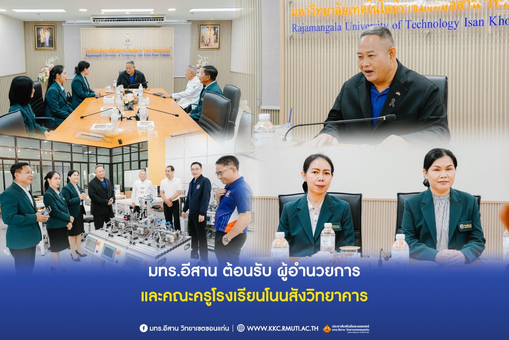 วันอังคารที่ 24 กุมภาพันธ์ พ.ศ. 2569 รศ.ดร.โฆษิต ศรีภูธร อธิการบดี มหาวิทยาลัยเทคโนโลยีราชมงคลอีสาน พร้อมด้วย ผศ.ประพันธ์ ยาวระ รองอธิการบดีประจำวิทยาเขตขอนแก่น อาจารย์บุญกิจ อุ่นพิกุล ผู้ช่วยอธิการบดี ผศ.ดร.วิรัช ชินพลอย คณบดีคณะครุศาสตร์อุตสาหกรรม ผศ.ดร.ศุภฤกษ์ ชามงคลประดิษฐ์ คณบดีคณะวิศวกรรมศาสตร์ ผศ.ฐนดม ราศีรัตนะ รองคณบดีฝ่ายวิชาการและวิจัย คณะบริหารธุรกิจและเทคโนโลยีสารสนเทศ นางสาวคนึงนิจ กลิ่นขจร ผู้อำนวยการสำนักงานวิทยาเขตขอนแก่น ให้การต้อนรับนางลักขณา สาระกิจจานนท์ ผู้อำนวยการโรงเรียนโนนสังวิทยาคาร พร้อมด้วยคณะผู้บริหาร คณะครู และอาจารย์ถวิล ศรีภูธร ประธานชมรมโนนสัง ในการเดินทางเยือน มทร.อีสาน วิทยาเขตขอนแก่น เพื่อร่วมประชุมกรอบและแนวทางความร่วมมือทางวิชาการ ระหว่าง มหาวิทยาลัยและโรงเรียน เพื่อเปิดโอกาสให้เด็กนักเรียนได้มีโอกาสศึกษาต่อสายวิชาชีพและหลักสูตรคณะวิศวกรรมศาสตร์ โดยมีการเปิดวิดิทัศน์แนะนำมหาวิทยาลัยเทคโนโลยีราชมงคลอีสาน ที่ดำเนินงานตามพันธกิจ และขับเคลื่อนตามยุทธศาสตร์ชาติ การยกระดับ Acting aging และยังร่วมพูดคุยแนวทางการเปิดห้องเรียนร่วมกัน การให้ทุนการศึกษาแก่นักเรียน นักศึกษา การสร้างภาพลักษณ์ แนวทางการเรียน แนวทางการประกอบอาชีพในฝัน ผู้อำนวยการโรงเรียนโนนสังวิทยาคาร ได้กล่าวถึงแผนการเปิดห้องเรียนพิเศษสายช่างและวิศวกร คณบดีคณะวิศวกรรมศาสตร์ คณบดีคณะครุศาสตร์อุตสาหกรรม และรองคณบดีคณะบริหารธุรกิจและเทคโนโลยีสารสนเทศ ได้นำเสนอพร้อมแนะนำคณะและสาขาวิชาสังกัดที่รับผิดชอบ รองอธิการบดีประจำวิทยาเขตขอนแก่น กล่าวเชิญชวนให้โรงเรียนนำนักเรียนเข้าร่วมกิจกรรม OPEN HOUSE อธิการบดี มทร.อีสาน ได้นำเสนอหลักสูตรด้าน wellness และ herb ของวิทยาเขตสกลนคร ที่กำลังได้รับความนิยมและตอบโจทย์สังคมผู้สูงวัยในอนาคต