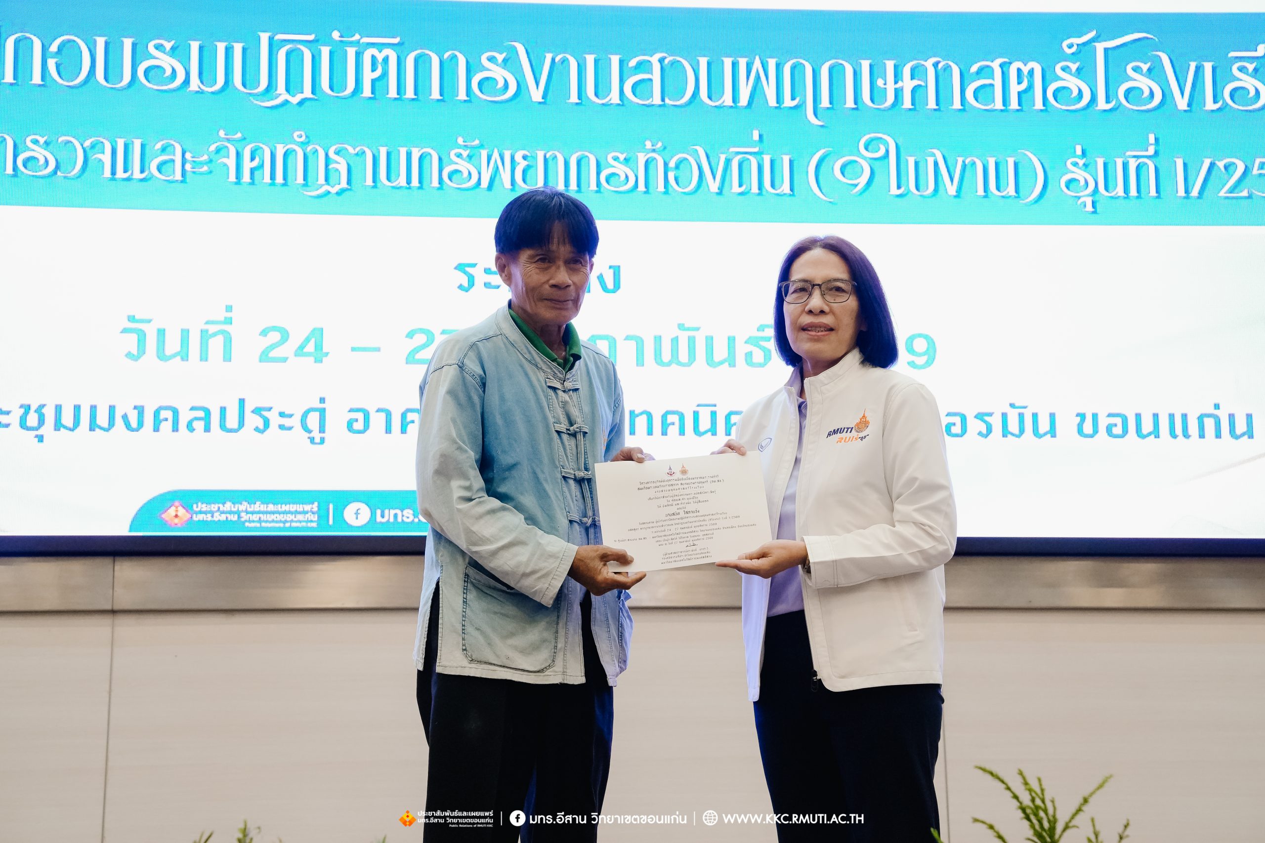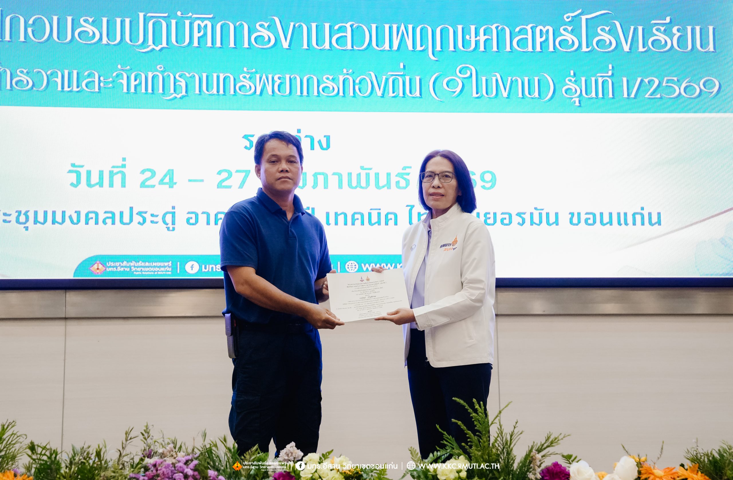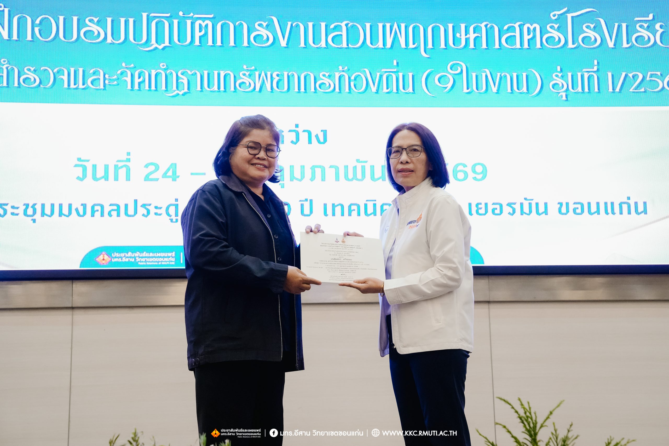 ศูนย์ประสานงาน อพ.สธ.มทร.อีสาน วิทยาเขตขอนแก่น มอบเกียรติบัตรผู้เข้าอบรมงานสวนพฤกษศาสตร์โรงเรียน รุ่นที่ 1/69