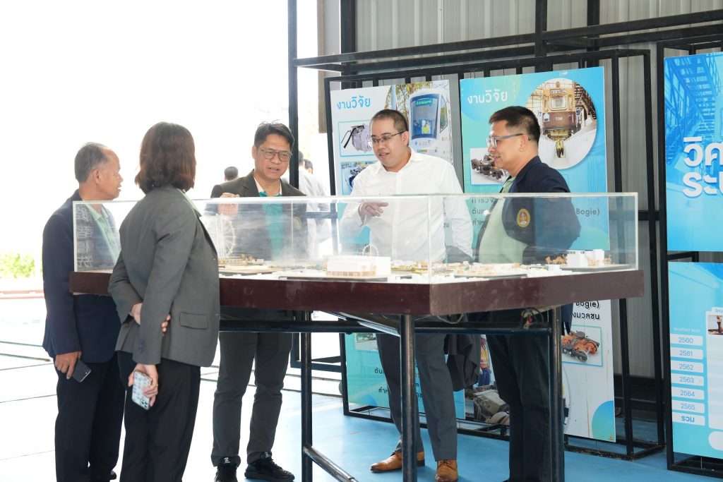 โดยในเวลา 11.00 น. สภาคณาจารย์และข้าราชการ มทร.อีสาน ได้นำเยี่ยมชมผลงานวิจัยและสิ่งประดิษฐ์ด้าน EV อาทิเช่น รถแท็กซี่ลอนดอน EV รถบัส EV เครื่องบิน ผลงานวิจัยและนวัตกรรมด้านระบบราง Tram รุ่น Hiroden-907 ที่ได้รับมอบจากเทศบาลนครฮิโรชิมา ประเทศญี่ปุ่น รางตัวอย่างเพื่อใช้ทดสอบการวิ่งและการใช้งานขบวนรถรางไฟฟ้าต้นแบบ โดยมี ผศ.ดร.ไพรวัลย์ เกิดตรวจ เป็นผู้บรรยาย ณ อาคารปฏิบัติการซ่อมบำรุงรถไฟ DEPOT โรงจอดและซ่อมบำรุงรถ Tram และ LRT คณะวิศวกรรมศาสตร์ พร้อมถ่ายภาพร่วมกันเป็นที่ระลึก มทร.อีสาน สถาบันการศึกษาชั้นนำ มีความพร้อมด้านการเรียนการสอนหลักสูตรที่ทันสมัยและงานวิจัยที่ทรงคุณค่า พร้อมแลกเปลี่ยนความรู้ แนวคิด และประสบการณ์ในการทำงาน เพื่อนำมาประยุกต์ใช้ในการพัฒนาและปรับปรุงการดำเนินงาน ตลอดจนเป็นการสร้างเครือข่ายความร่วมมือทางวิชาการระหว่างสถาบันอุดมศึกษาให้มีความเข้มแข็งและยั่งยืนต่อไป